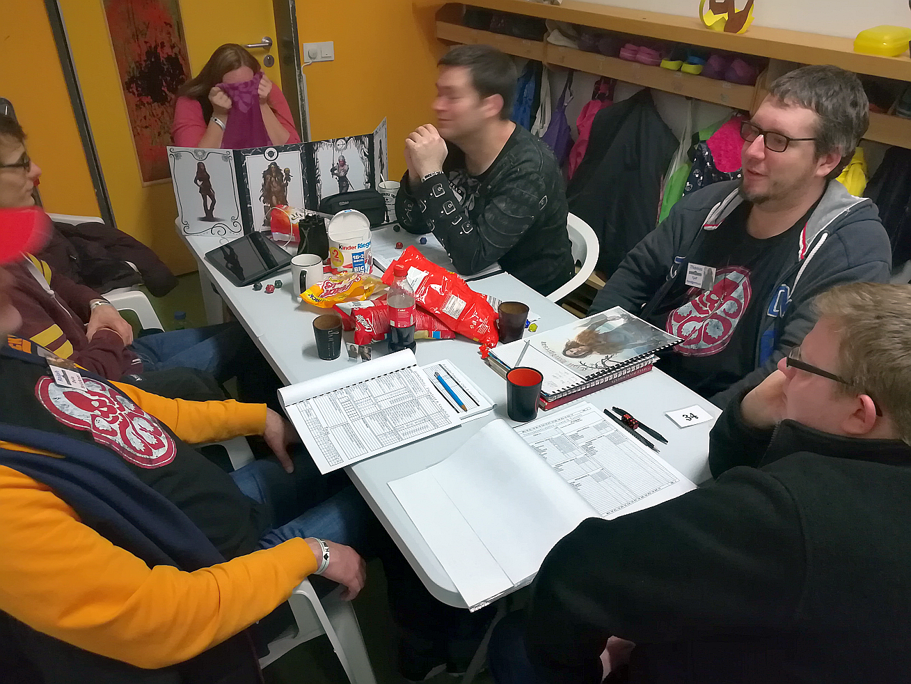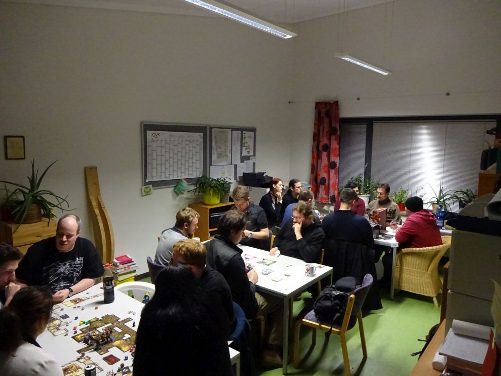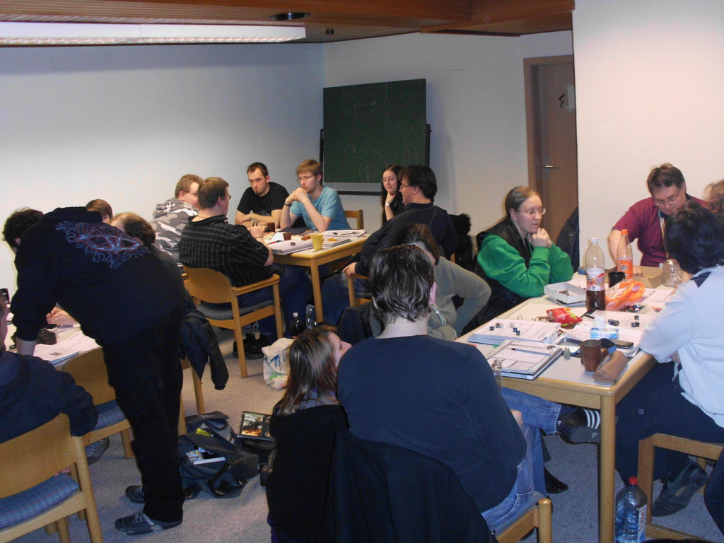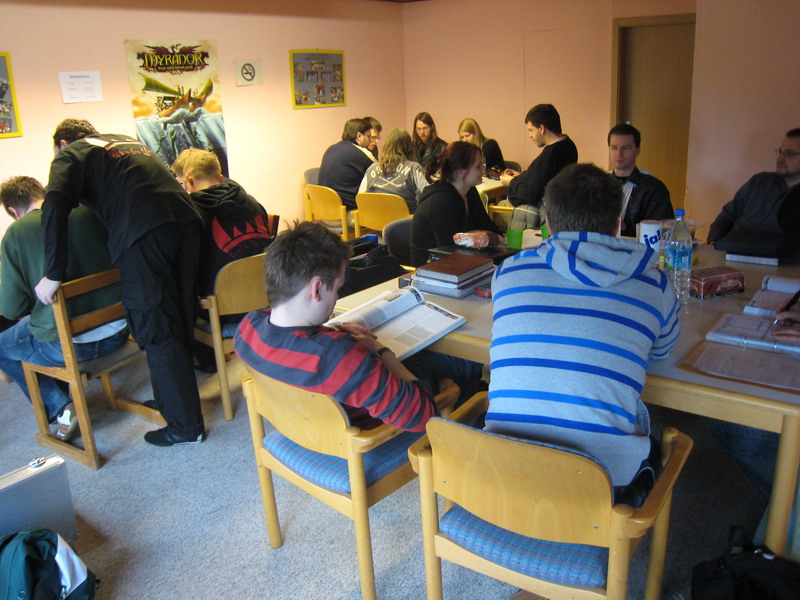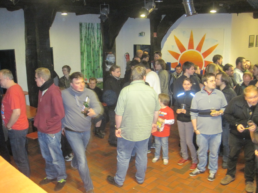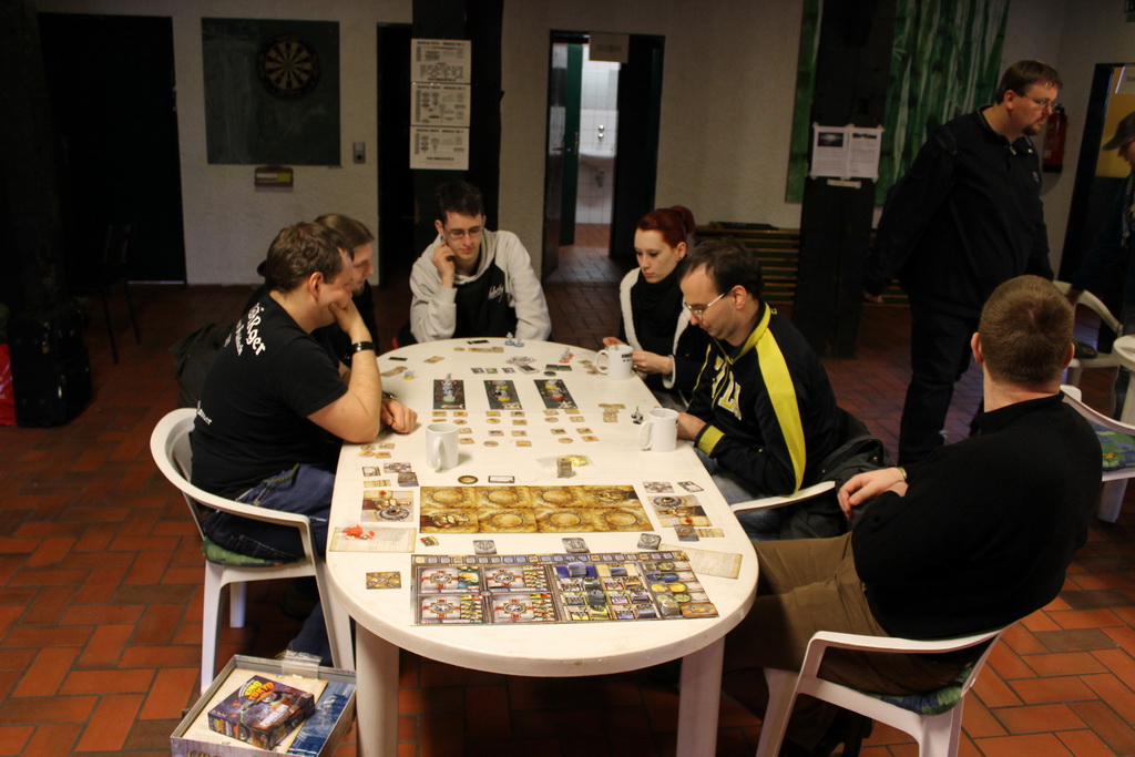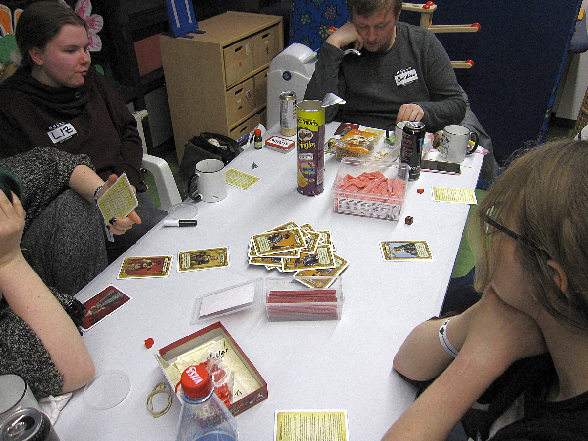 NT24: Bei frischem, wenn doch trockenem Wetter, öffneten sich die Pforten gegen 17:30 Uhr und der Run auf die Tassen im JD Style konnte beginnen. Mit Flatrate und Proviant gewappnet ging es auch schon an die Spieltische. Wer hingegen etwas Kultur genießen wollte, war in der Lesung mit Bernhard Hennen genau richtig. Als der Chilimeister zum Mitternachtsimbiss rief und auch der letzte eine Spielrunde oder bereits einen Platz im Schlafraum der neuen Kita gefunden hatte, ging der Freitag mit einem neuen Besucherrekord von 212 Gästen zu Ende. Am Samstag sollte es spannend werden, ob der Wegfall des Obergeschosses im Jugendhaus auf die Tischreserven auswirken sollte, doch dem war nicht so. Auch einem erneuten Wurststau konnte entgegengewirkt werden, trotz dessen es zu kurzen Wartezeiten beim Grillmeister kam. Mit der Wunschlesung von Bernhard Hennen und Tom Daut wurde auch der Samstag Nachmittag literarisch aufgewertet. Bei der Tombola am Abend konnte man gleich zu Beginn, oder doch am Ende, den verwirrten Gästen eine Besucherzahl von 310 präsentieren. Am Sonntag sollte, ausser beim Grillmeister nichts mehr anbrennen. Die Besucher die es bis dahin geschafft hatten gegen die Müdigkeit anzukämpfen nutzten nochmal ihre Flatrate und spielten bis zur letzten Minute. Mit 321 Gästen, ging die an der Besucherzahl gemessene zweit stärkste Märzveranstaltung zu Ende.