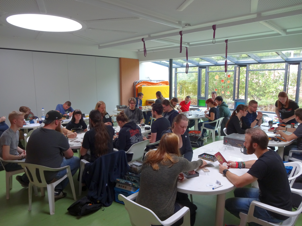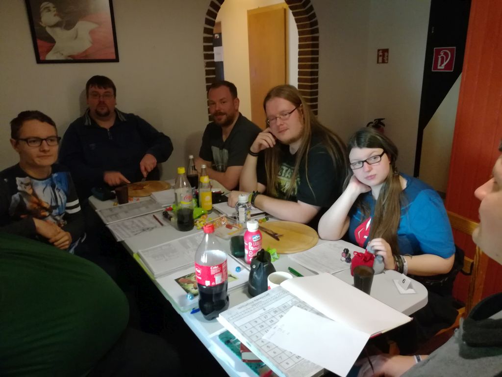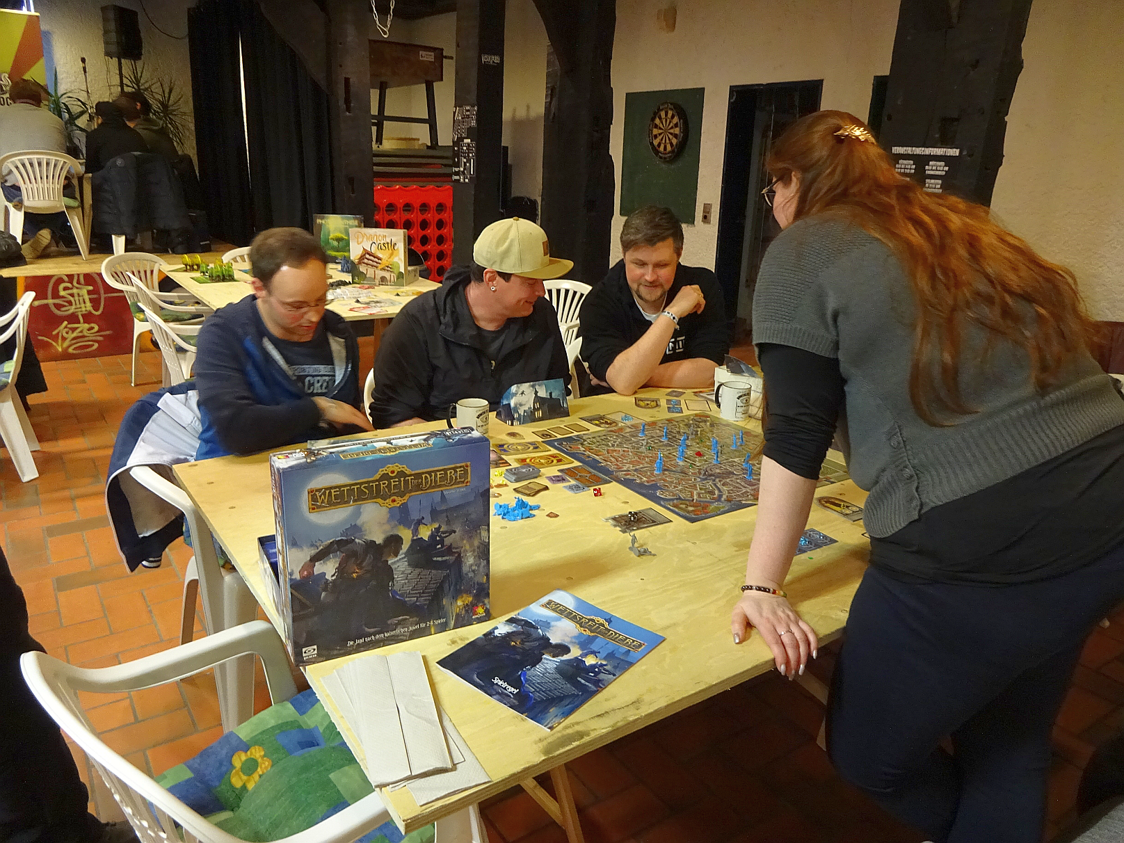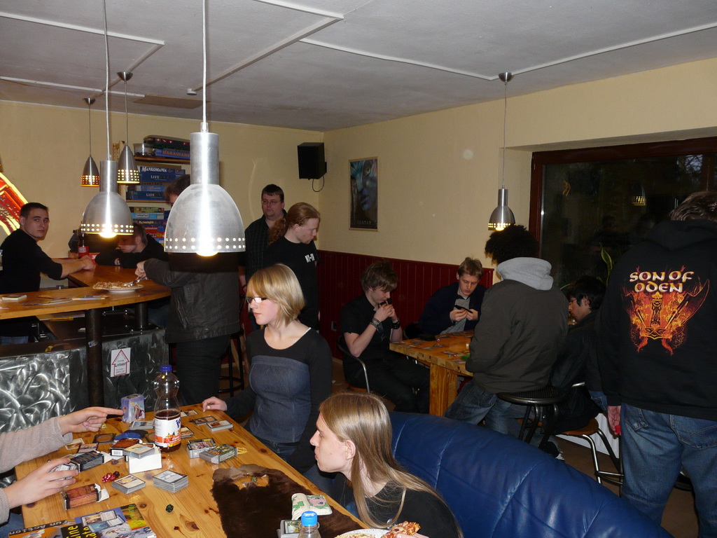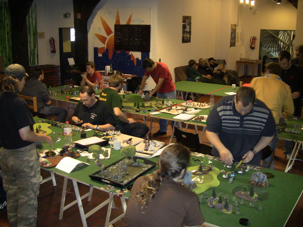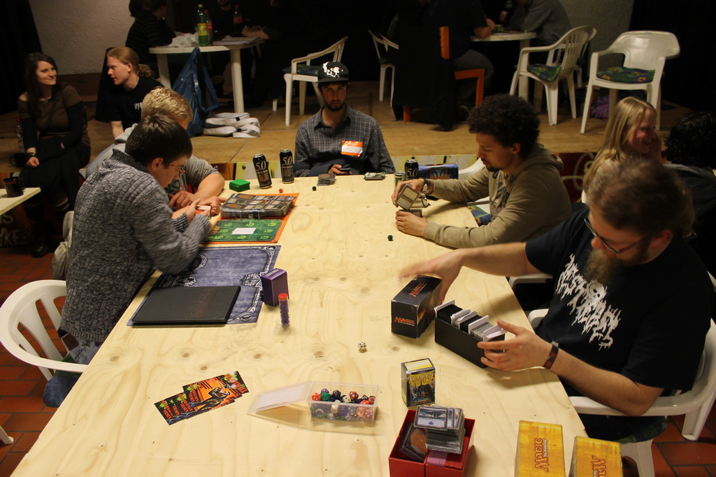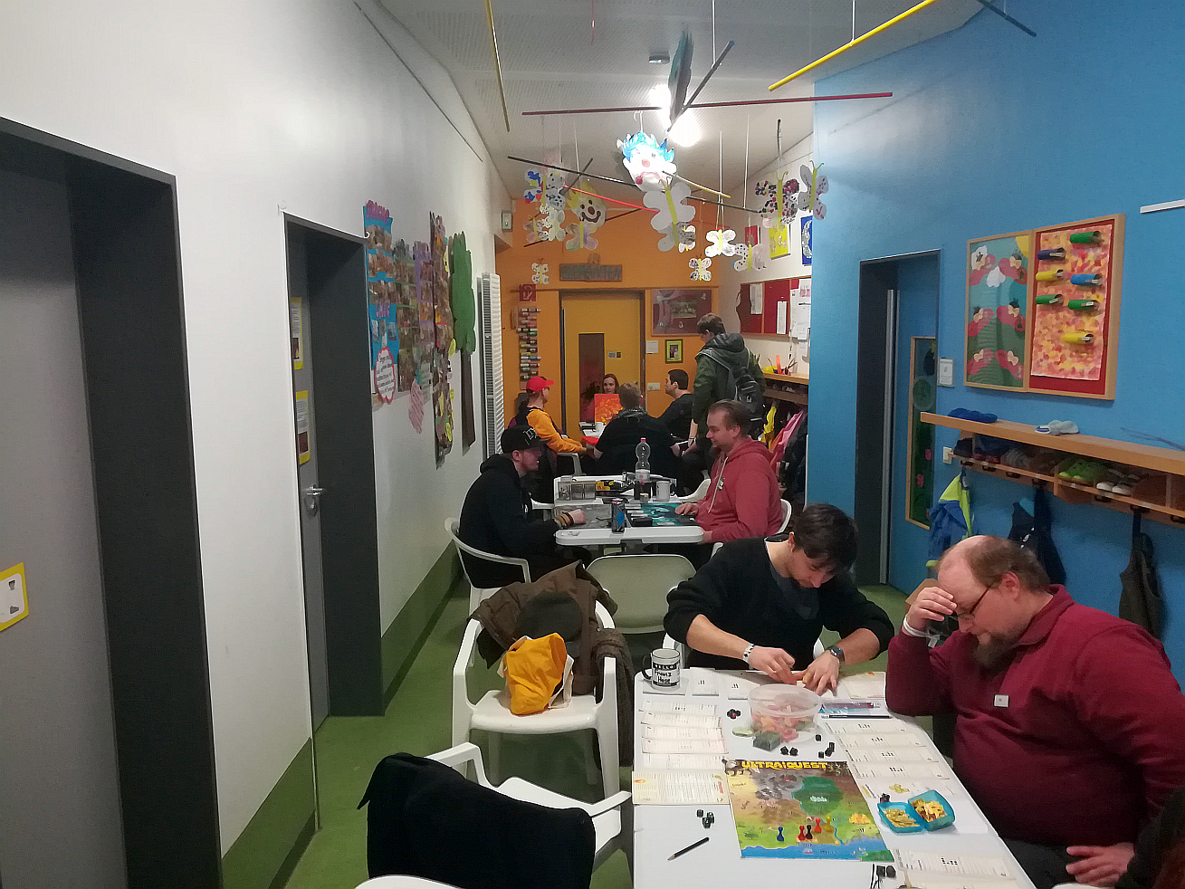 NT24: Bei frischem, wenn doch trockenem Wetter, öffneten sich die Pforten gegen 17:30 Uhr und der Run auf die Tassen im JD Style konnte beginnen. Mit Flatrate und Proviant gewappnet ging es auch schon an die Spieltische. Wer hingegen etwas Kultur genießen wollte, war in der Lesung mit Bernhard Hennen genau richtig. Als der Chilimeister zum Mitternachtsimbiss rief und auch der letzte eine Spielrunde oder bereits einen Platz im Schlafraum der neuen Kita gefunden hatte, ging der Freitag mit einem neuen Besucherrekord von 212 Gästen zu Ende. Am Samstag sollte es spannend werden, ob der Wegfall des Obergeschosses im Jugendhaus auf die Tischreserven auswirken sollte, doch dem war nicht so. Auch einem erneuten Wurststau konnte entgegengewirkt werden, trotz dessen es zu kurzen Wartezeiten beim Grillmeister kam. Mit der Wunschlesung von Bernhard Hennen und Tom Daut wurde auch der Samstag Nachmittag literarisch aufgewertet. Bei der Tombola am Abend konnte man gleich zu Beginn, oder doch am Ende, den verwirrten Gästen eine Besucherzahl von 310 präsentieren. Am Sonntag sollte, ausser beim Grillmeister nichts mehr anbrennen. Die Besucher die es bis dahin geschafft hatten gegen die Müdigkeit anzukämpfen nutzten nochmal ihre Flatrate und spielten bis zur letzten Minute. Mit 321 Gästen, ging die an der Besucherzahl gemessene zweit stärkste Märzveranstaltung zu Ende.