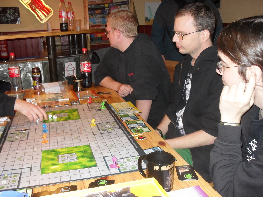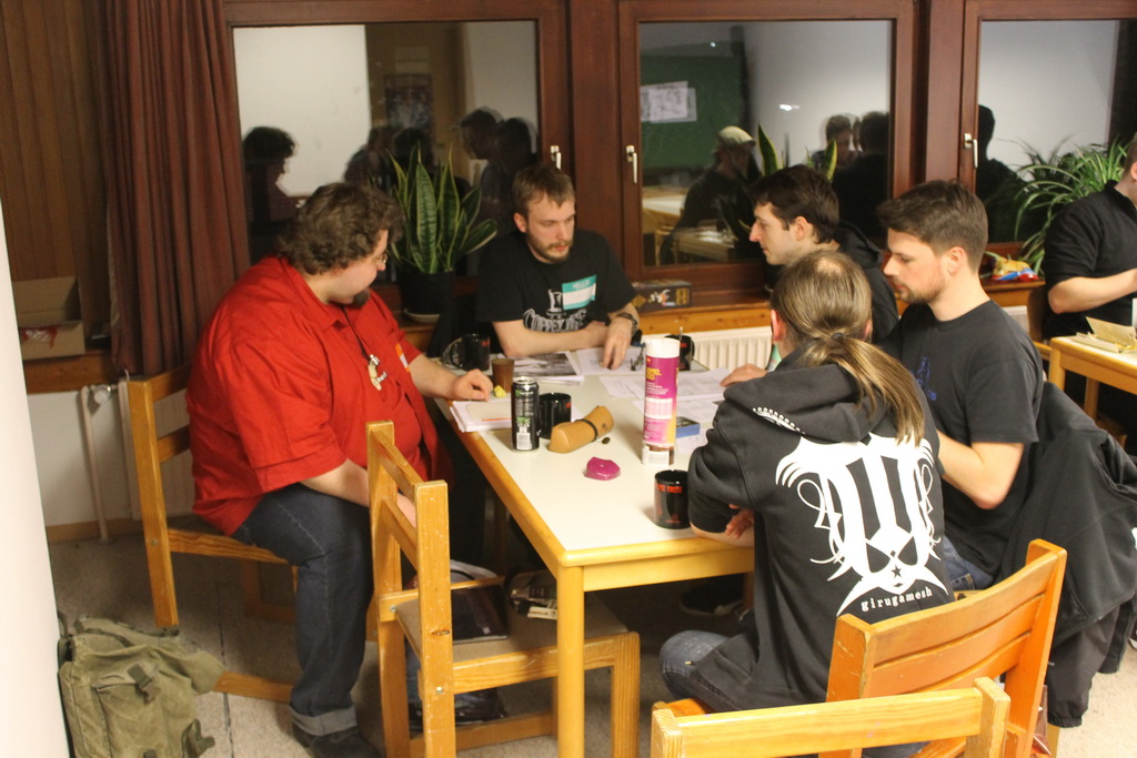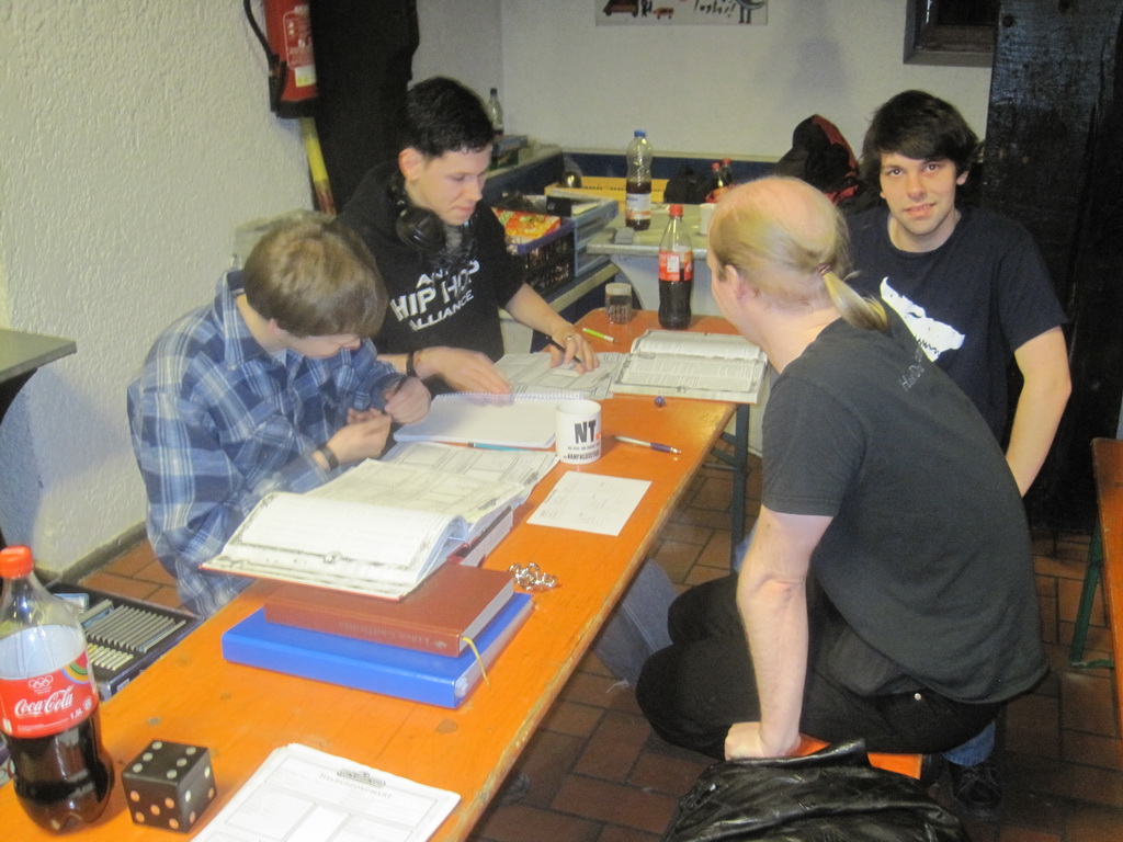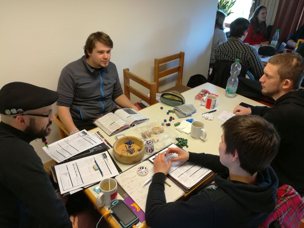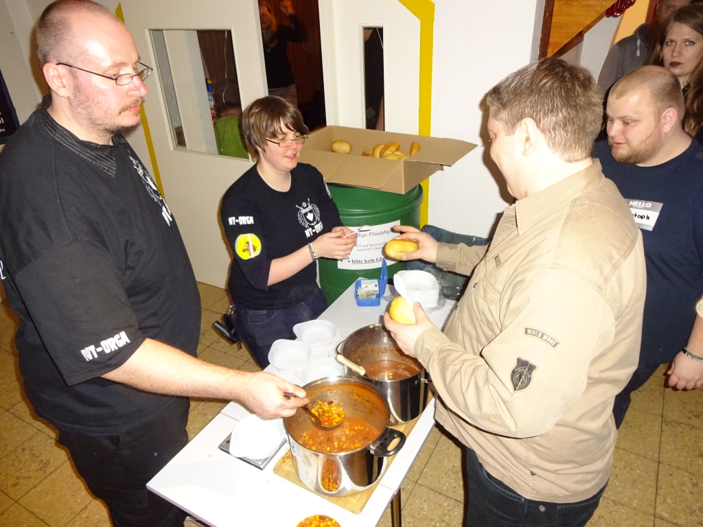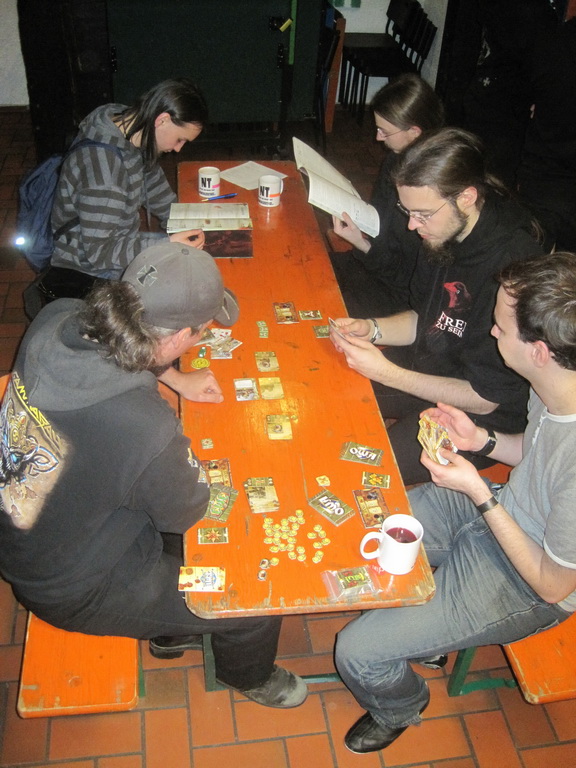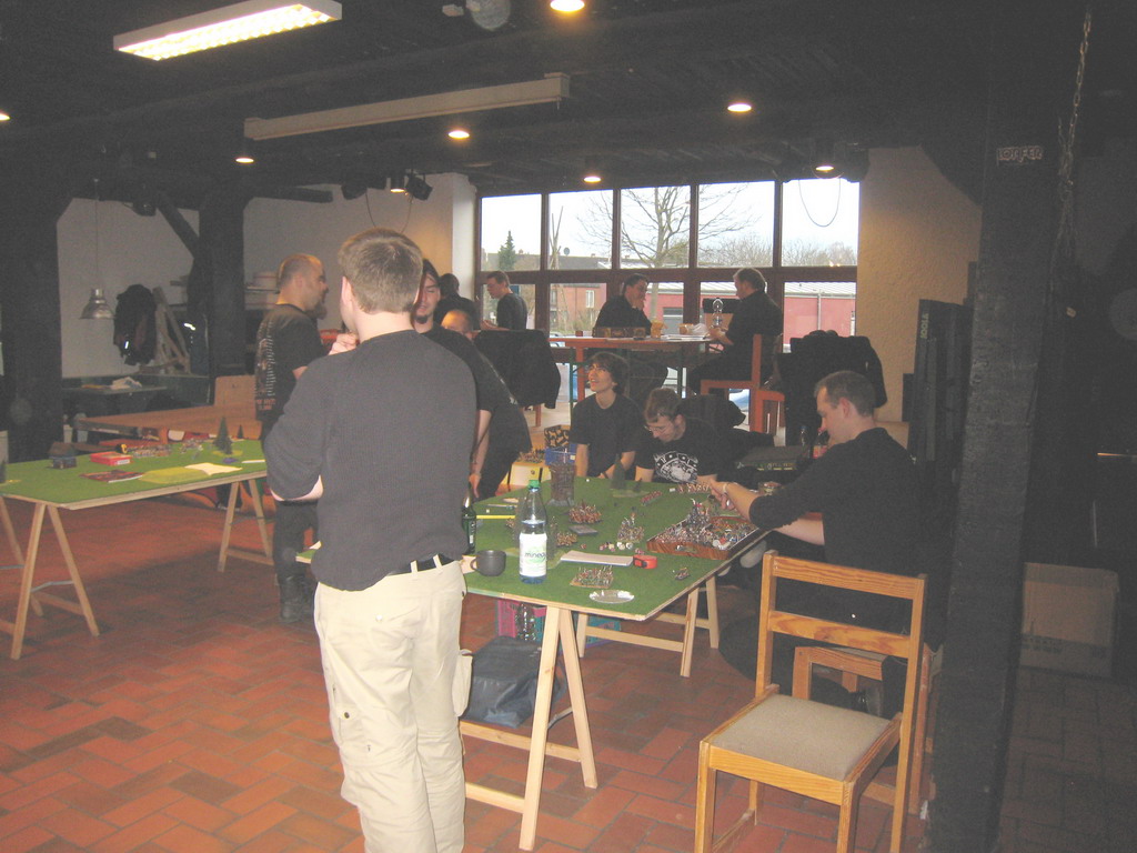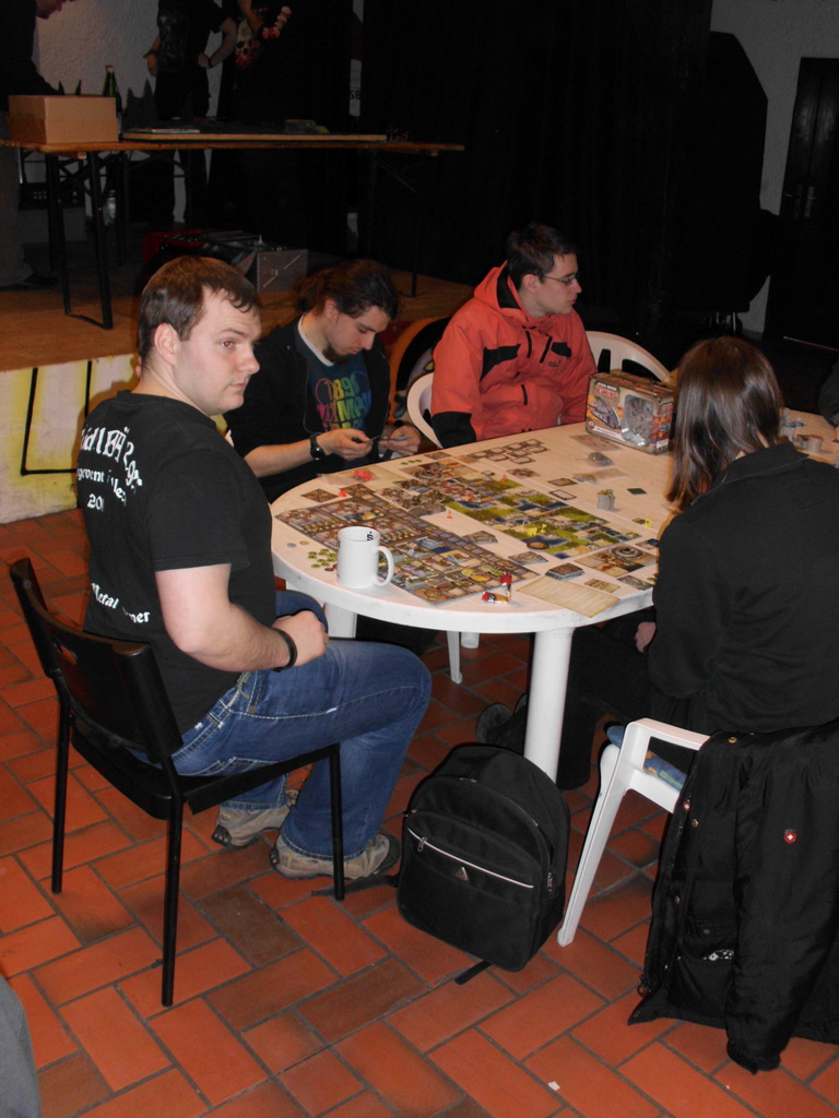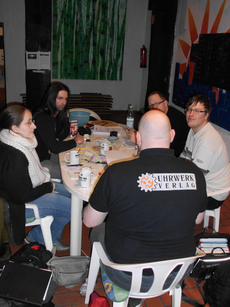NT24: Bei frischem, wenn doch trockenem Wetter, öffneten sich die Pforten gegen 17:30 Uhr und der Run auf die Tassen im JD Style konnte beginnen. Mit Flatrate und Proviant gewappnet ging es auch schon an die Spieltische. Wer hingegen etwas Kultur genießen wollte, war in der Lesung mit Bernhard Hennen genau richtig. Als der Chilimeister zum Mitternachtsimbiss rief und auch der letzte eine Spielrunde oder bereits einen Platz im Schlafraum der neuen Kita gefunden hatte, ging der Freitag mit einem neuen Besucherrekord von 212 Gästen zu Ende. Am Samstag sollte es spannend werden, ob der Wegfall des Obergeschosses im Jugendhaus auf die Tischreserven auswirken sollte, doch dem war nicht so. Auch einem erneuten Wurststau konnte entgegengewirkt werden, trotz dessen es zu kurzen Wartezeiten beim Grillmeister kam. Mit der Wunschlesung von Bernhard Hennen und Tom Daut wurde auch der Samstag Nachmittag literarisch aufgewertet. Bei der Tombola am Abend konnte man gleich zu Beginn, oder doch am Ende, den verwirrten Gästen eine Besucherzahl von 310 präsentieren. Am Sonntag sollte, ausser beim Grillmeister nichts mehr anbrennen. Die Besucher die es bis dahin geschafft hatten gegen die Müdigkeit anzukämpfen nutzten nochmal ihre Flatrate und spielten bis zur letzten Minute. Mit 321 Gästen, ging die an der Besucherzahl gemessene zweit stärkste Märzveranstaltung zu Ende.