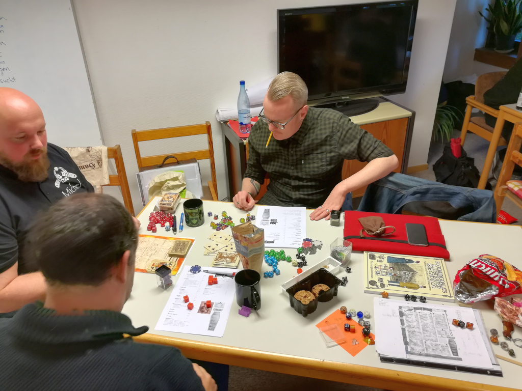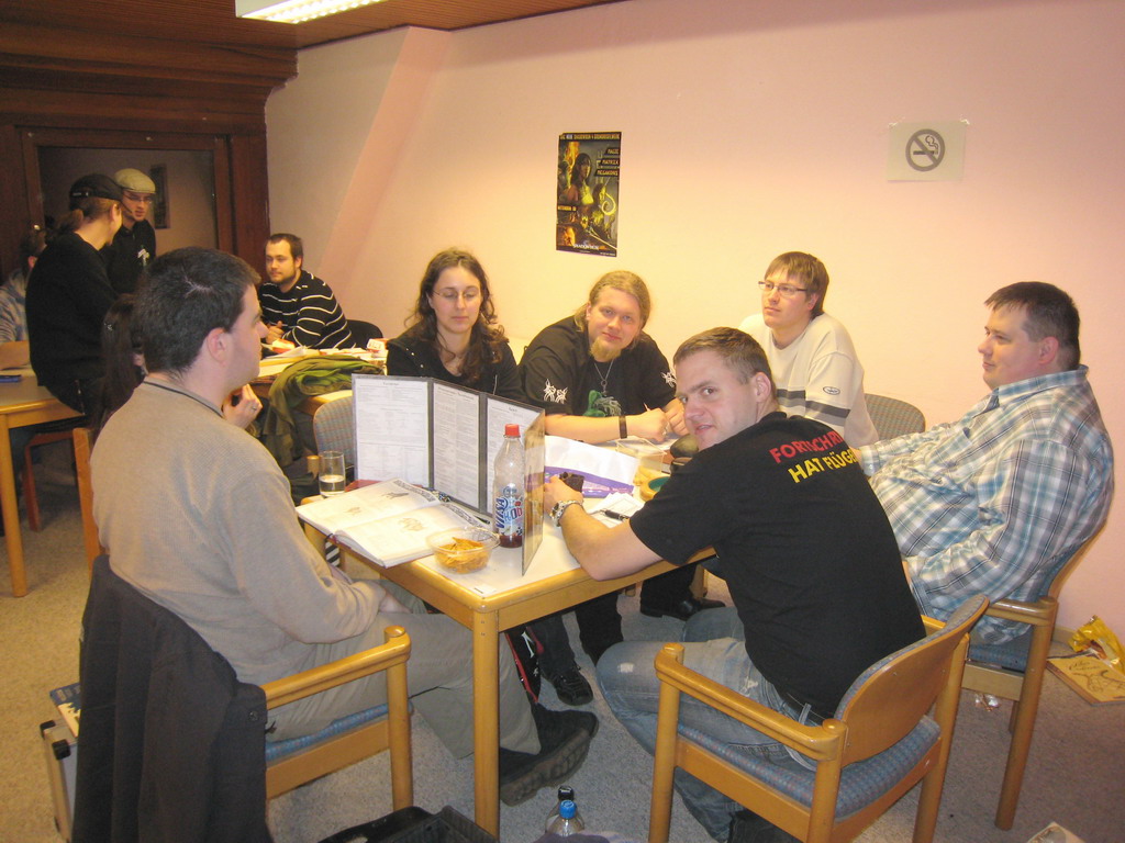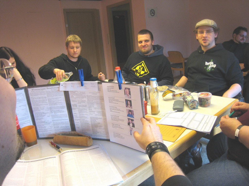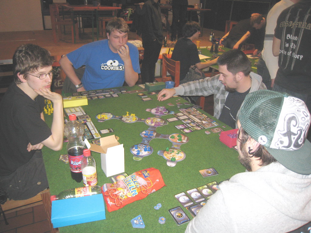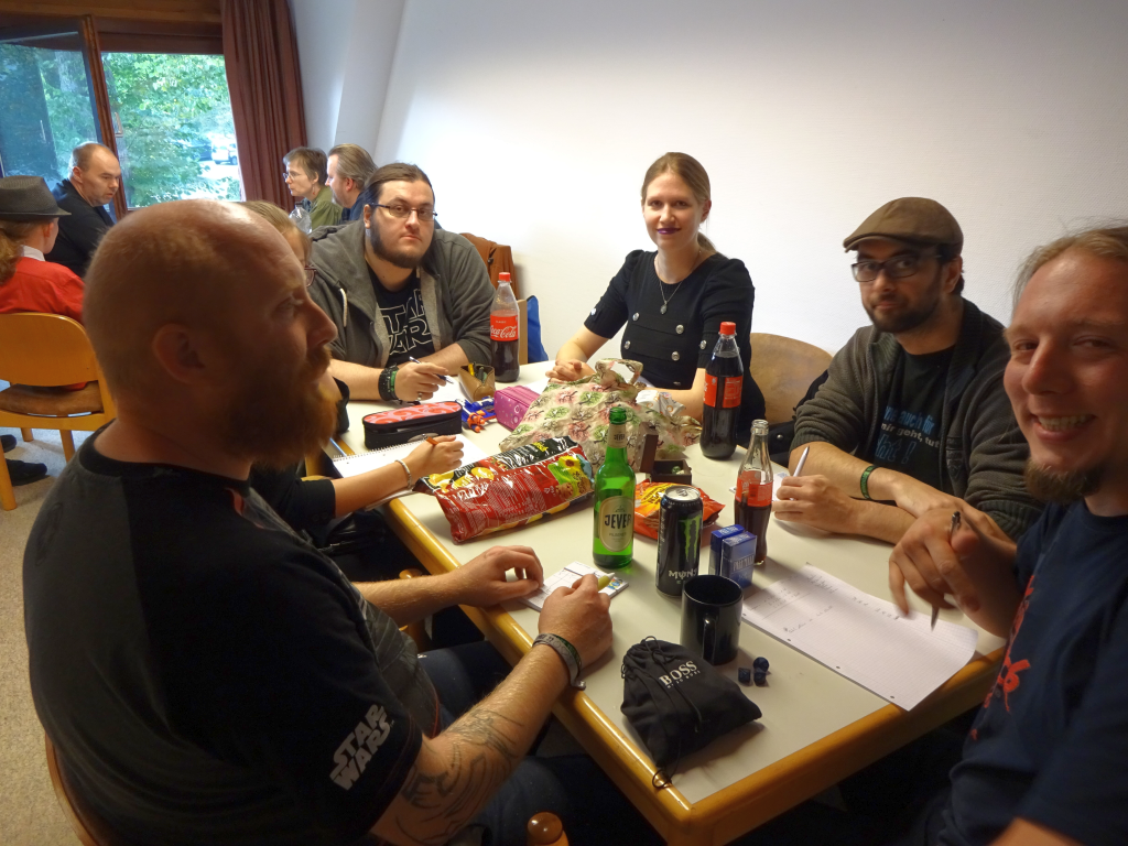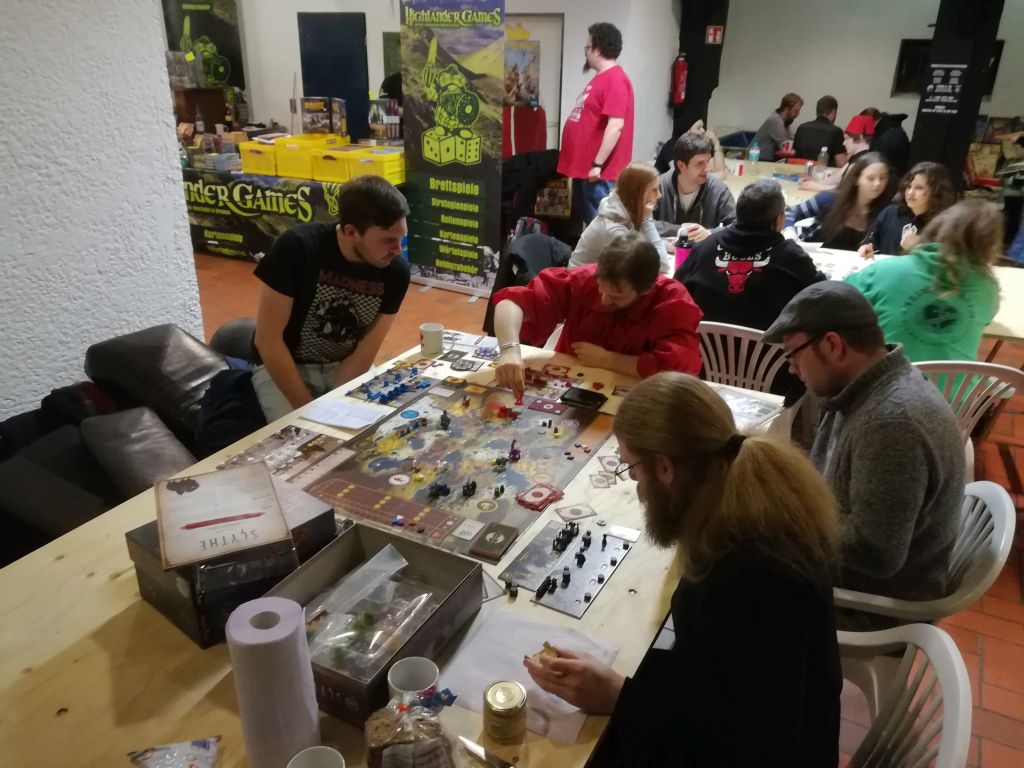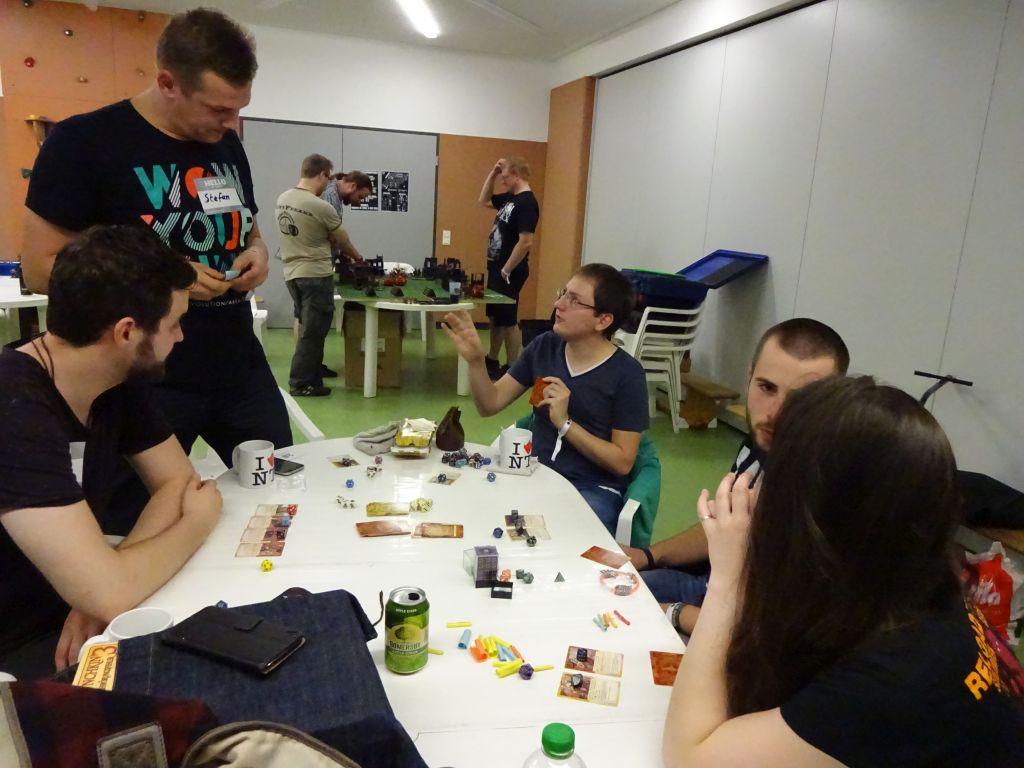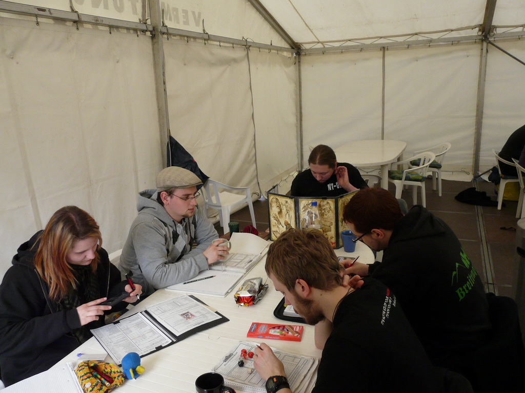 NT24: Bei frischem, wenn doch trockenem Wetter, öffneten sich die Pforten gegen 17:30 Uhr und der Run auf die Tassen im JD Style konnte beginnen. Mit Flatrate und Proviant gewappnet ging es auch schon an die Spieltische. Wer hingegen etwas Kultur genießen wollte, war in der Lesung mit Bernhard Hennen genau richtig. Als der Chilimeister zum Mitternachtsimbiss rief und auch der letzte eine Spielrunde oder bereits einen Platz im Schlafraum der neuen Kita gefunden hatte, ging der Freitag mit einem neuen Besucherrekord von 212 Gästen zu Ende. Am Samstag sollte es spannend werden, ob der Wegfall des Obergeschosses im Jugendhaus auf die Tischreserven auswirken sollte, doch dem war nicht so. Auch einem erneuten Wurststau konnte entgegengewirkt werden, trotz dessen es zu kurzen Wartezeiten beim Grillmeister kam. Mit der Wunschlesung von Bernhard Hennen und Tom Daut wurde auch der Samstag Nachmittag literarisch aufgewertet. Bei der Tombola am Abend konnte man gleich zu Beginn, oder doch am Ende, den verwirrten Gästen eine Besucherzahl von 310 präsentieren. Am Sonntag sollte, ausser beim Grillmeister nichts mehr anbrennen. Die Besucher die es bis dahin geschafft hatten gegen die Müdigkeit anzukämpfen nutzten nochmal ihre Flatrate und spielten bis zur letzten Minute. Mit 321 Gästen, ging die an der Besucherzahl gemessene zweit stärkste Märzveranstaltung zu Ende.