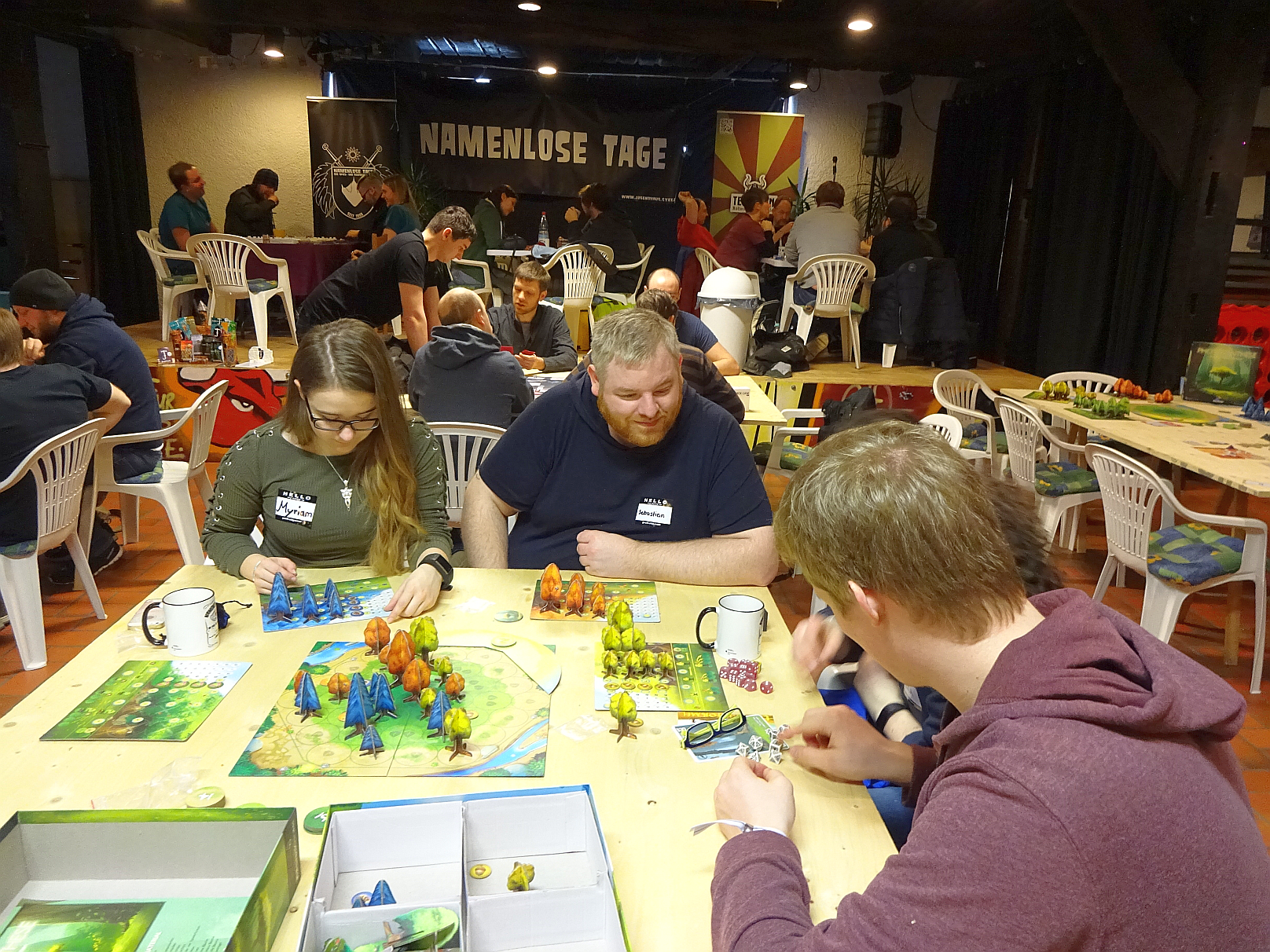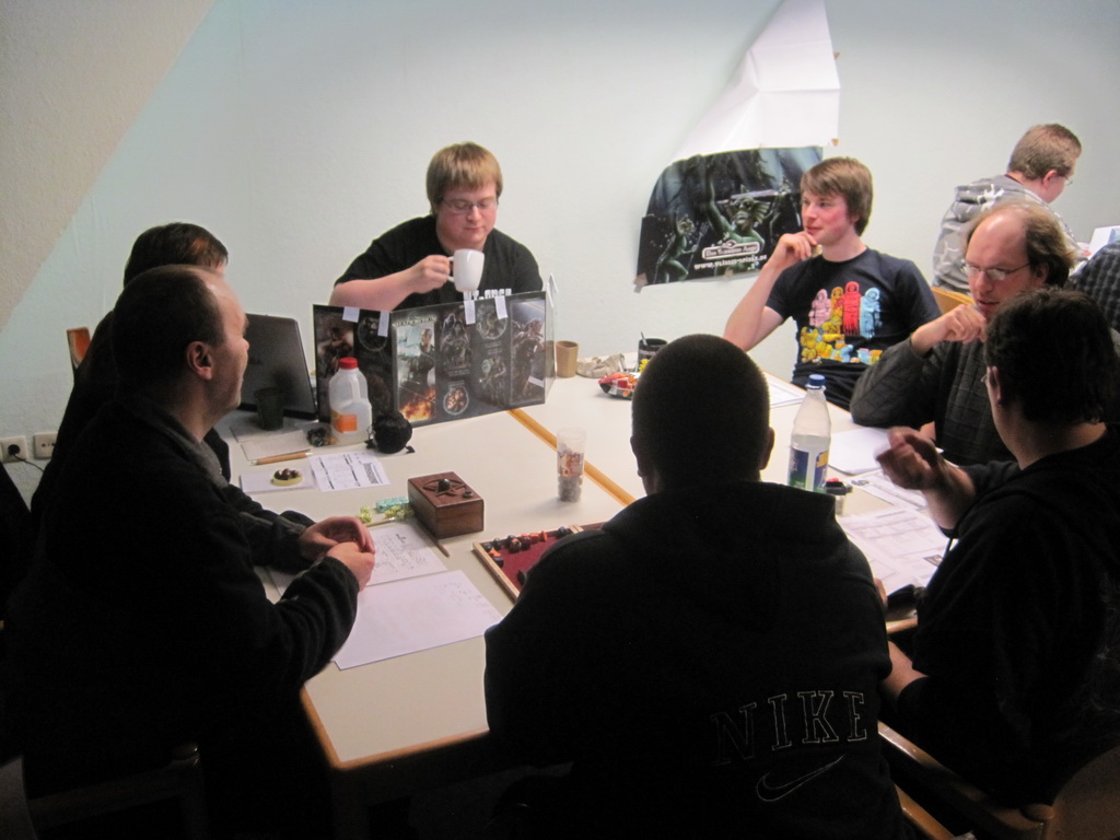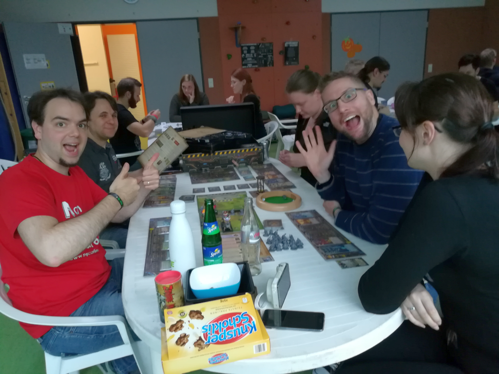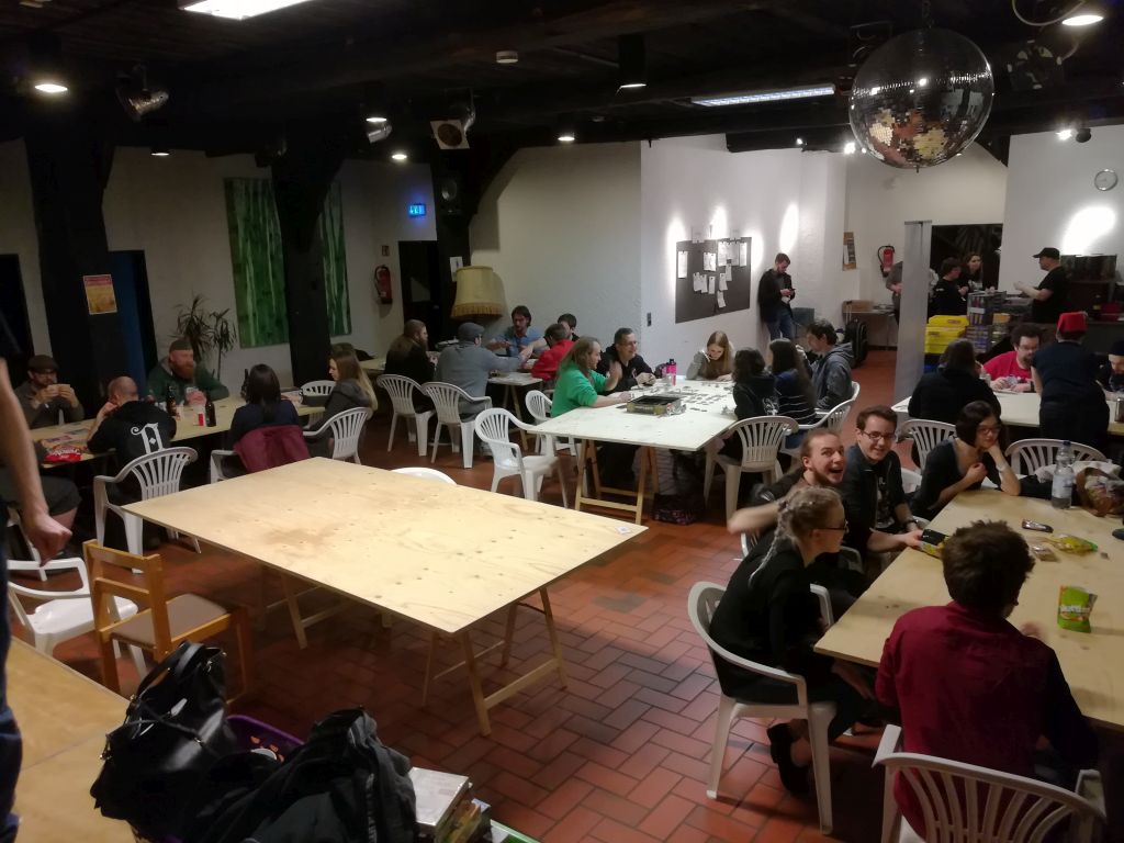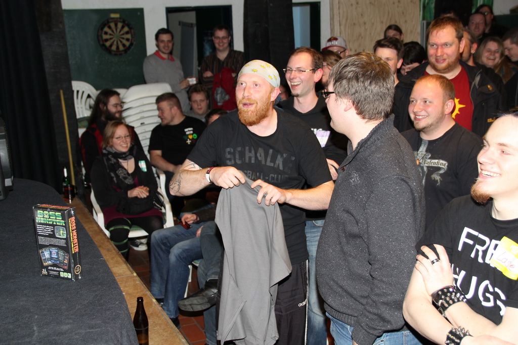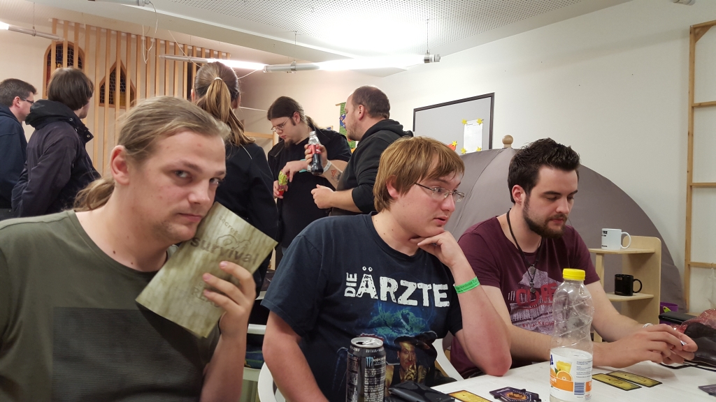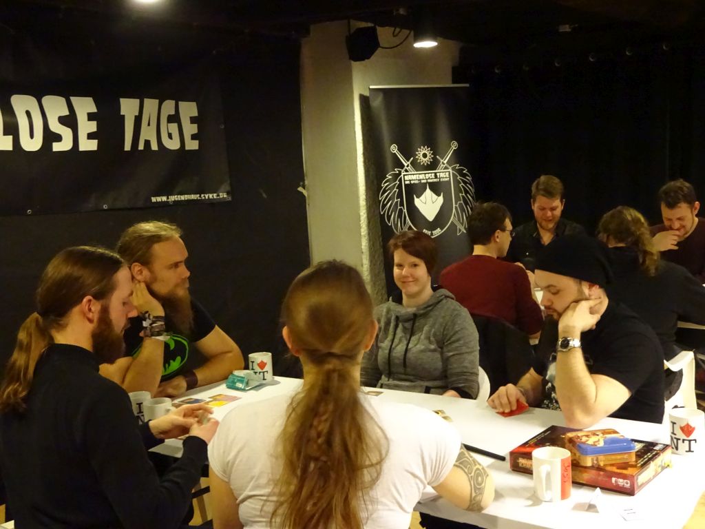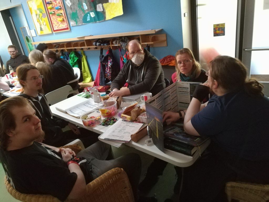NT24: Bei frischem, wenn doch trockenem Wetter, öffneten sich die Pforten gegen 17:30 Uhr und der Run auf die Tassen im JD Style konnte beginnen. Mit Flatrate und Proviant gewappnet ging es auch schon an die Spieltische. Wer hingegen etwas Kultur genießen wollte, war in der Lesung mit Bernhard Hennen genau richtig. Als der Chilimeister zum Mitternachtsimbiss rief und auch der letzte eine Spielrunde oder bereits einen Platz im Schlafraum der neuen Kita gefunden hatte, ging der Freitag mit einem neuen Besucherrekord von 212 Gästen zu Ende. Am Samstag sollte es spannend werden, ob der Wegfall des Obergeschosses im Jugendhaus auf die Tischreserven auswirken sollte, doch dem war nicht so. Auch einem erneuten Wurststau konnte entgegengewirkt werden, trotz dessen es zu kurzen Wartezeiten beim Grillmeister kam. Mit der Wunschlesung von Bernhard Hennen und Tom Daut wurde auch der Samstag Nachmittag literarisch aufgewertet. Bei der Tombola am Abend konnte man gleich zu Beginn, oder doch am Ende, den verwirrten Gästen eine Besucherzahl von 310 präsentieren. Am Sonntag sollte, ausser beim Grillmeister nichts mehr anbrennen. Die Besucher die es bis dahin geschafft hatten gegen die Müdigkeit anzukämpfen nutzten nochmal ihre Flatrate und spielten bis zur letzten Minute. Mit 321 Gästen, ging die an der Besucherzahl gemessene zweit stärkste Märzveranstaltung zu Ende.