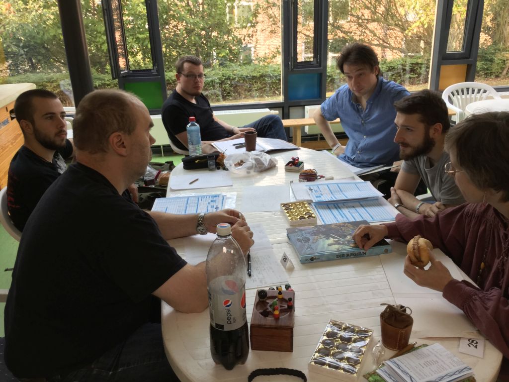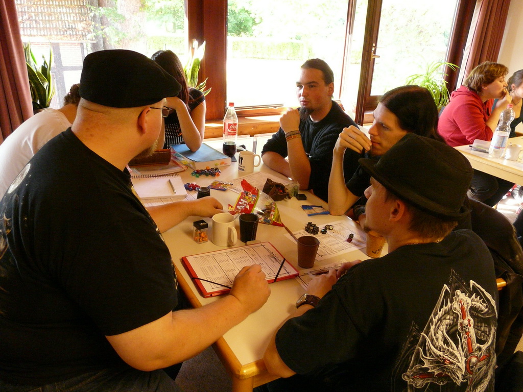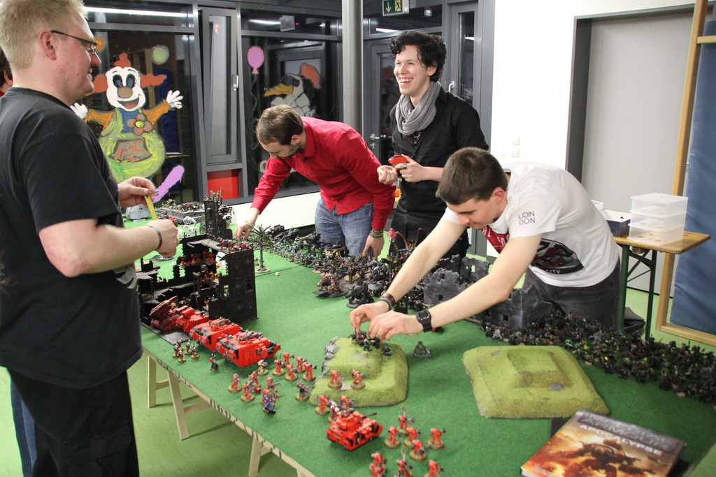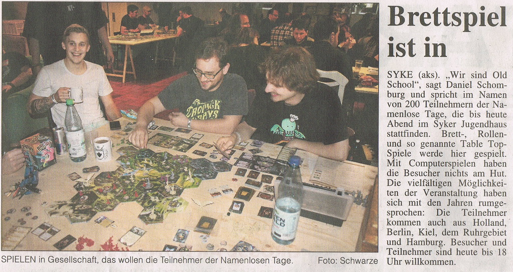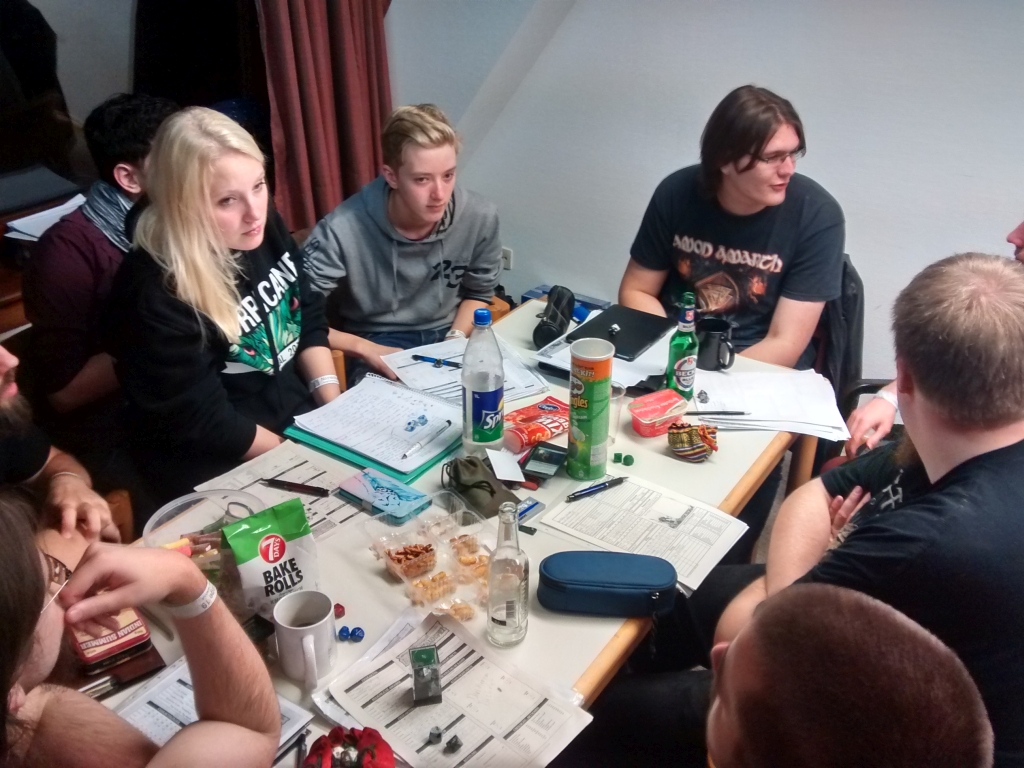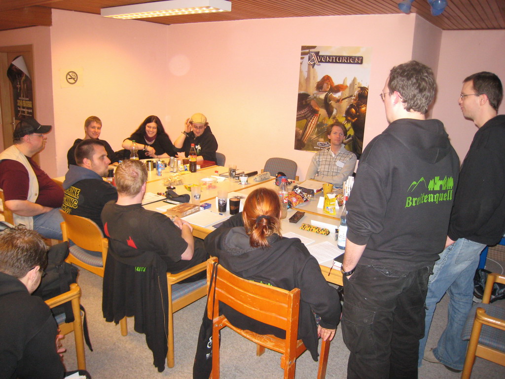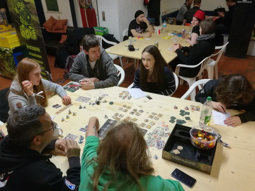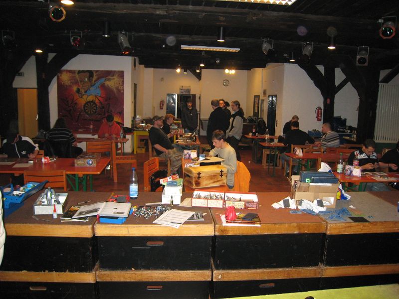 NT24: Bei frischem, wenn doch trockenem Wetter, öffneten sich die Pforten gegen 17:30 Uhr und der Run auf die Tassen im JD Style konnte beginnen. Mit Flatrate und Proviant gewappnet ging es auch schon an die Spieltische. Wer hingegen etwas Kultur genießen wollte, war in der Lesung mit Bernhard Hennen genau richtig. Als der Chilimeister zum Mitternachtsimbiss rief und auch der letzte eine Spielrunde oder bereits einen Platz im Schlafraum der neuen Kita gefunden hatte, ging der Freitag mit einem neuen Besucherrekord von 212 Gästen zu Ende. Am Samstag sollte es spannend werden, ob der Wegfall des Obergeschosses im Jugendhaus auf die Tischreserven auswirken sollte, doch dem war nicht so. Auch einem erneuten Wurststau konnte entgegengewirkt werden, trotz dessen es zu kurzen Wartezeiten beim Grillmeister kam. Mit der Wunschlesung von Bernhard Hennen und Tom Daut wurde auch der Samstag Nachmittag literarisch aufgewertet. Bei der Tombola am Abend konnte man gleich zu Beginn, oder doch am Ende, den verwirrten Gästen eine Besucherzahl von 310 präsentieren. Am Sonntag sollte, ausser beim Grillmeister nichts mehr anbrennen. Die Besucher die es bis dahin geschafft hatten gegen die Müdigkeit anzukämpfen nutzten nochmal ihre Flatrate und spielten bis zur letzten Minute. Mit 321 Gästen, ging die an der Besucherzahl gemessene zweit stärkste Märzveranstaltung zu Ende.