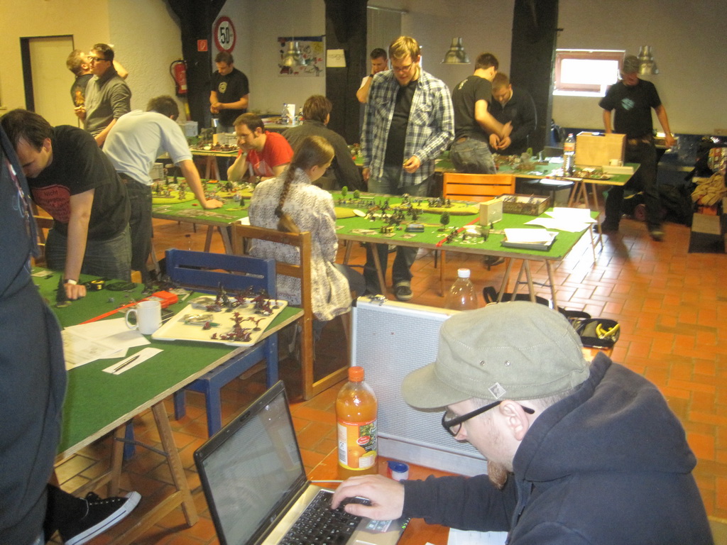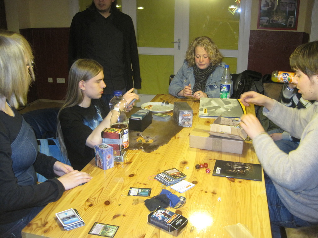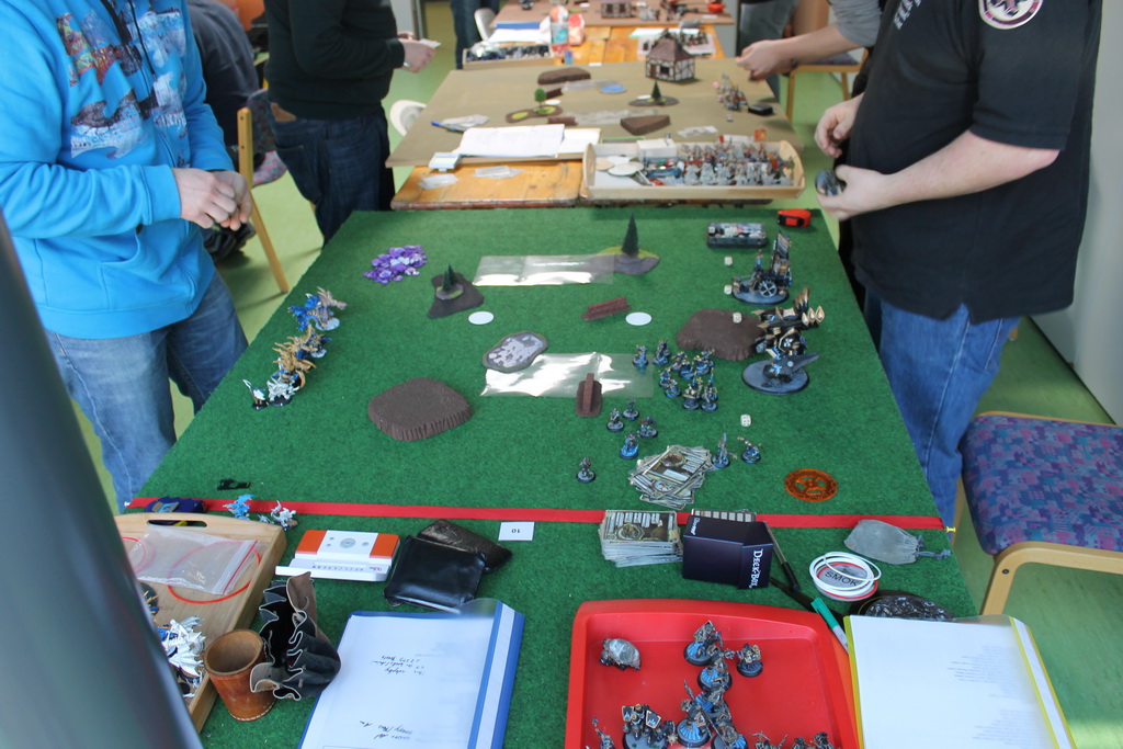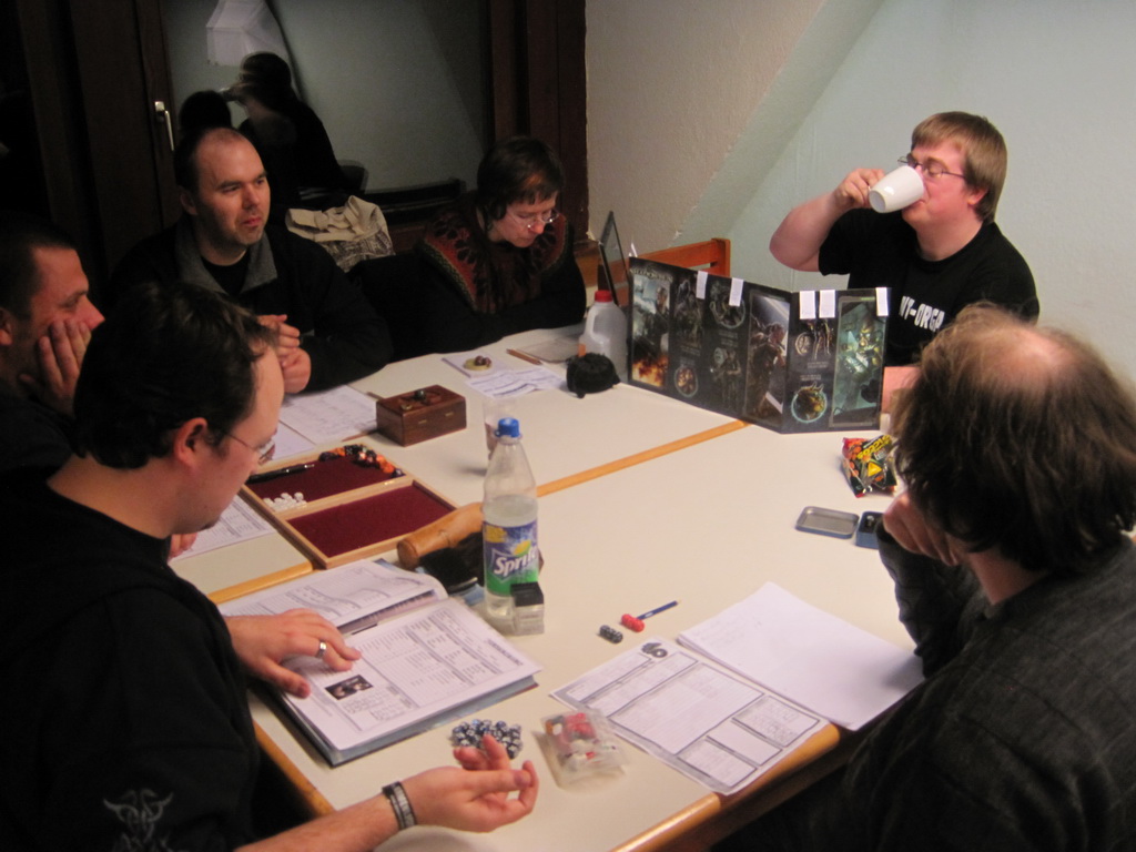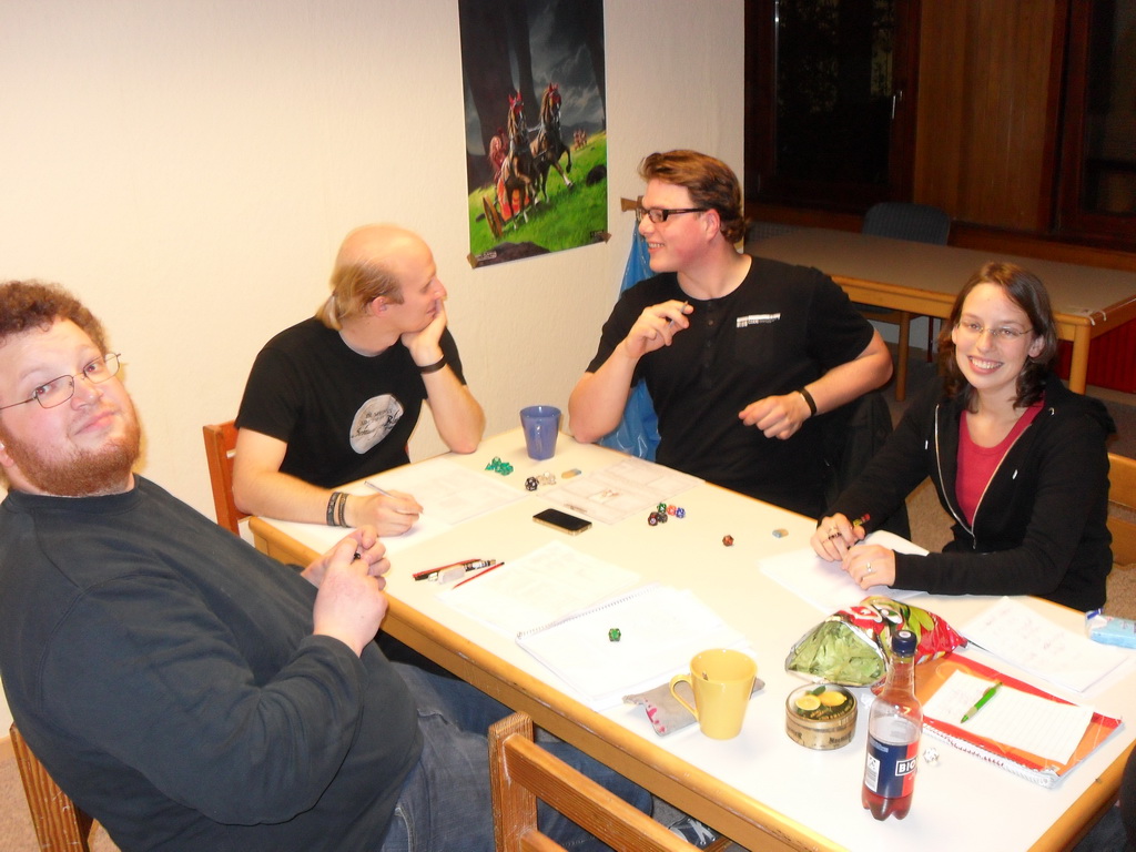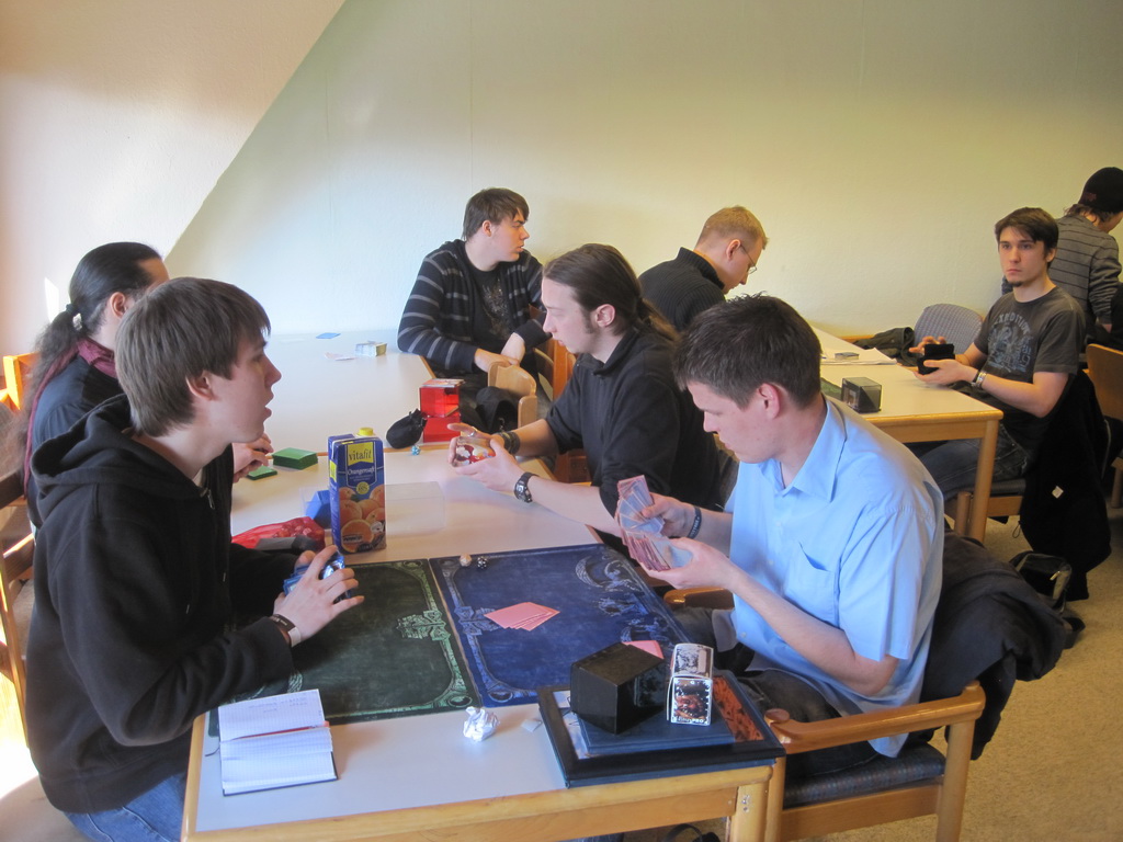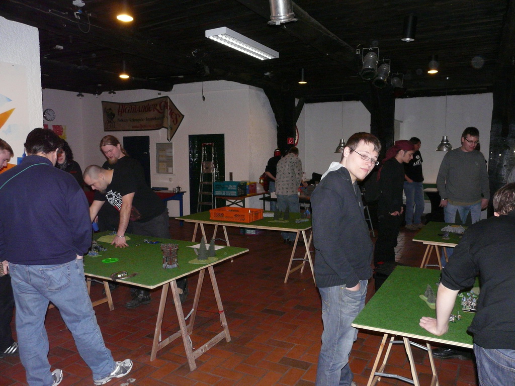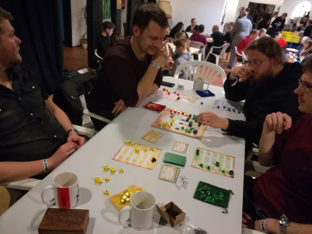 NT24: Bei frischem, wenn doch trockenem Wetter, öffneten sich die Pforten gegen 17:30 Uhr und der Run auf die Tassen im JD Style konnte beginnen. Mit Flatrate und Proviant gewappnet ging es auch schon an die Spieltische. Wer hingegen etwas Kultur genießen wollte, war in der Lesung mit Bernhard Hennen genau richtig. Als der Chilimeister zum Mitternachtsimbiss rief und auch der letzte eine Spielrunde oder bereits einen Platz im Schlafraum der neuen Kita gefunden hatte, ging der Freitag mit einem neuen Besucherrekord von 212 Gästen zu Ende. Am Samstag sollte es spannend werden, ob der Wegfall des Obergeschosses im Jugendhaus auf die Tischreserven auswirken sollte, doch dem war nicht so. Auch einem erneuten Wurststau konnte entgegengewirkt werden, trotz dessen es zu kurzen Wartezeiten beim Grillmeister kam. Mit der Wunschlesung von Bernhard Hennen und Tom Daut wurde auch der Samstag Nachmittag literarisch aufgewertet. Bei der Tombola am Abend konnte man gleich zu Beginn, oder doch am Ende, den verwirrten Gästen eine Besucherzahl von 310 präsentieren. Am Sonntag sollte, ausser beim Grillmeister nichts mehr anbrennen. Die Besucher die es bis dahin geschafft hatten gegen die Müdigkeit anzukämpfen nutzten nochmal ihre Flatrate und spielten bis zur letzten Minute. Mit 321 Gästen, ging die an der Besucherzahl gemessene zweit stärkste Märzveranstaltung zu Ende.