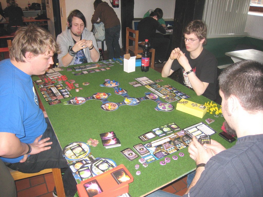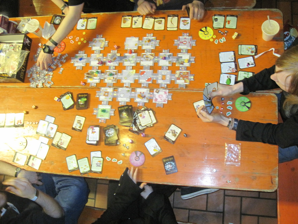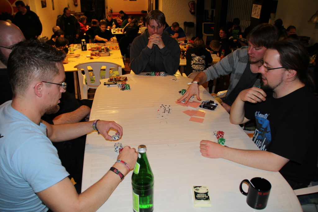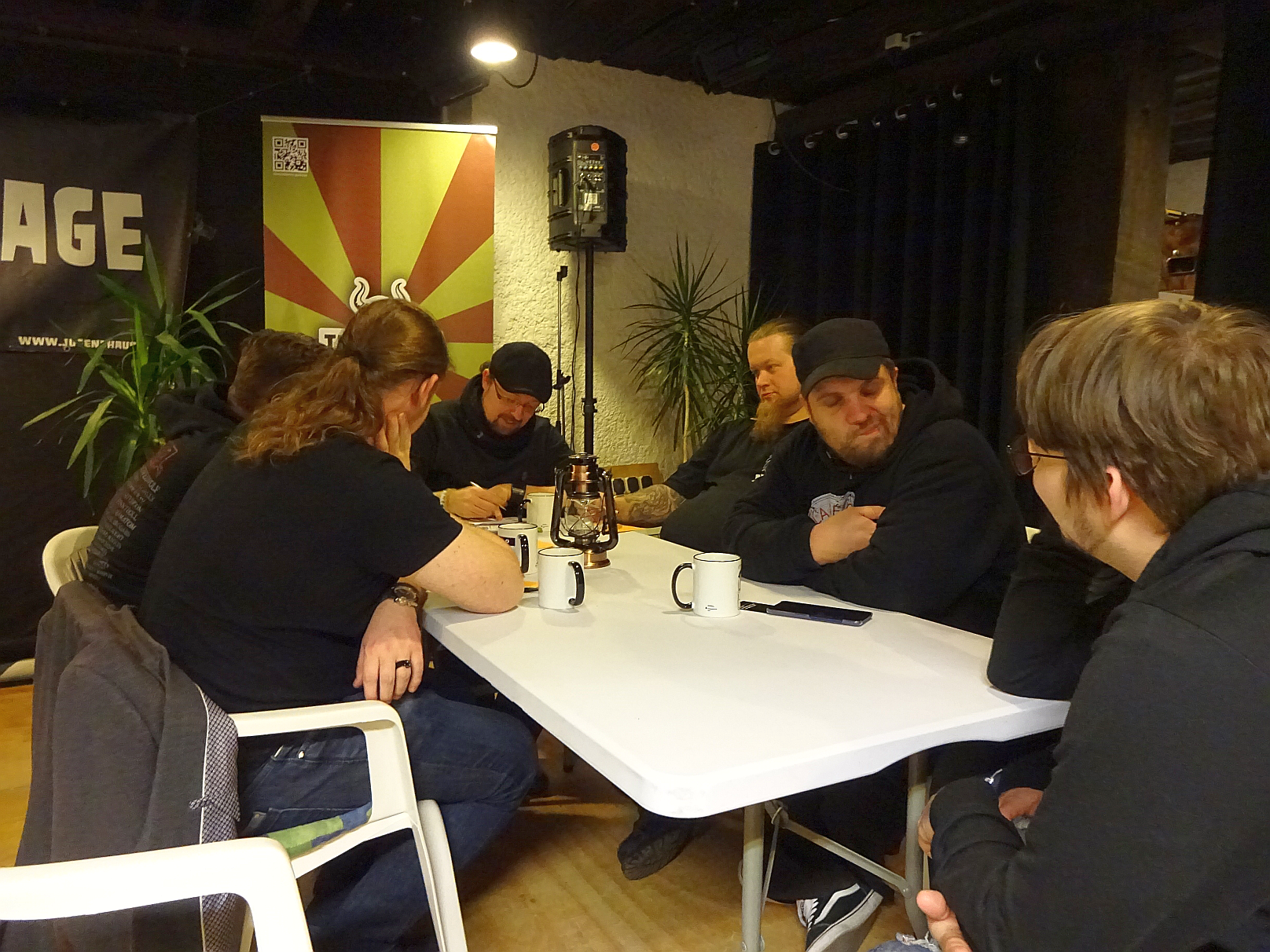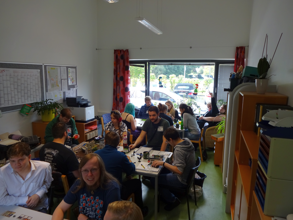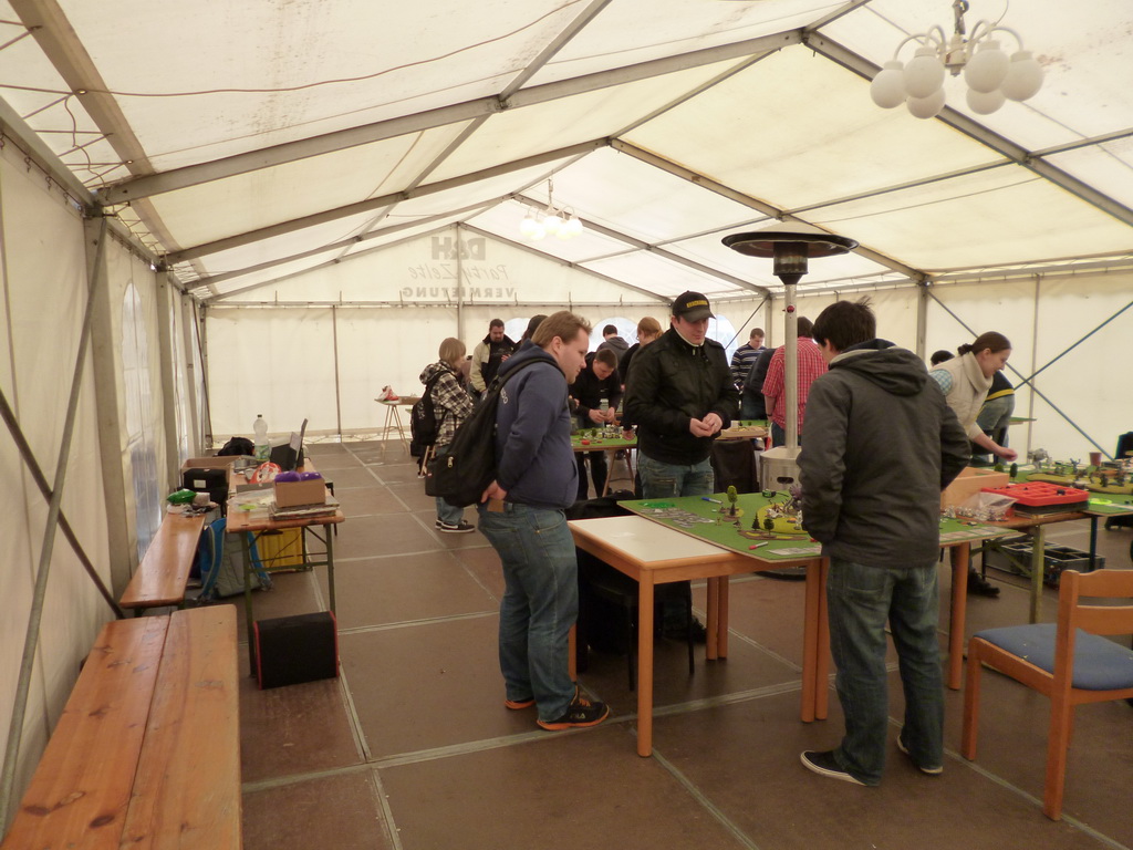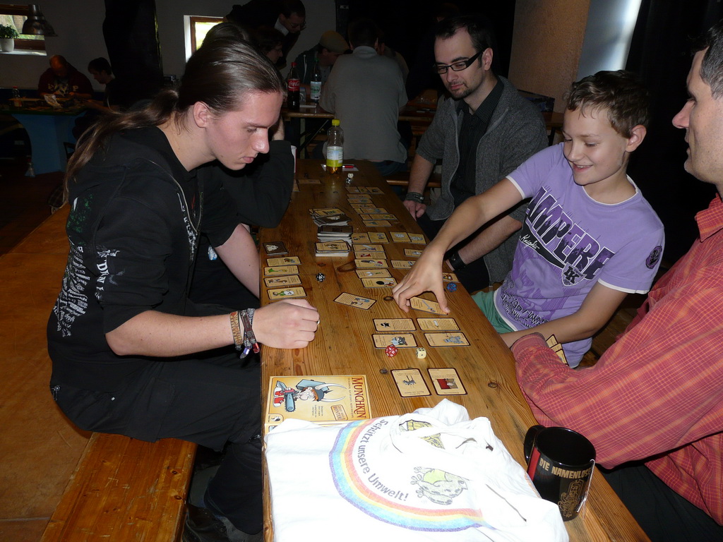 NT24: Bei frischem, wenn doch trockenem Wetter, öffneten sich die Pforten gegen 17:30 Uhr und der Run auf die Tassen im JD Style konnte beginnen. Mit Flatrate und Proviant gewappnet ging es auch schon an die Spieltische. Wer hingegen etwas Kultur genießen wollte, war in der Lesung mit Bernhard Hennen genau richtig. Als der Chilimeister zum Mitternachtsimbiss rief und auch der letzte eine Spielrunde oder bereits einen Platz im Schlafraum der neuen Kita gefunden hatte, ging der Freitag mit einem neuen Besucherrekord von 212 Gästen zu Ende. Am Samstag sollte es spannend werden, ob der Wegfall des Obergeschosses im Jugendhaus auf die Tischreserven auswirken sollte, doch dem war nicht so. Auch einem erneuten Wurststau konnte entgegengewirkt werden, trotz dessen es zu kurzen Wartezeiten beim Grillmeister kam. Mit der Wunschlesung von Bernhard Hennen und Tom Daut wurde auch der Samstag Nachmittag literarisch aufgewertet. Bei der Tombola am Abend konnte man gleich zu Beginn, oder doch am Ende, den verwirrten Gästen eine Besucherzahl von 310 präsentieren. Am Sonntag sollte, ausser beim Grillmeister nichts mehr anbrennen. Die Besucher die es bis dahin geschafft hatten gegen die Müdigkeit anzukämpfen nutzten nochmal ihre Flatrate und spielten bis zur letzten Minute. Mit 321 Gästen, ging die an der Besucherzahl gemessene zweit stärkste Märzveranstaltung zu Ende.