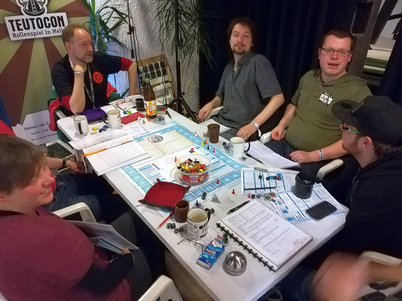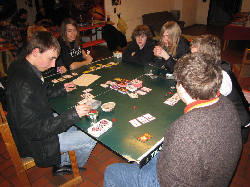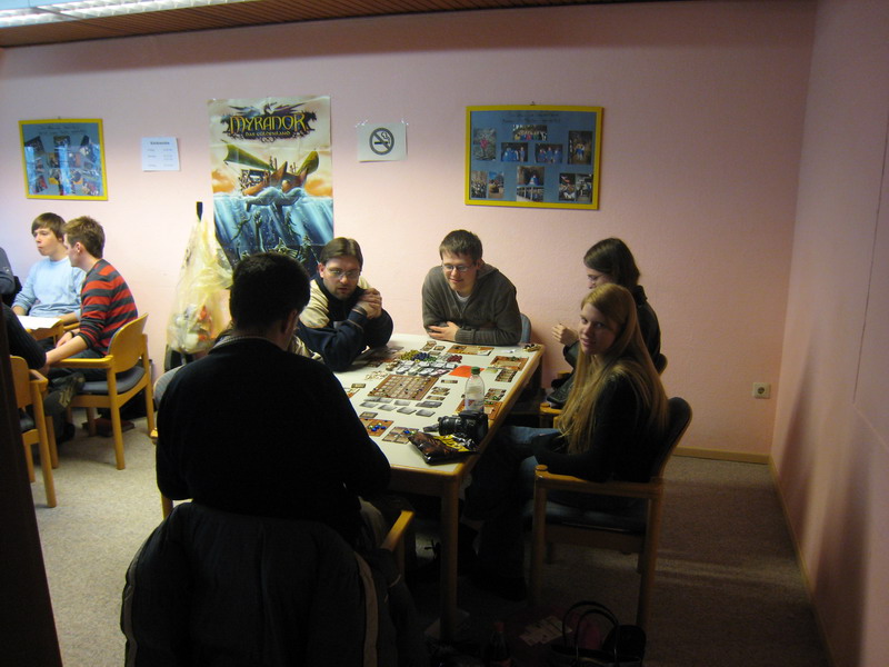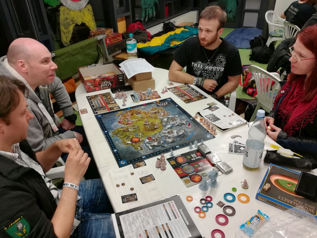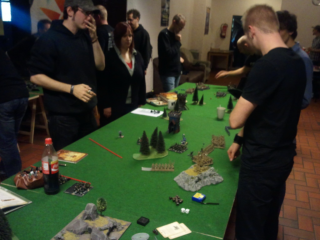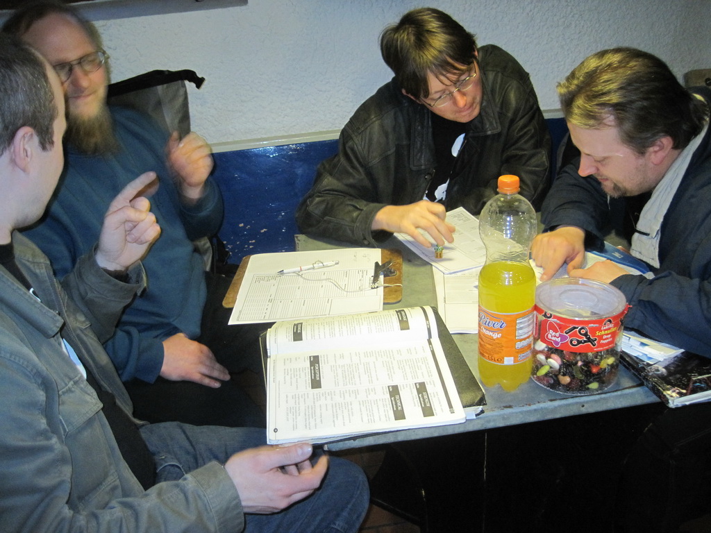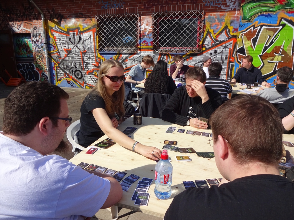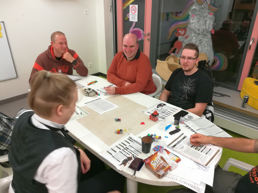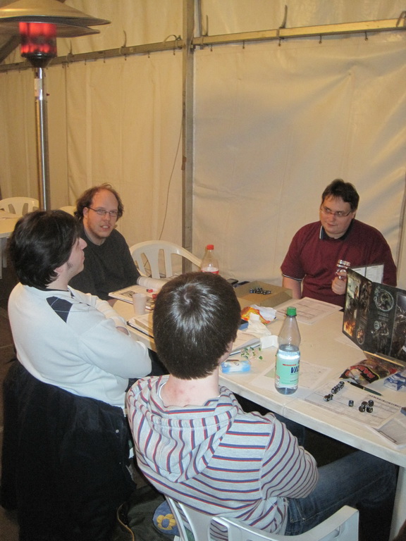 NT24: Bei frischem, wenn doch trockenem Wetter, öffneten sich die Pforten gegen 17:30 Uhr und der Run auf die Tassen im JD Style konnte beginnen. Mit Flatrate und Proviant gewappnet ging es auch schon an die Spieltische. Wer hingegen etwas Kultur genießen wollte, war in der Lesung mit Bernhard Hennen genau richtig. Als der Chilimeister zum Mitternachtsimbiss rief und auch der letzte eine Spielrunde oder bereits einen Platz im Schlafraum der neuen Kita gefunden hatte, ging der Freitag mit einem neuen Besucherrekord von 212 Gästen zu Ende. Am Samstag sollte es spannend werden, ob der Wegfall des Obergeschosses im Jugendhaus auf die Tischreserven auswirken sollte, doch dem war nicht so. Auch einem erneuten Wurststau konnte entgegengewirkt werden, trotz dessen es zu kurzen Wartezeiten beim Grillmeister kam. Mit der Wunschlesung von Bernhard Hennen und Tom Daut wurde auch der Samstag Nachmittag literarisch aufgewertet. Bei der Tombola am Abend konnte man gleich zu Beginn, oder doch am Ende, den verwirrten Gästen eine Besucherzahl von 310 präsentieren. Am Sonntag sollte, ausser beim Grillmeister nichts mehr anbrennen. Die Besucher die es bis dahin geschafft hatten gegen die Müdigkeit anzukämpfen nutzten nochmal ihre Flatrate und spielten bis zur letzten Minute. Mit 321 Gästen, ging die an der Besucherzahl gemessene zweit stärkste Märzveranstaltung zu Ende.