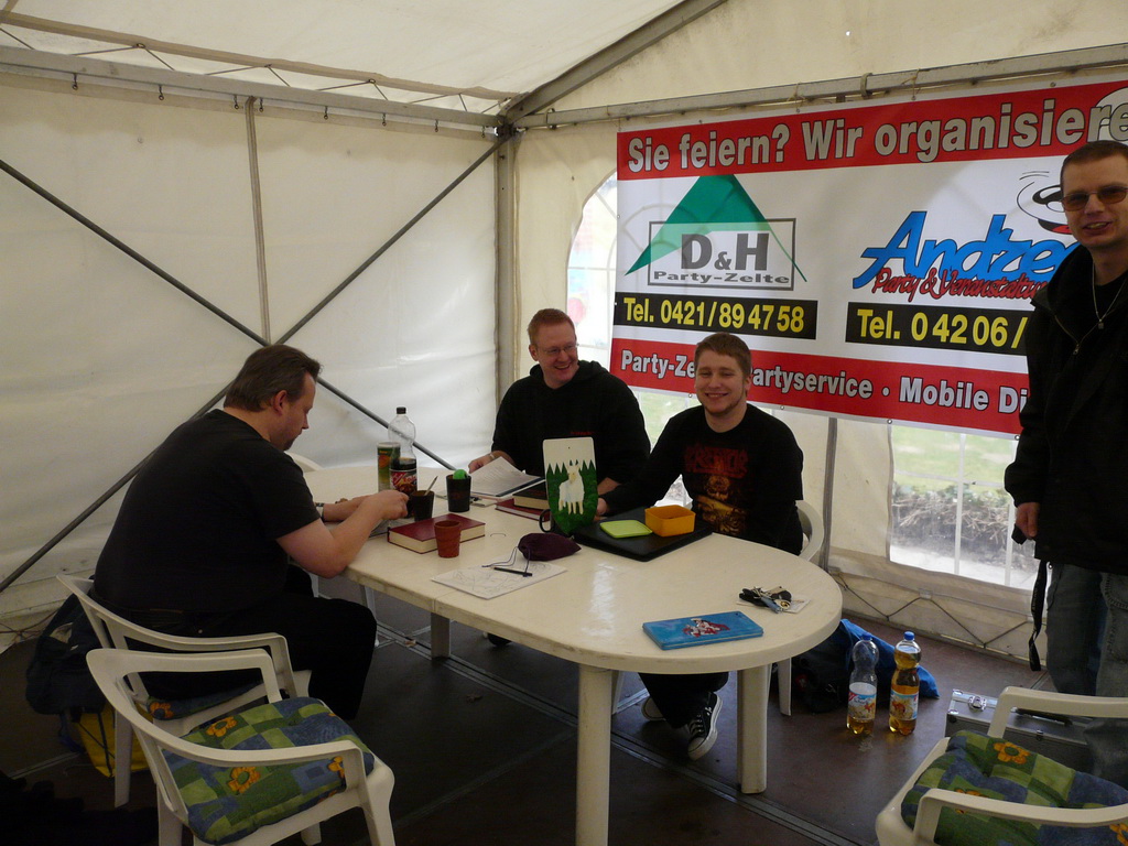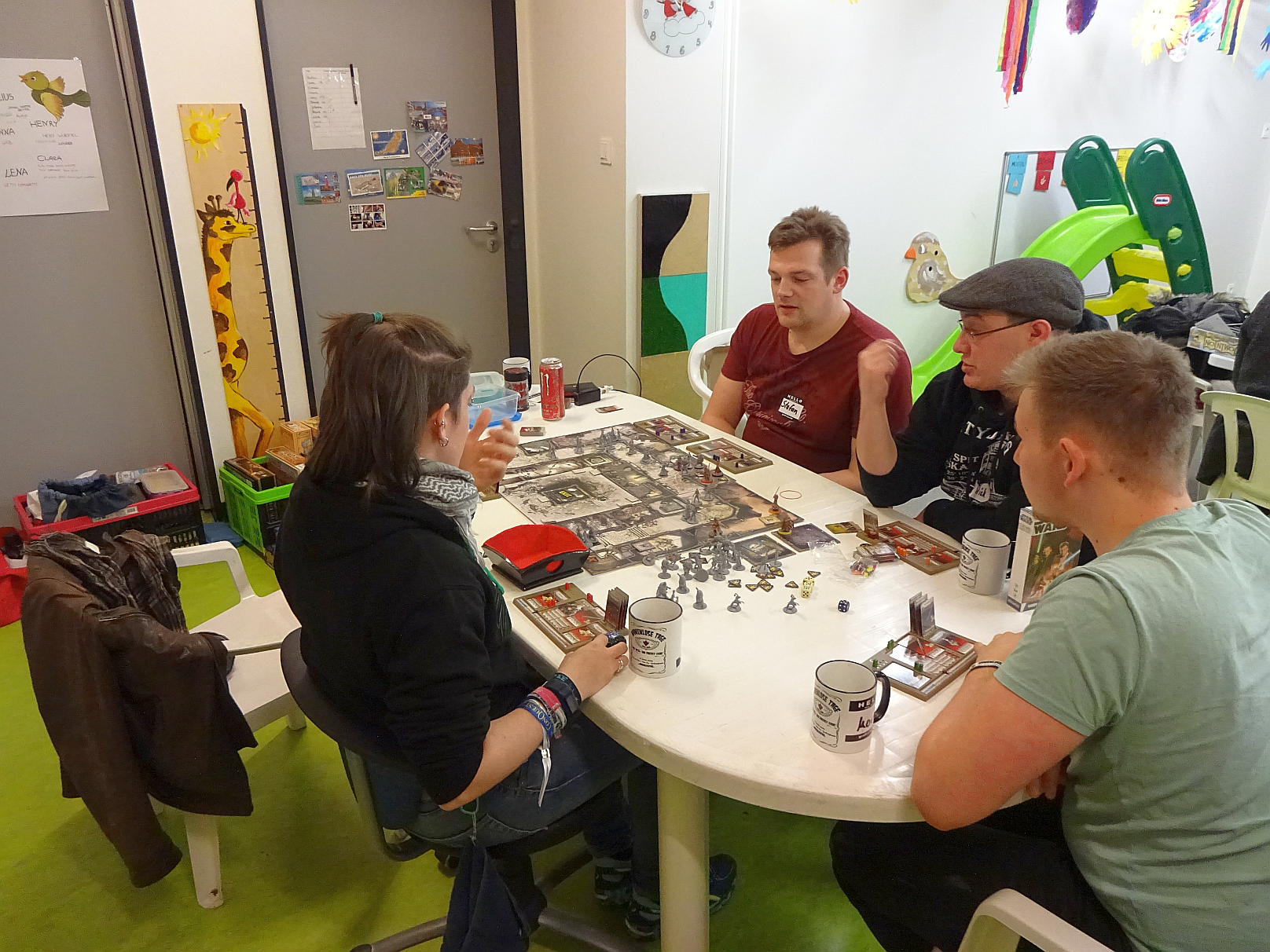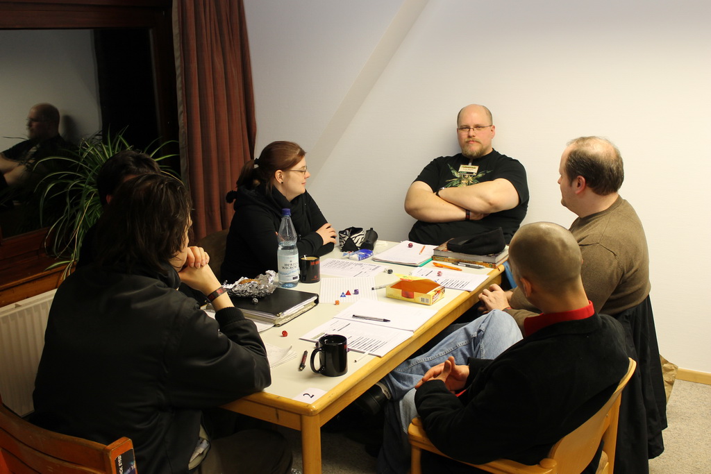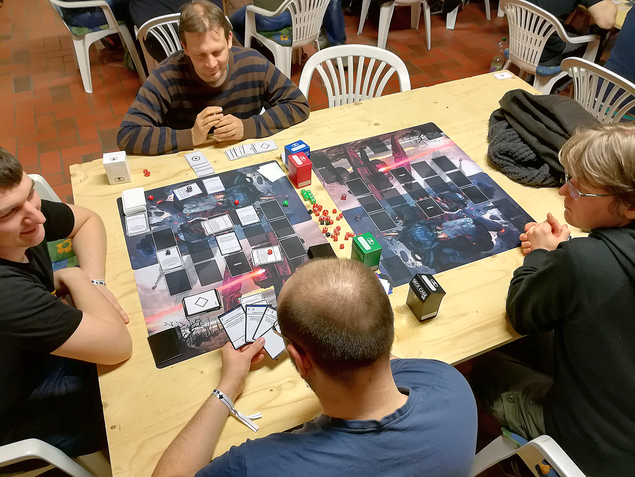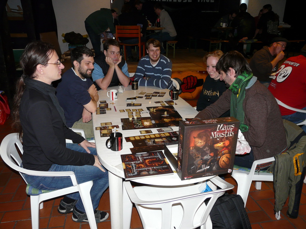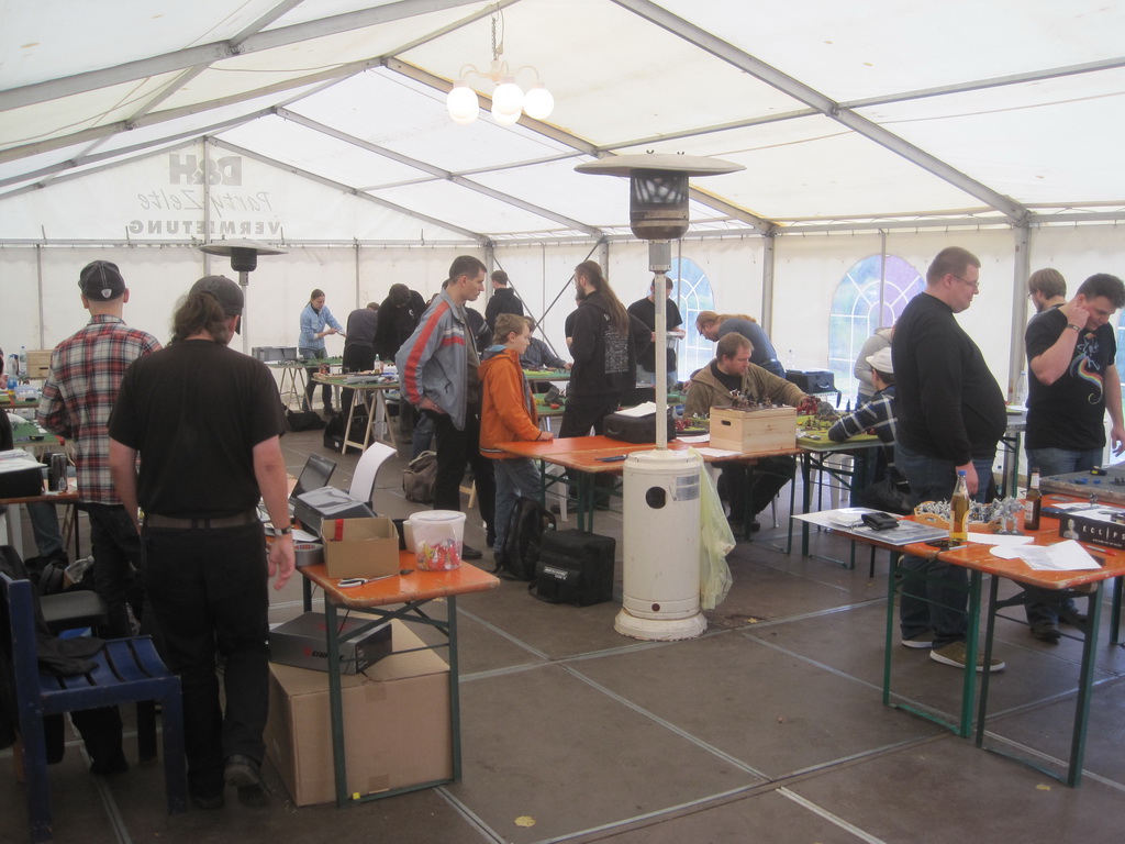NT24: Bei frischem, wenn doch trockenem Wetter, öffneten sich die Pforten gegen 17:30 Uhr und der Run auf die Tassen im JD Style konnte beginnen. Mit Flatrate und Proviant gewappnet ging es auch schon an die Spieltische. Wer hingegen etwas Kultur genießen wollte, war in der Lesung mit Bernhard Hennen genau richtig. Als der Chilimeister zum Mitternachtsimbiss rief und auch der letzte eine Spielrunde oder bereits einen Platz im Schlafraum der neuen Kita gefunden hatte, ging der Freitag mit einem neuen Besucherrekord von 212 Gästen zu Ende. Am Samstag sollte es spannend werden, ob der Wegfall des Obergeschosses im Jugendhaus auf die Tischreserven auswirken sollte, doch dem war nicht so. Auch einem erneuten Wurststau konnte entgegengewirkt werden, trotz dessen es zu kurzen Wartezeiten beim Grillmeister kam. Mit der Wunschlesung von Bernhard Hennen und Tom Daut wurde auch der Samstag Nachmittag literarisch aufgewertet. Bei der Tombola am Abend konnte man gleich zu Beginn, oder doch am Ende, den verwirrten Gästen eine Besucherzahl von 310 präsentieren. Am Sonntag sollte, ausser beim Grillmeister nichts mehr anbrennen. Die Besucher die es bis dahin geschafft hatten gegen die Müdigkeit anzukämpfen nutzten nochmal ihre Flatrate und spielten bis zur letzten Minute. Mit 321 Gästen, ging die an der Besucherzahl gemessene zweit stärkste Märzveranstaltung zu Ende.