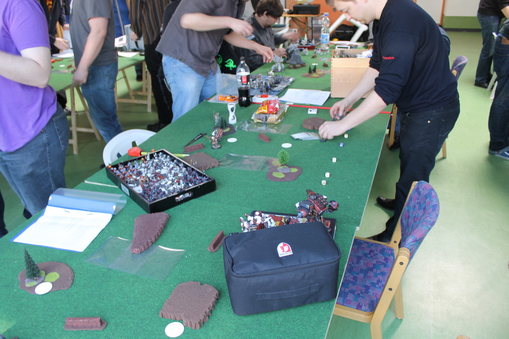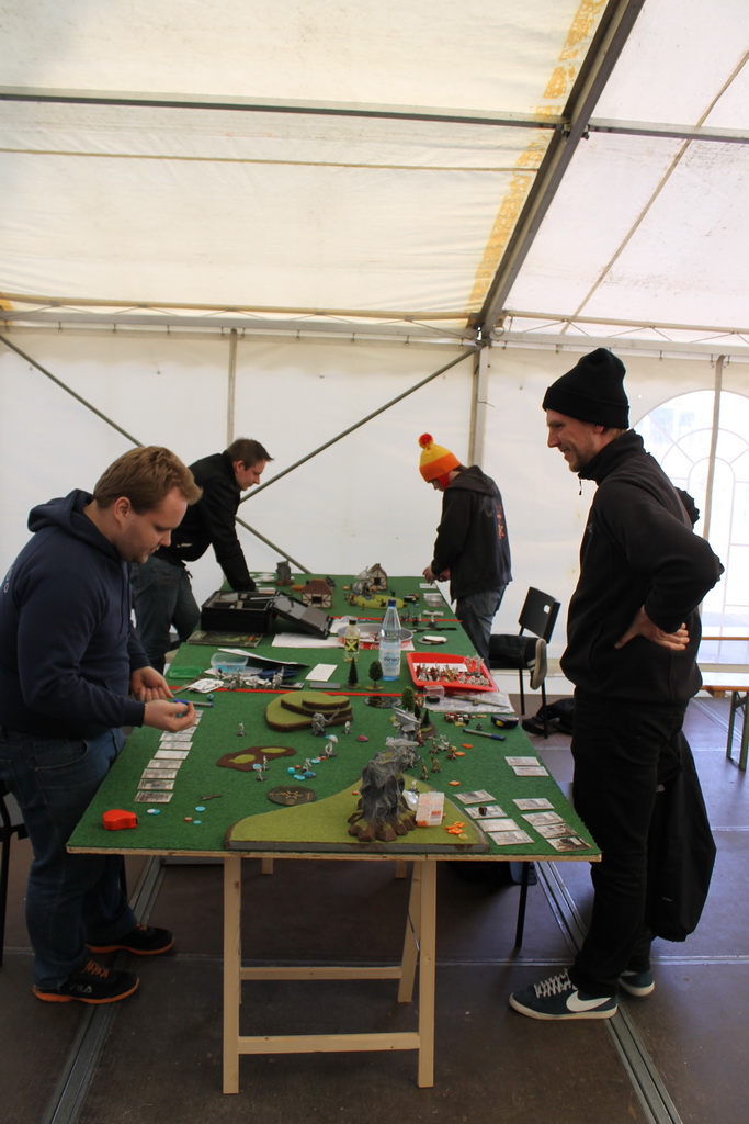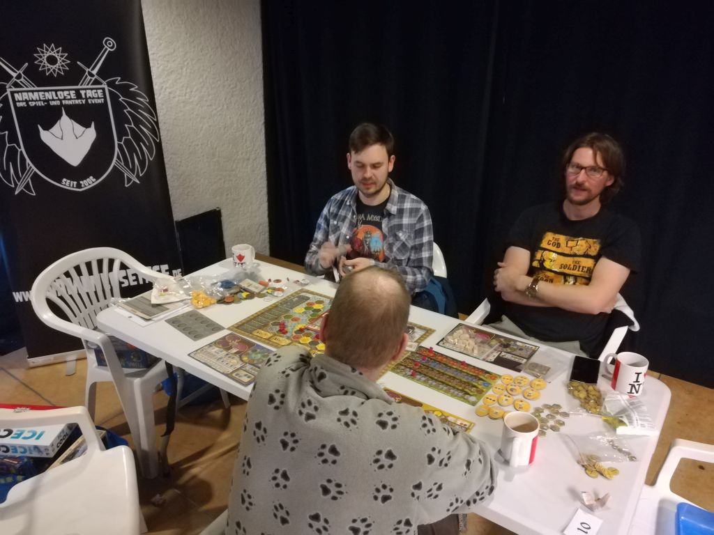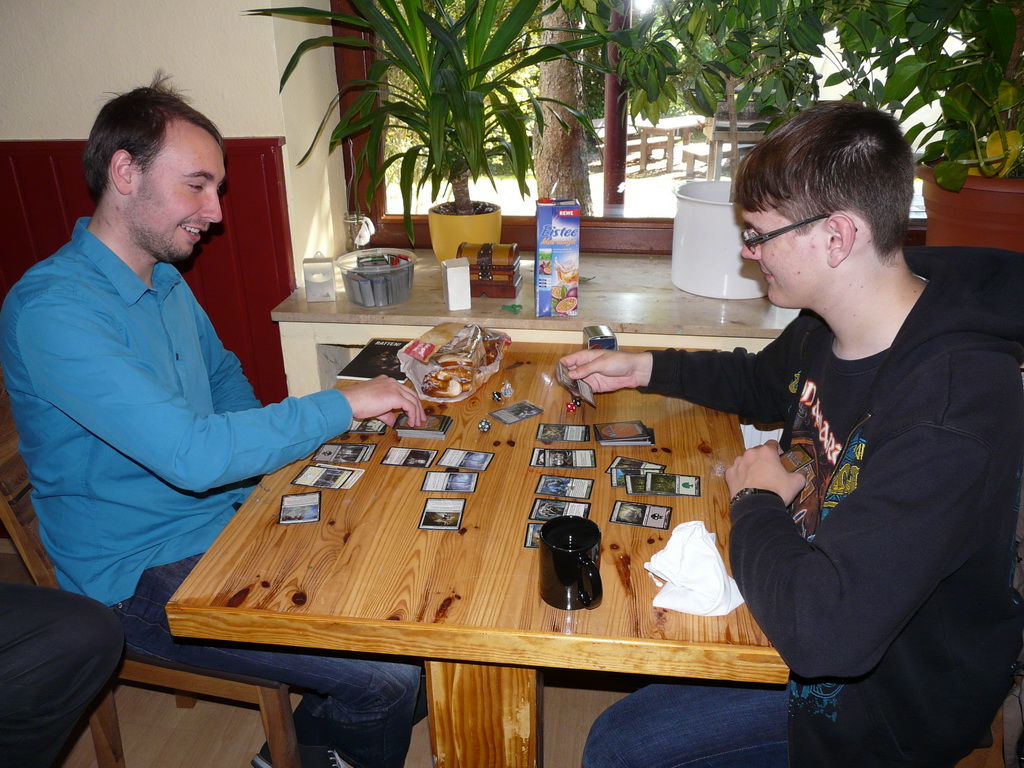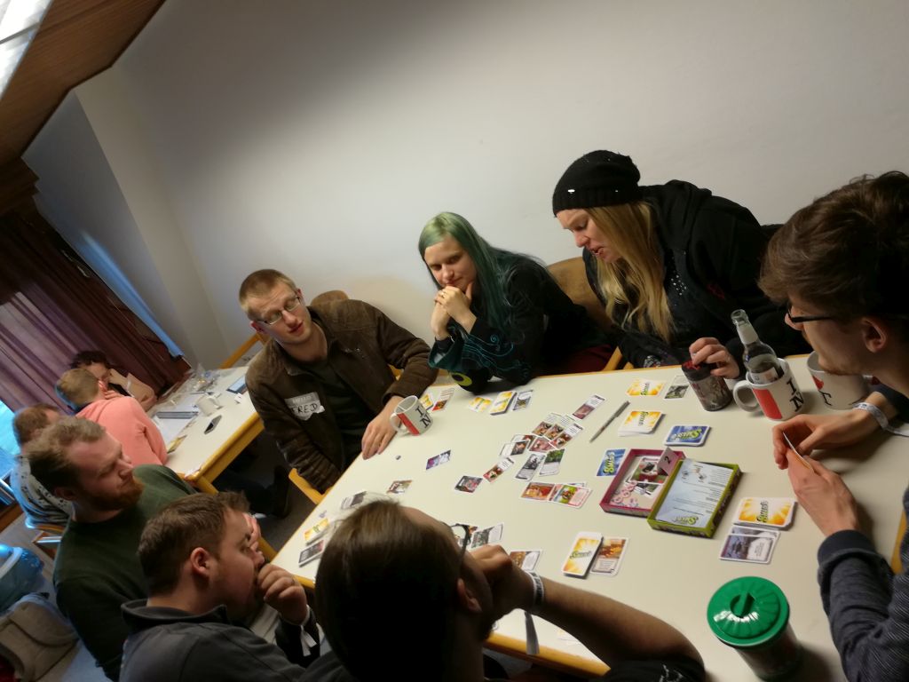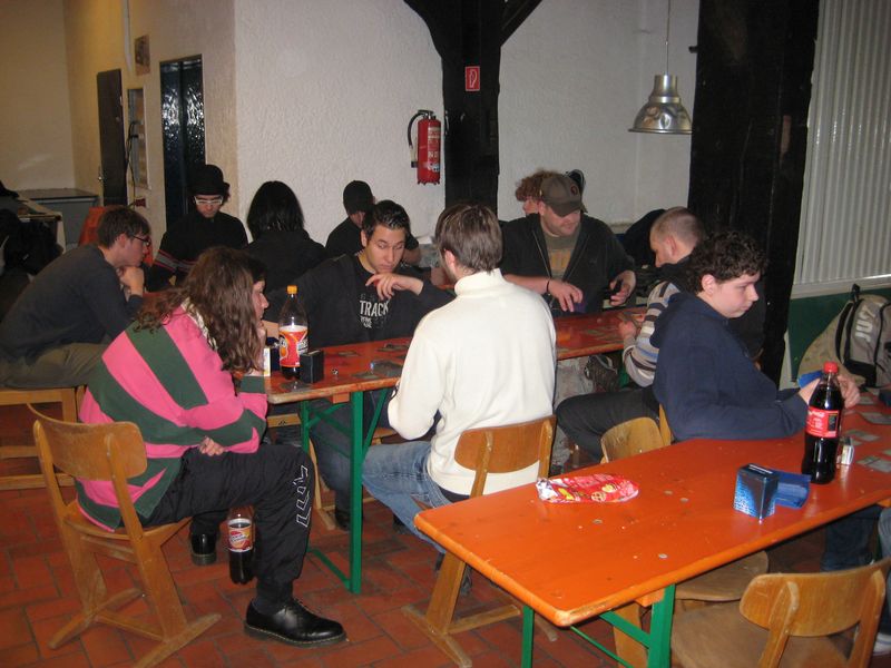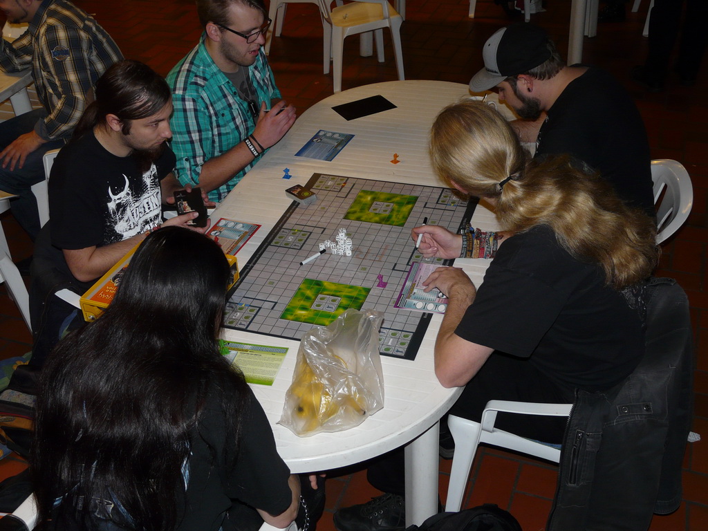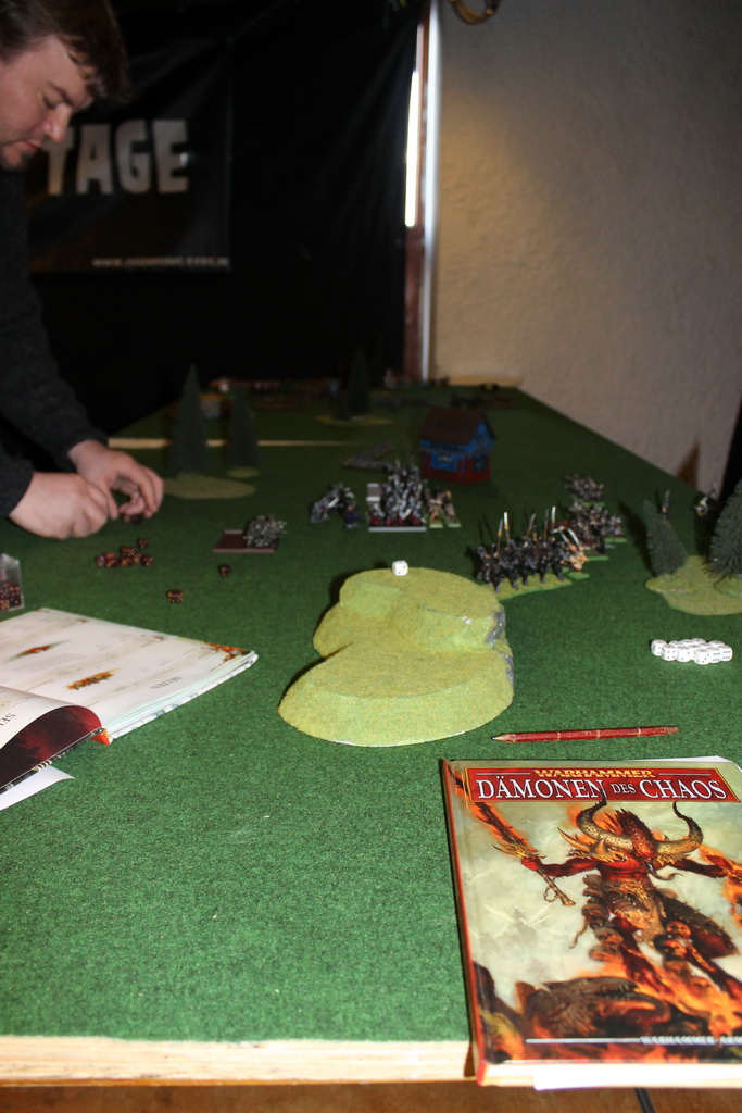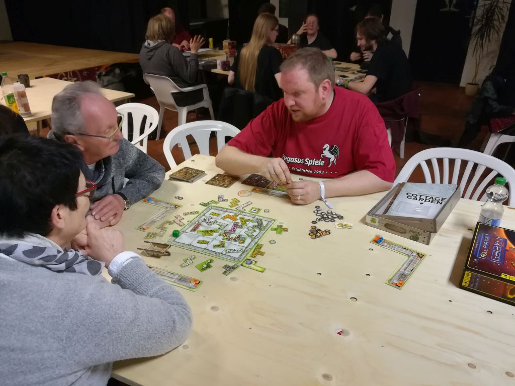 NT24: Bei frischem, wenn doch trockenem Wetter, öffneten sich die Pforten gegen 17:30 Uhr und der Run auf die Tassen im JD Style konnte beginnen. Mit Flatrate und Proviant gewappnet ging es auch schon an die Spieltische. Wer hingegen etwas Kultur genießen wollte, war in der Lesung mit Bernhard Hennen genau richtig. Als der Chilimeister zum Mitternachtsimbiss rief und auch der letzte eine Spielrunde oder bereits einen Platz im Schlafraum der neuen Kita gefunden hatte, ging der Freitag mit einem neuen Besucherrekord von 212 Gästen zu Ende. Am Samstag sollte es spannend werden, ob der Wegfall des Obergeschosses im Jugendhaus auf die Tischreserven auswirken sollte, doch dem war nicht so. Auch einem erneuten Wurststau konnte entgegengewirkt werden, trotz dessen es zu kurzen Wartezeiten beim Grillmeister kam. Mit der Wunschlesung von Bernhard Hennen und Tom Daut wurde auch der Samstag Nachmittag literarisch aufgewertet. Bei der Tombola am Abend konnte man gleich zu Beginn, oder doch am Ende, den verwirrten Gästen eine Besucherzahl von 310 präsentieren. Am Sonntag sollte, ausser beim Grillmeister nichts mehr anbrennen. Die Besucher die es bis dahin geschafft hatten gegen die Müdigkeit anzukämpfen nutzten nochmal ihre Flatrate und spielten bis zur letzten Minute. Mit 321 Gästen, ging die an der Besucherzahl gemessene zweit stärkste Märzveranstaltung zu Ende.