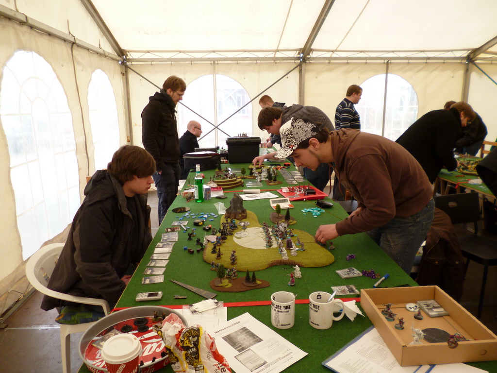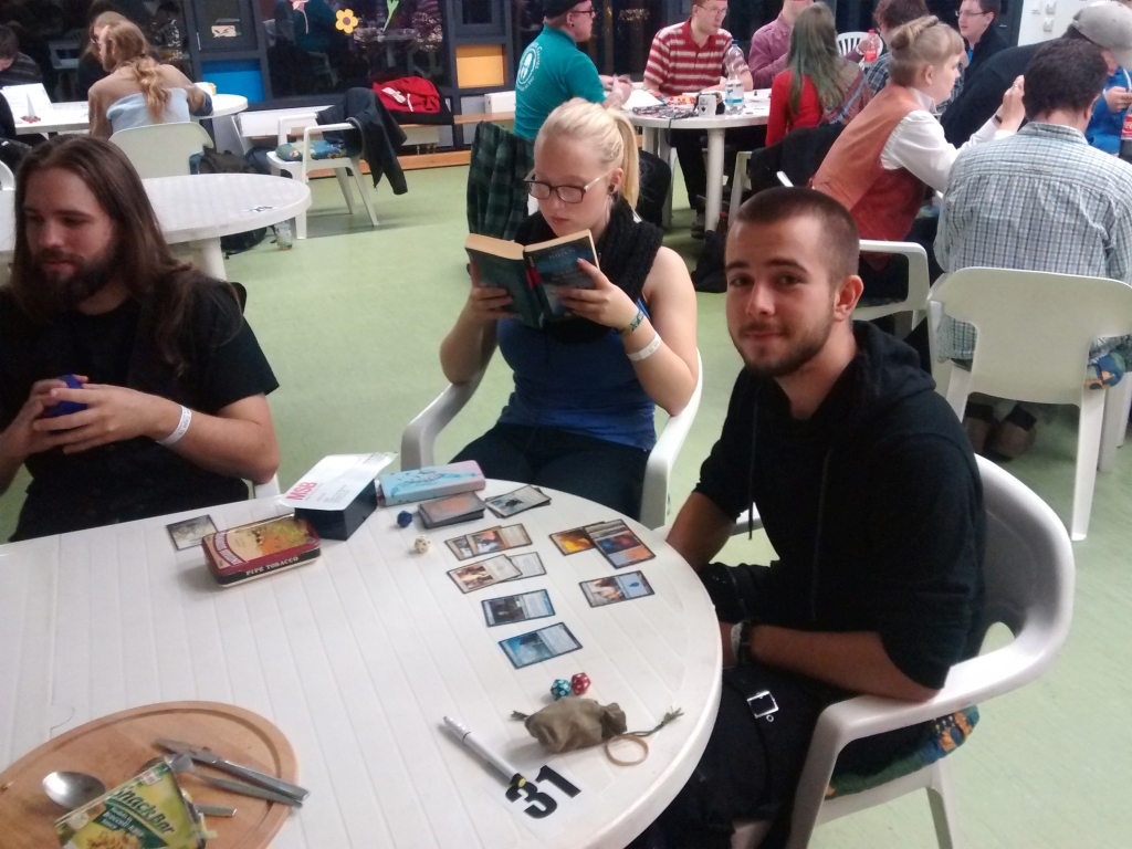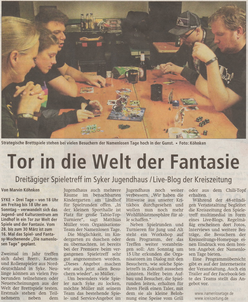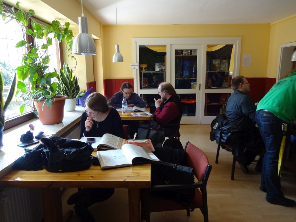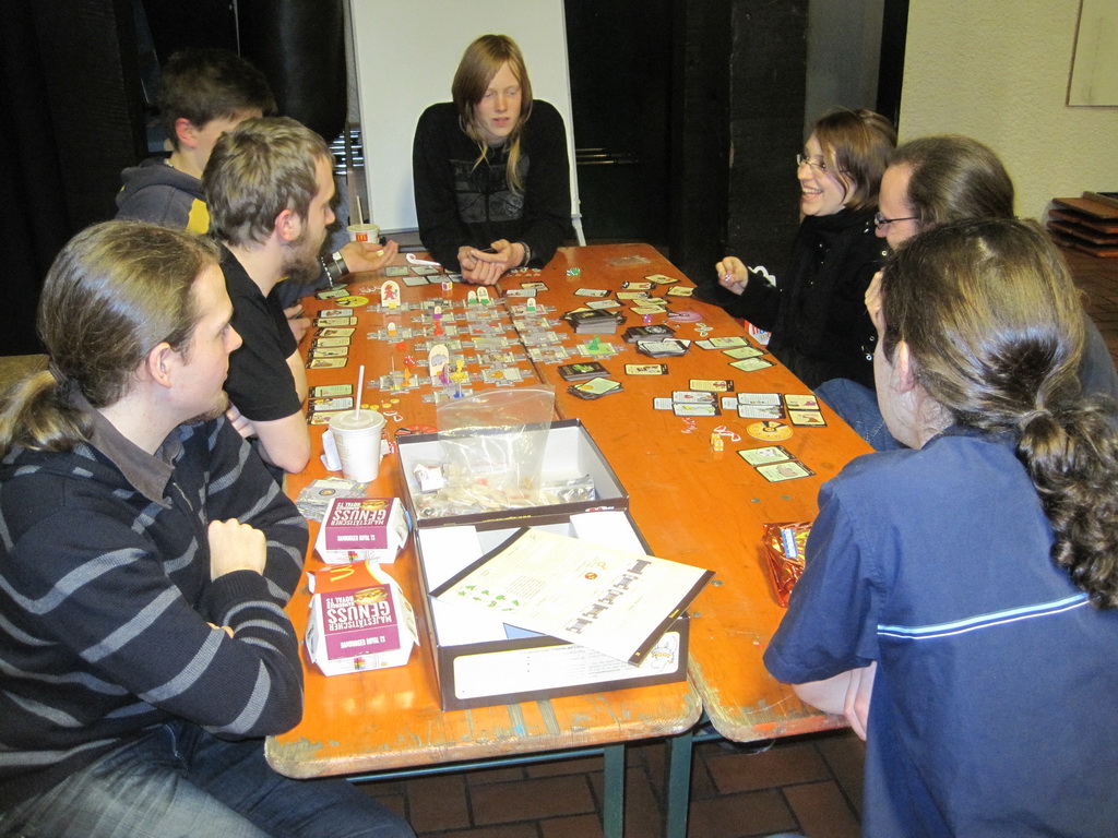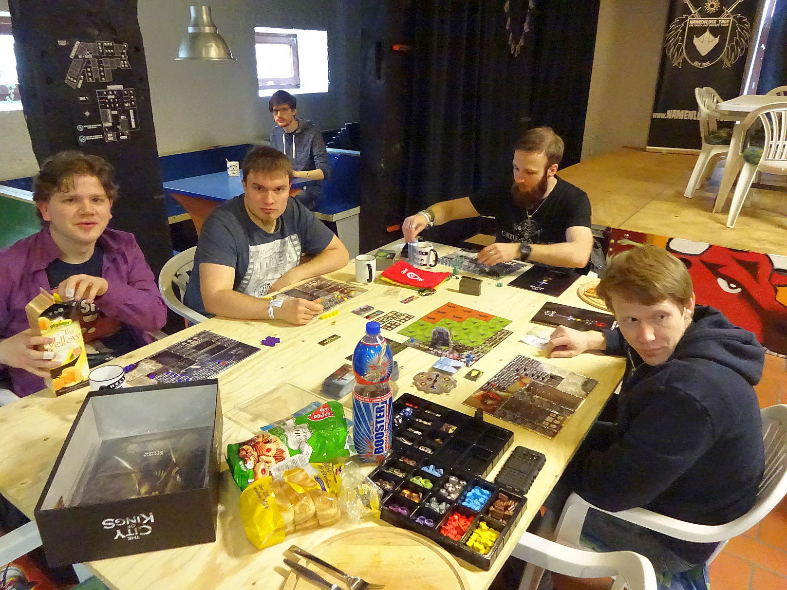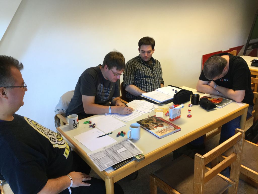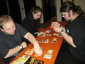 NT24: Bei frischem, wenn doch trockenem Wetter, öffneten sich die Pforten gegen 17:30 Uhr und der Run auf die Tassen im JD Style konnte beginnen. Mit Flatrate und Proviant gewappnet ging es auch schon an die Spieltische. Wer hingegen etwas Kultur genießen wollte, war in der Lesung mit Bernhard Hennen genau richtig. Als der Chilimeister zum Mitternachtsimbiss rief und auch der letzte eine Spielrunde oder bereits einen Platz im Schlafraum der neuen Kita gefunden hatte, ging der Freitag mit einem neuen Besucherrekord von 212 Gästen zu Ende. Am Samstag sollte es spannend werden, ob der Wegfall des Obergeschosses im Jugendhaus auf die Tischreserven auswirken sollte, doch dem war nicht so. Auch einem erneuten Wurststau konnte entgegengewirkt werden, trotz dessen es zu kurzen Wartezeiten beim Grillmeister kam. Mit der Wunschlesung von Bernhard Hennen und Tom Daut wurde auch der Samstag Nachmittag literarisch aufgewertet. Bei der Tombola am Abend konnte man gleich zu Beginn, oder doch am Ende, den verwirrten Gästen eine Besucherzahl von 310 präsentieren. Am Sonntag sollte, ausser beim Grillmeister nichts mehr anbrennen. Die Besucher die es bis dahin geschafft hatten gegen die Müdigkeit anzukämpfen nutzten nochmal ihre Flatrate und spielten bis zur letzten Minute. Mit 321 Gästen, ging die an der Besucherzahl gemessene zweit stärkste Märzveranstaltung zu Ende.