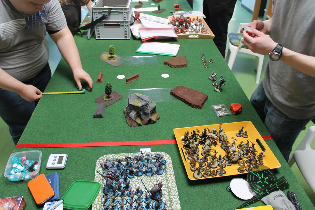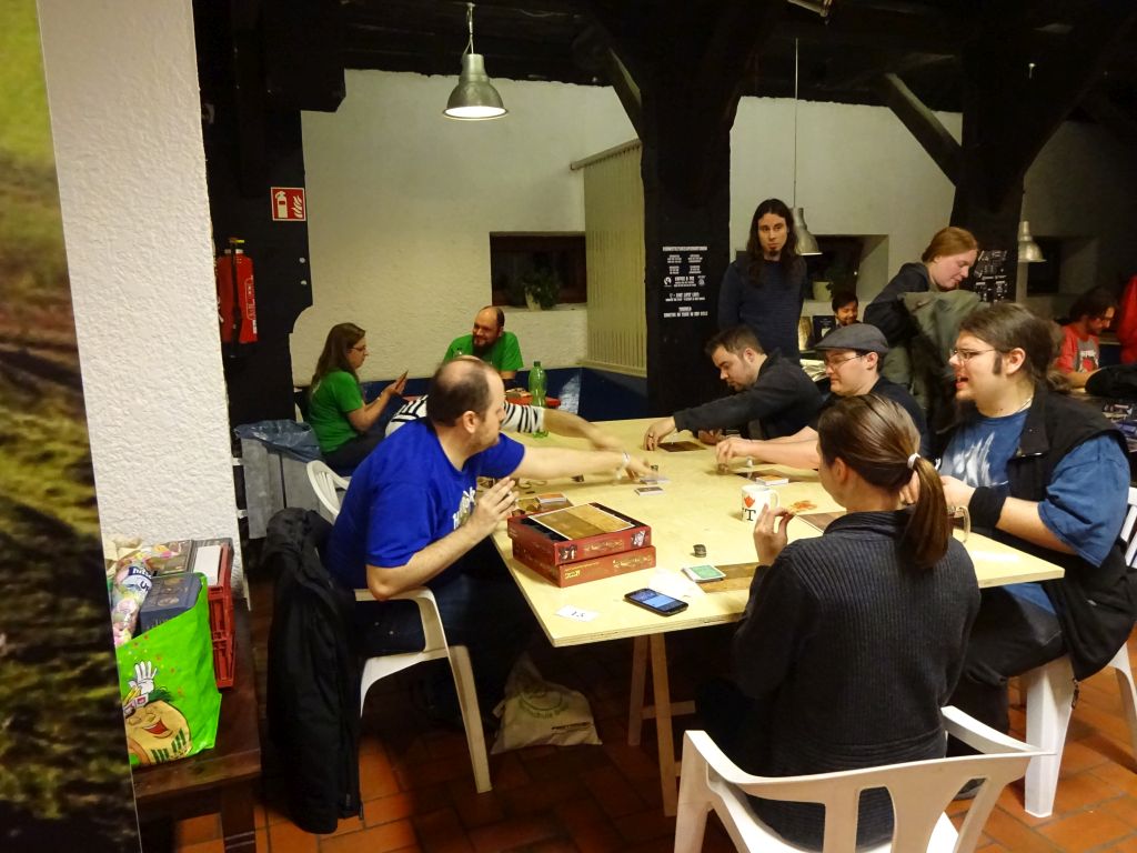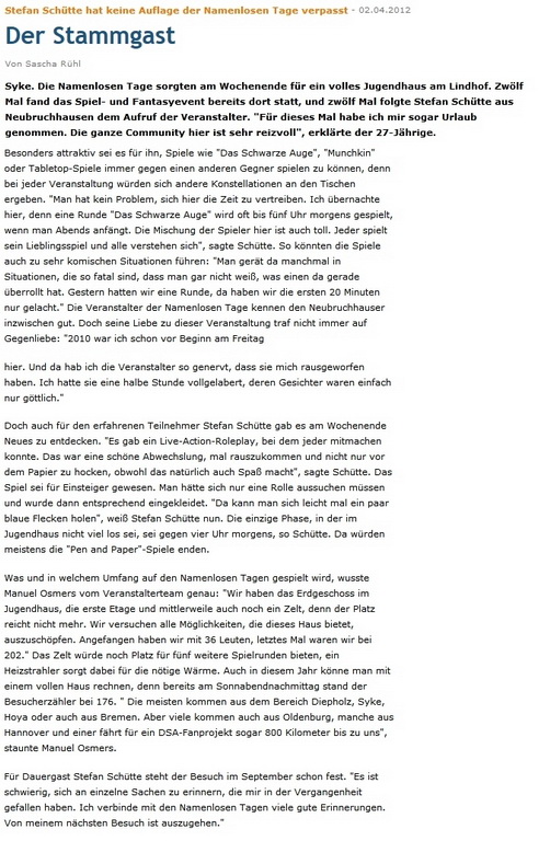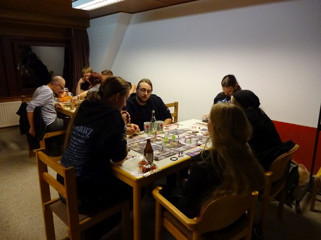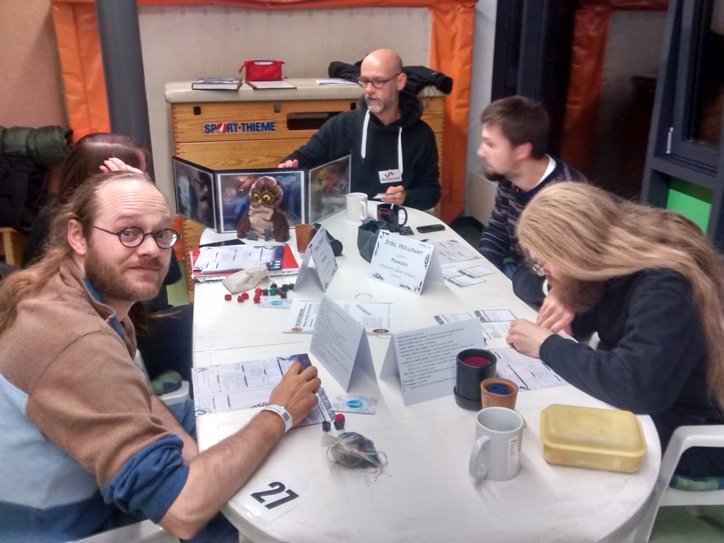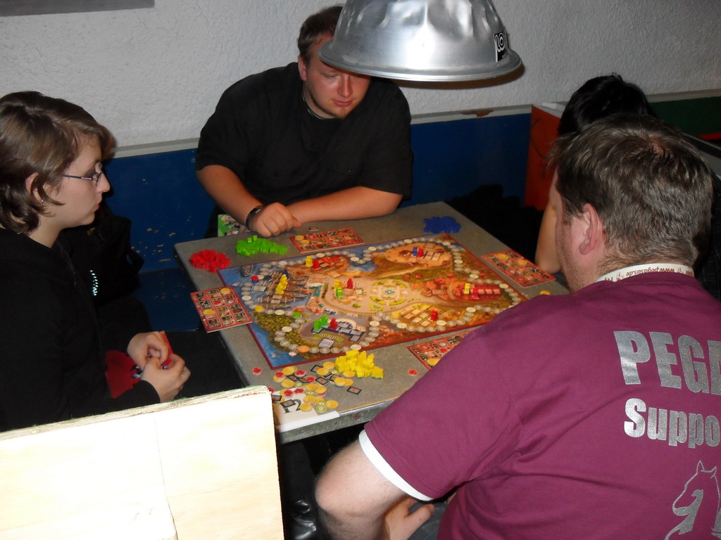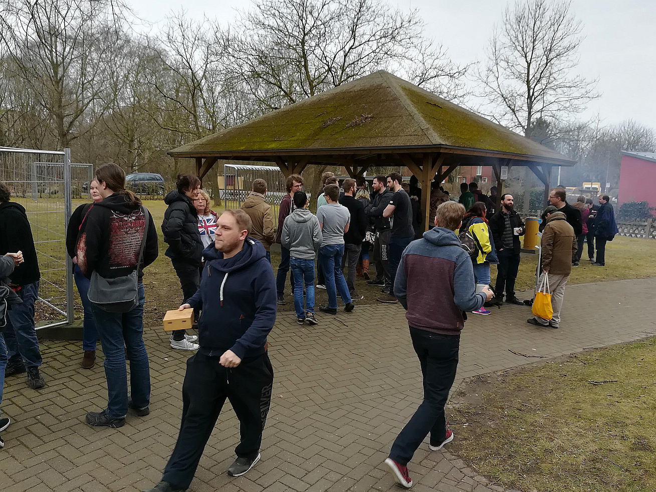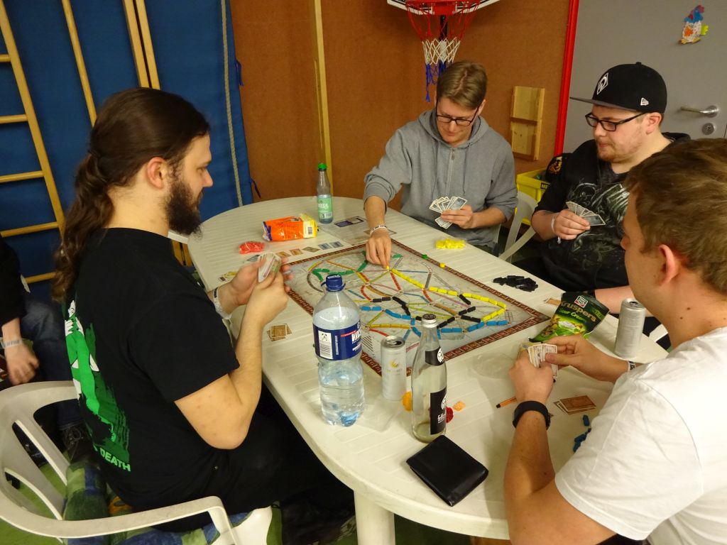 NT24: Bei frischem, wenn doch trockenem Wetter, öffneten sich die Pforten gegen 17:30 Uhr und der Run auf die Tassen im JD Style konnte beginnen. Mit Flatrate und Proviant gewappnet ging es auch schon an die Spieltische. Wer hingegen etwas Kultur genießen wollte, war in der Lesung mit Bernhard Hennen genau richtig. Als der Chilimeister zum Mitternachtsimbiss rief und auch der letzte eine Spielrunde oder bereits einen Platz im Schlafraum der neuen Kita gefunden hatte, ging der Freitag mit einem neuen Besucherrekord von 212 Gästen zu Ende. Am Samstag sollte es spannend werden, ob der Wegfall des Obergeschosses im Jugendhaus auf die Tischreserven auswirken sollte, doch dem war nicht so. Auch einem erneuten Wurststau konnte entgegengewirkt werden, trotz dessen es zu kurzen Wartezeiten beim Grillmeister kam. Mit der Wunschlesung von Bernhard Hennen und Tom Daut wurde auch der Samstag Nachmittag literarisch aufgewertet. Bei der Tombola am Abend konnte man gleich zu Beginn, oder doch am Ende, den verwirrten Gästen eine Besucherzahl von 310 präsentieren. Am Sonntag sollte, ausser beim Grillmeister nichts mehr anbrennen. Die Besucher die es bis dahin geschafft hatten gegen die Müdigkeit anzukämpfen nutzten nochmal ihre Flatrate und spielten bis zur letzten Minute. Mit 321 Gästen, ging die an der Besucherzahl gemessene zweit stärkste Märzveranstaltung zu Ende.