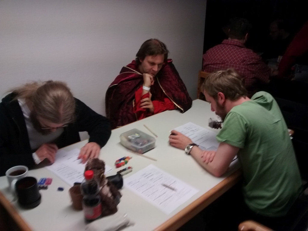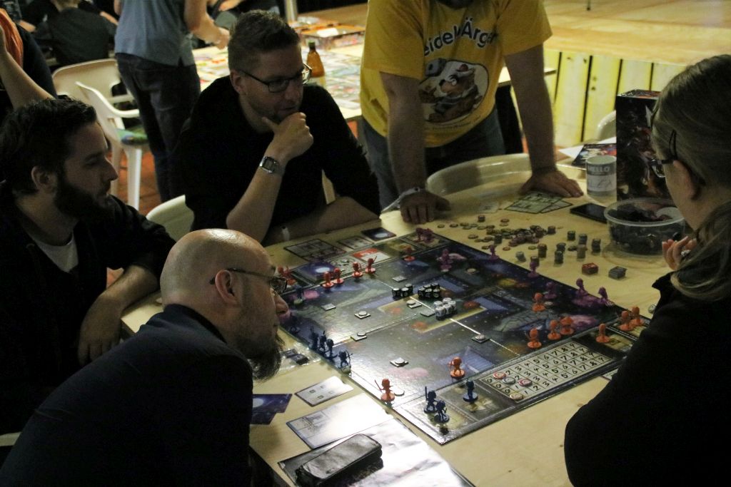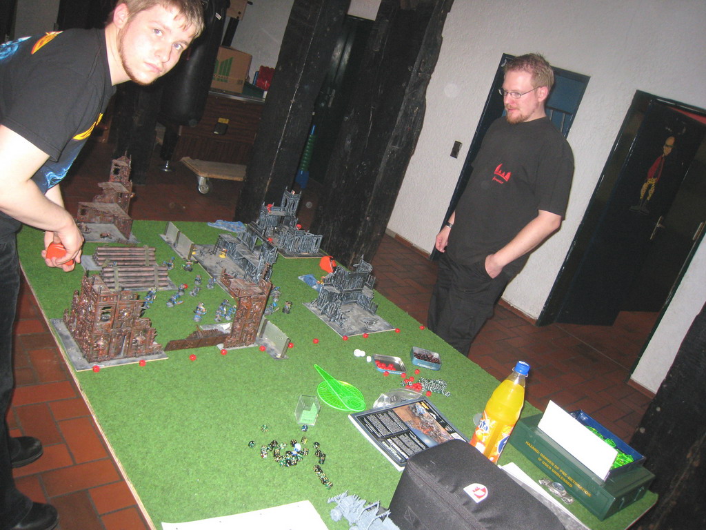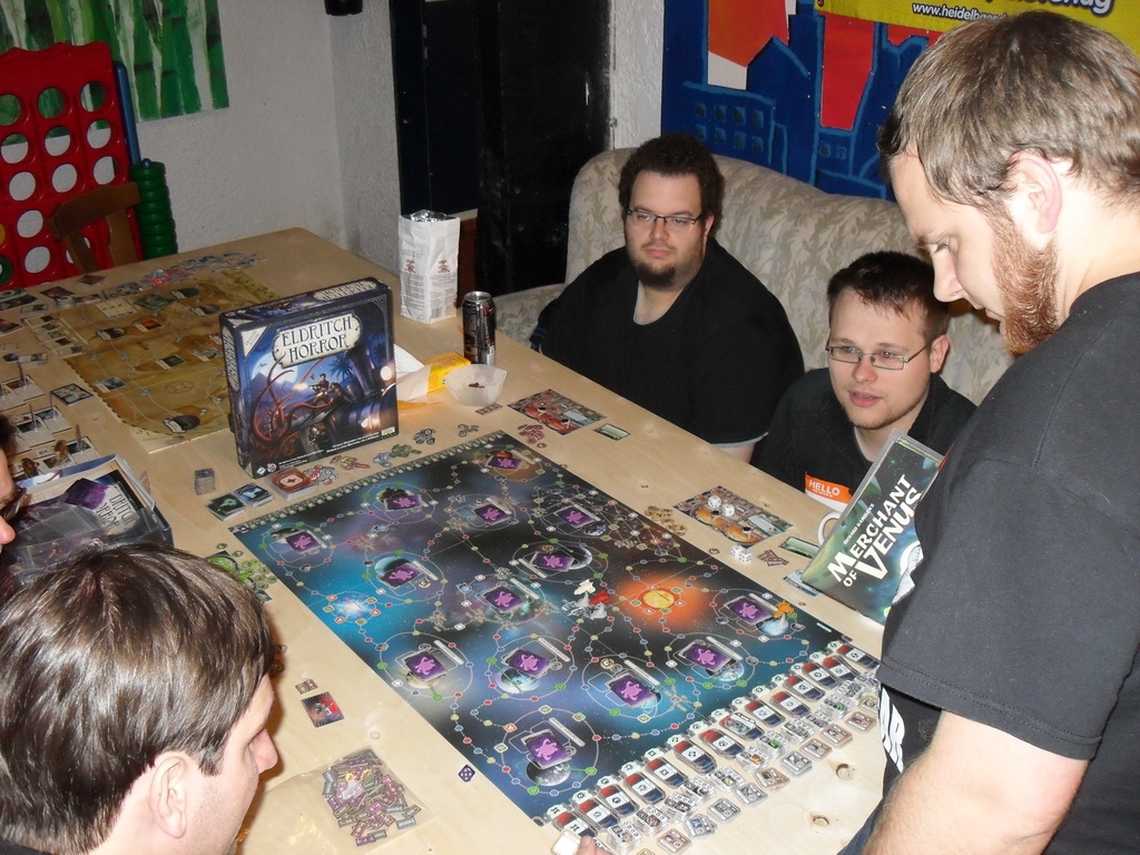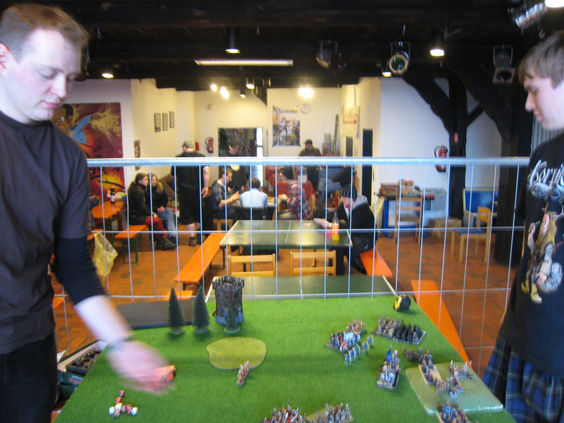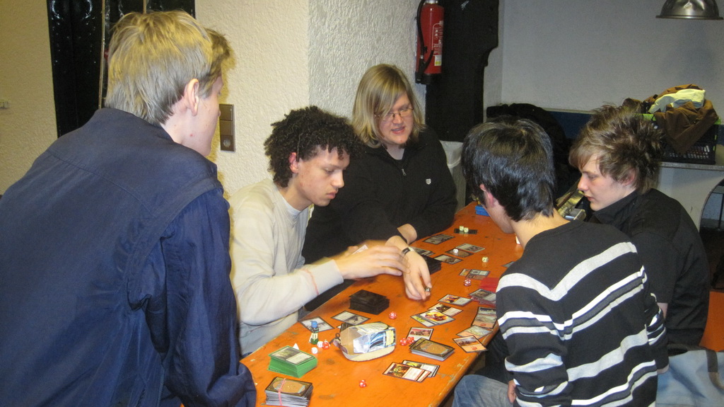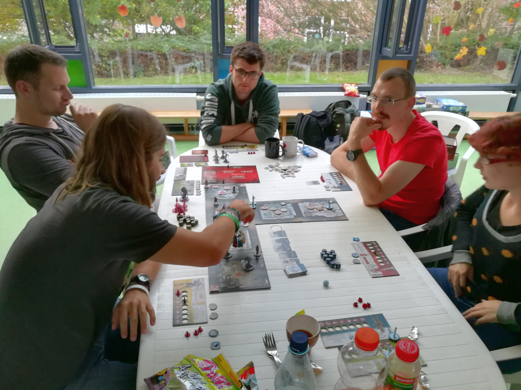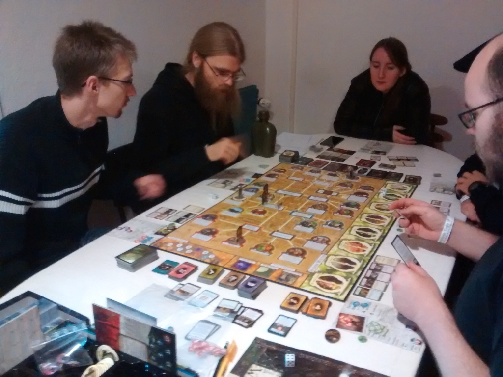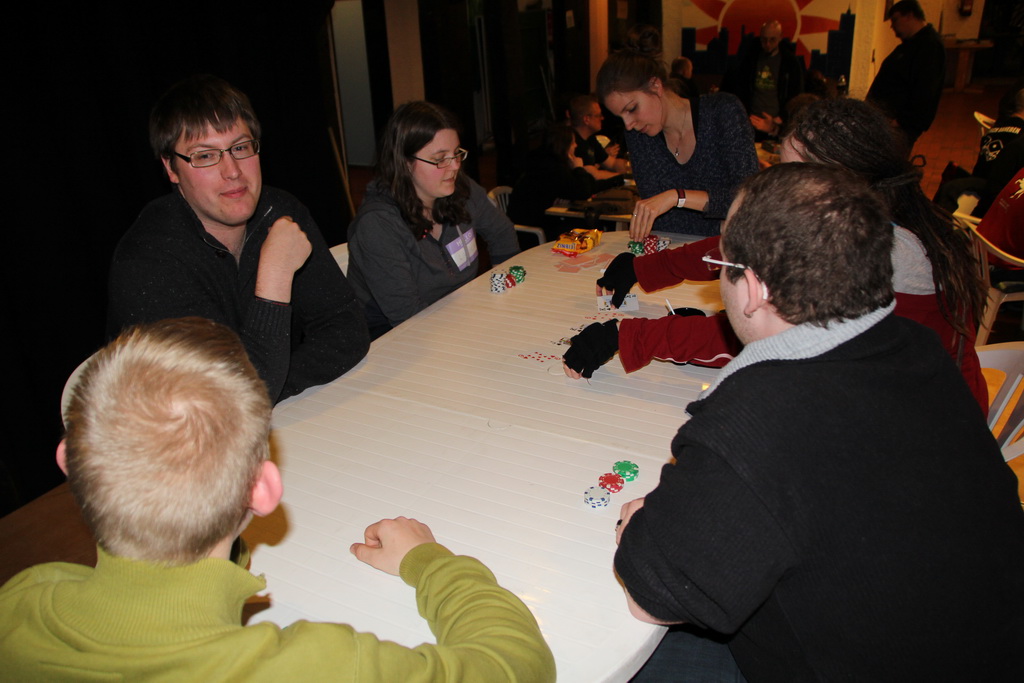 NT24: Bei frischem, wenn doch trockenem Wetter, öffneten sich die Pforten gegen 17:30 Uhr und der Run auf die Tassen im JD Style konnte beginnen. Mit Flatrate und Proviant gewappnet ging es auch schon an die Spieltische. Wer hingegen etwas Kultur genießen wollte, war in der Lesung mit Bernhard Hennen genau richtig. Als der Chilimeister zum Mitternachtsimbiss rief und auch der letzte eine Spielrunde oder bereits einen Platz im Schlafraum der neuen Kita gefunden hatte, ging der Freitag mit einem neuen Besucherrekord von 212 Gästen zu Ende. Am Samstag sollte es spannend werden, ob der Wegfall des Obergeschosses im Jugendhaus auf die Tischreserven auswirken sollte, doch dem war nicht so. Auch einem erneuten Wurststau konnte entgegengewirkt werden, trotz dessen es zu kurzen Wartezeiten beim Grillmeister kam. Mit der Wunschlesung von Bernhard Hennen und Tom Daut wurde auch der Samstag Nachmittag literarisch aufgewertet. Bei der Tombola am Abend konnte man gleich zu Beginn, oder doch am Ende, den verwirrten Gästen eine Besucherzahl von 310 präsentieren. Am Sonntag sollte, ausser beim Grillmeister nichts mehr anbrennen. Die Besucher die es bis dahin geschafft hatten gegen die Müdigkeit anzukämpfen nutzten nochmal ihre Flatrate und spielten bis zur letzten Minute. Mit 321 Gästen, ging die an der Besucherzahl gemessene zweit stärkste Märzveranstaltung zu Ende.