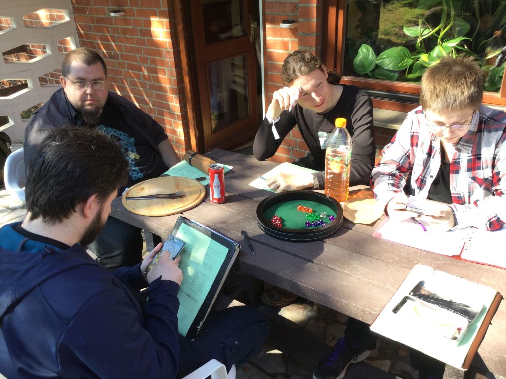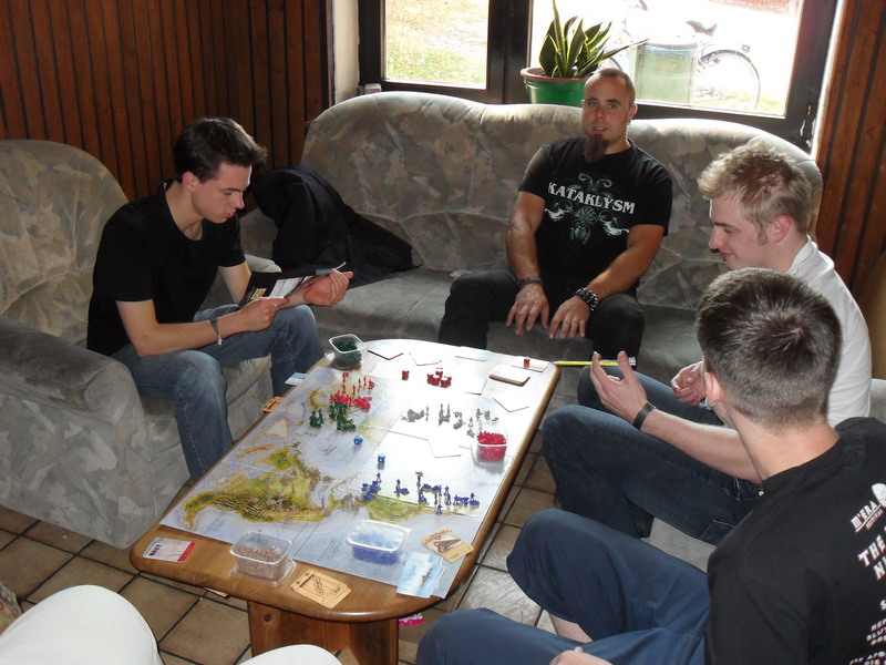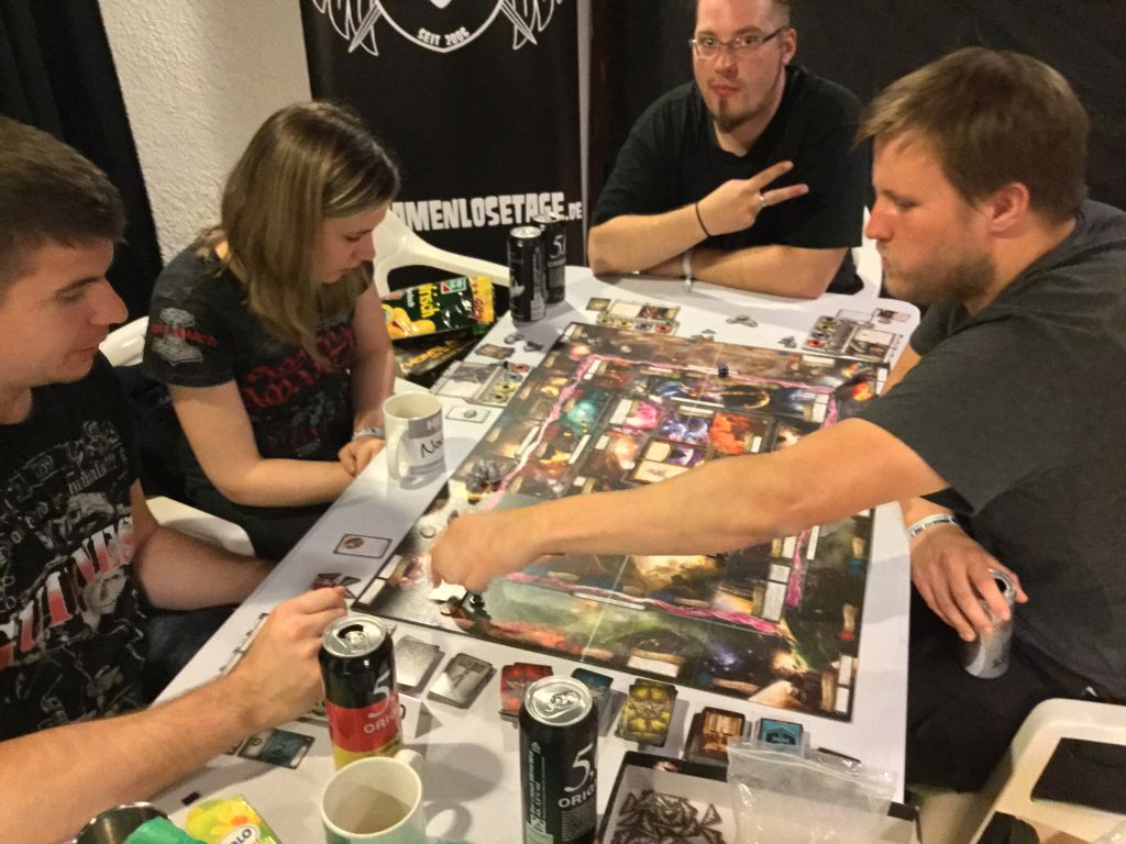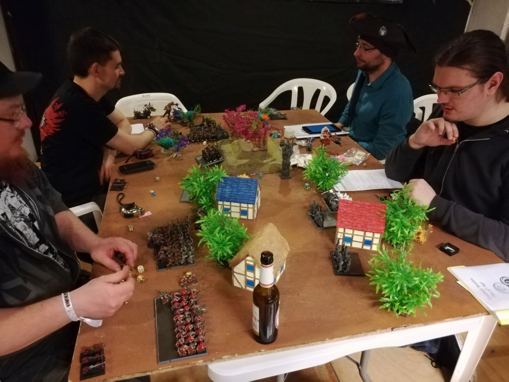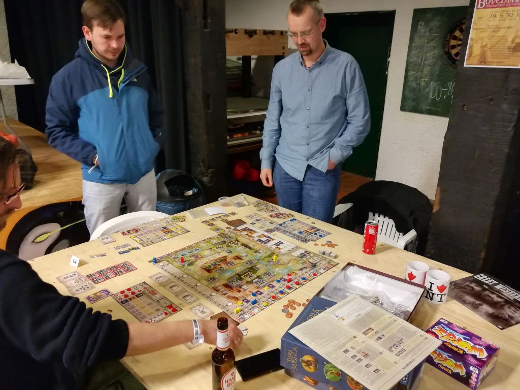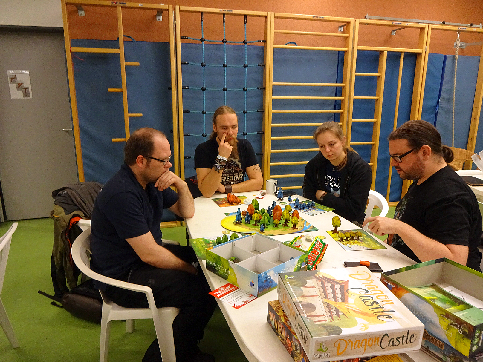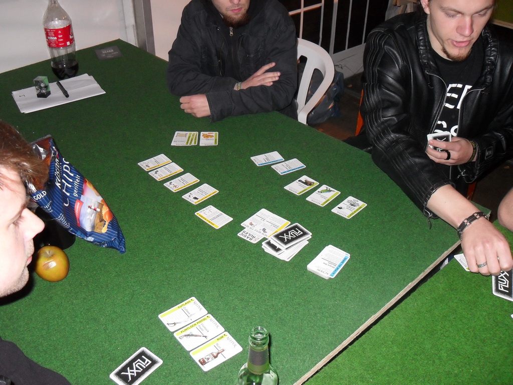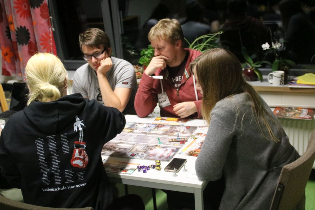 NT24: Bei frischem, wenn doch trockenem Wetter, öffneten sich die Pforten gegen 17:30 Uhr und der Run auf die Tassen im JD Style konnte beginnen. Mit Flatrate und Proviant gewappnet ging es auch schon an die Spieltische. Wer hingegen etwas Kultur genießen wollte, war in der Lesung mit Bernhard Hennen genau richtig. Als der Chilimeister zum Mitternachtsimbiss rief und auch der letzte eine Spielrunde oder bereits einen Platz im Schlafraum der neuen Kita gefunden hatte, ging der Freitag mit einem neuen Besucherrekord von 212 Gästen zu Ende. Am Samstag sollte es spannend werden, ob der Wegfall des Obergeschosses im Jugendhaus auf die Tischreserven auswirken sollte, doch dem war nicht so. Auch einem erneuten Wurststau konnte entgegengewirkt werden, trotz dessen es zu kurzen Wartezeiten beim Grillmeister kam. Mit der Wunschlesung von Bernhard Hennen und Tom Daut wurde auch der Samstag Nachmittag literarisch aufgewertet. Bei der Tombola am Abend konnte man gleich zu Beginn, oder doch am Ende, den verwirrten Gästen eine Besucherzahl von 310 präsentieren. Am Sonntag sollte, ausser beim Grillmeister nichts mehr anbrennen. Die Besucher die es bis dahin geschafft hatten gegen die Müdigkeit anzukämpfen nutzten nochmal ihre Flatrate und spielten bis zur letzten Minute. Mit 321 Gästen, ging die an der Besucherzahl gemessene zweit stärkste Märzveranstaltung zu Ende.