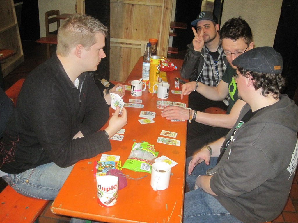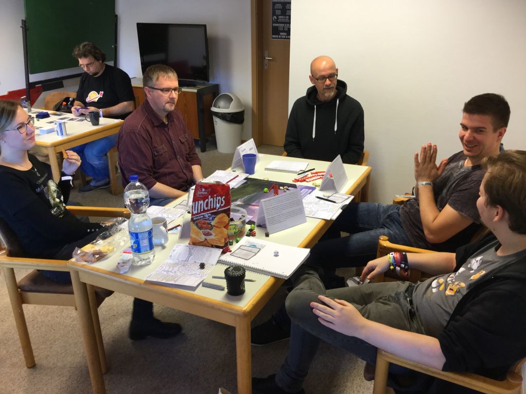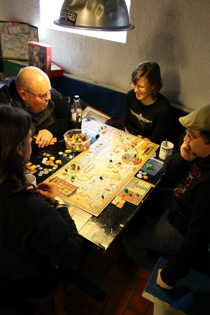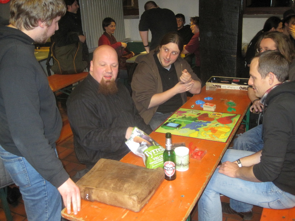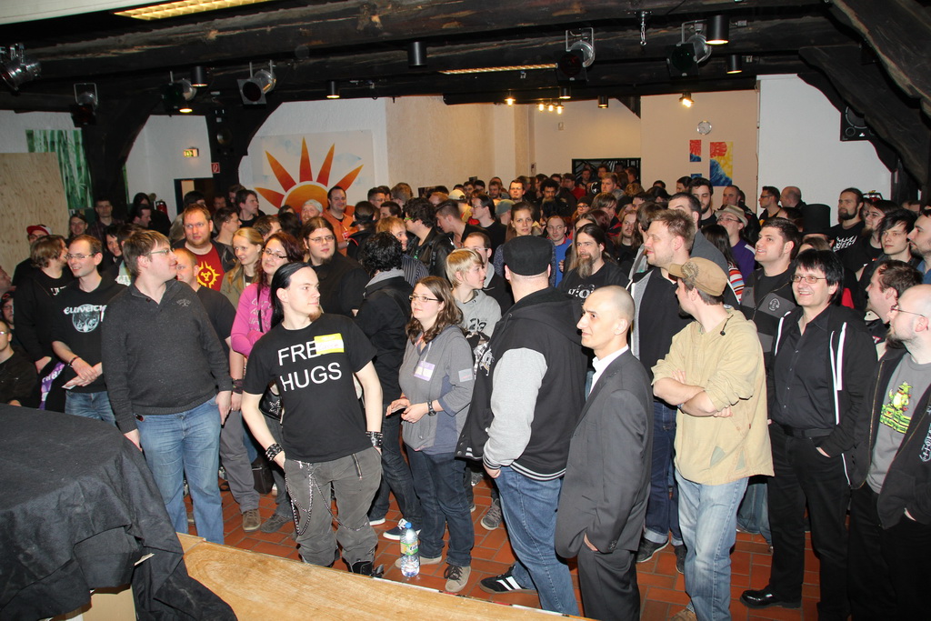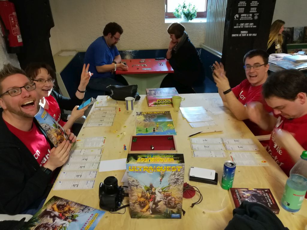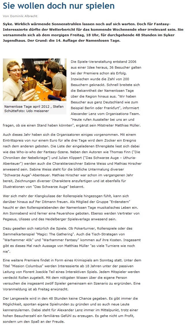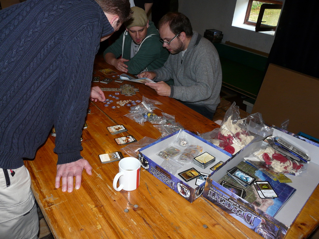 NT24: Bei frischem, wenn doch trockenem Wetter, öffneten sich die Pforten gegen 17:30 Uhr und der Run auf die Tassen im JD Style konnte beginnen. Mit Flatrate und Proviant gewappnet ging es auch schon an die Spieltische. Wer hingegen etwas Kultur genießen wollte, war in der Lesung mit Bernhard Hennen genau richtig. Als der Chilimeister zum Mitternachtsimbiss rief und auch der letzte eine Spielrunde oder bereits einen Platz im Schlafraum der neuen Kita gefunden hatte, ging der Freitag mit einem neuen Besucherrekord von 212 Gästen zu Ende. Am Samstag sollte es spannend werden, ob der Wegfall des Obergeschosses im Jugendhaus auf die Tischreserven auswirken sollte, doch dem war nicht so. Auch einem erneuten Wurststau konnte entgegengewirkt werden, trotz dessen es zu kurzen Wartezeiten beim Grillmeister kam. Mit der Wunschlesung von Bernhard Hennen und Tom Daut wurde auch der Samstag Nachmittag literarisch aufgewertet. Bei der Tombola am Abend konnte man gleich zu Beginn, oder doch am Ende, den verwirrten Gästen eine Besucherzahl von 310 präsentieren. Am Sonntag sollte, ausser beim Grillmeister nichts mehr anbrennen. Die Besucher die es bis dahin geschafft hatten gegen die Müdigkeit anzukämpfen nutzten nochmal ihre Flatrate und spielten bis zur letzten Minute. Mit 321 Gästen, ging die an der Besucherzahl gemessene zweit stärkste Märzveranstaltung zu Ende.