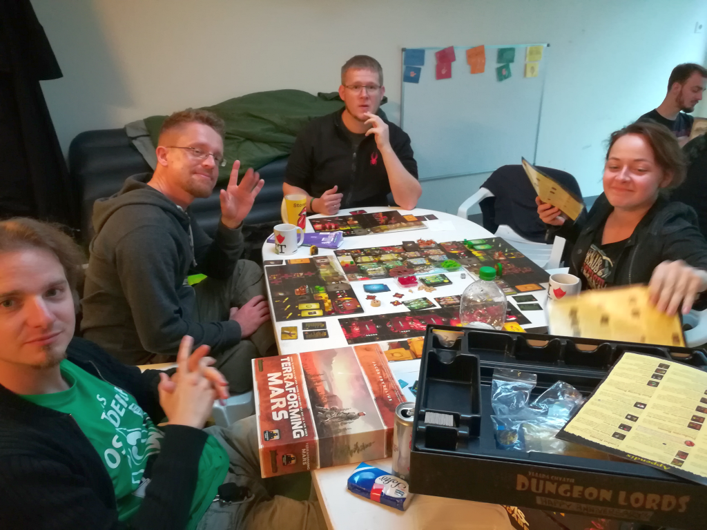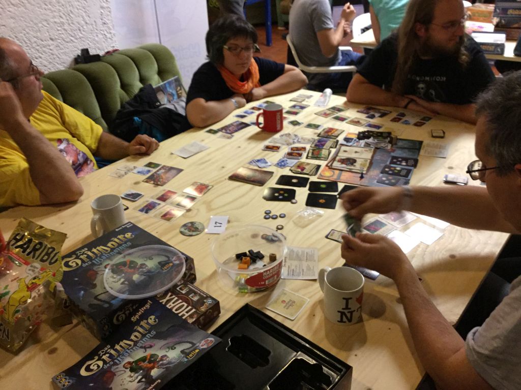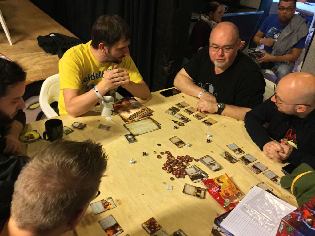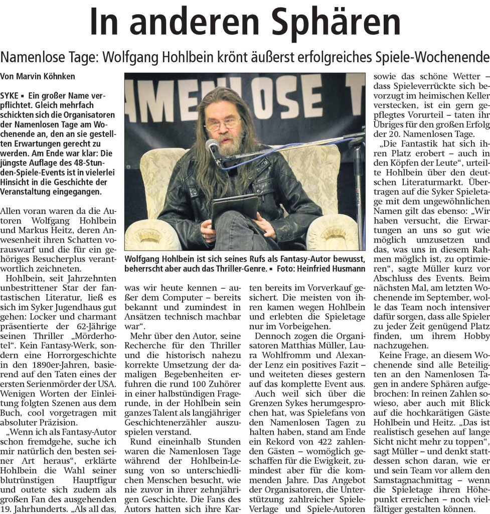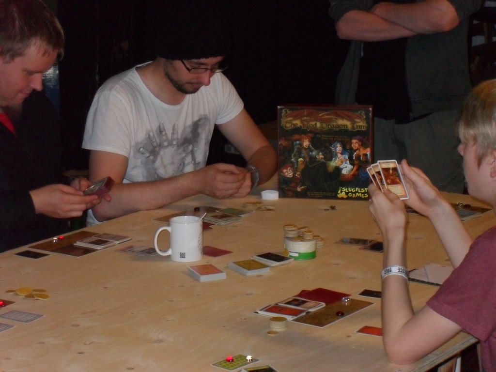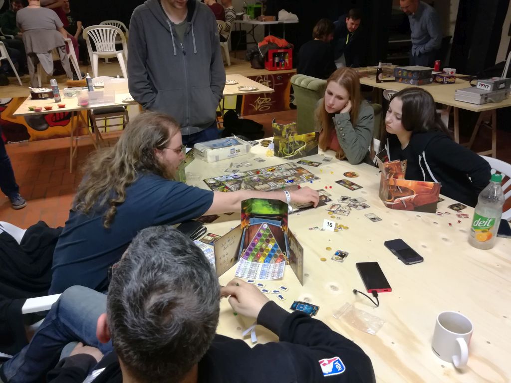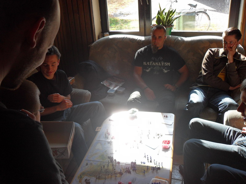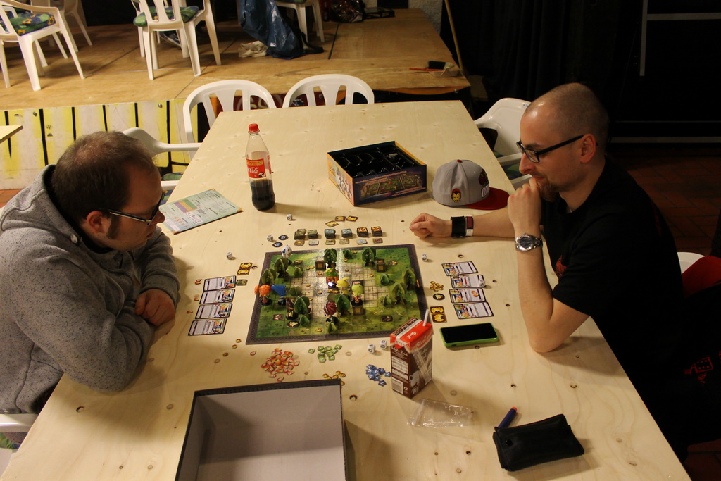 NT24: Bei frischem, wenn doch trockenem Wetter, öffneten sich die Pforten gegen 17:30 Uhr und der Run auf die Tassen im JD Style konnte beginnen. Mit Flatrate und Proviant gewappnet ging es auch schon an die Spieltische. Wer hingegen etwas Kultur genießen wollte, war in der Lesung mit Bernhard Hennen genau richtig. Als der Chilimeister zum Mitternachtsimbiss rief und auch der letzte eine Spielrunde oder bereits einen Platz im Schlafraum der neuen Kita gefunden hatte, ging der Freitag mit einem neuen Besucherrekord von 212 Gästen zu Ende. Am Samstag sollte es spannend werden, ob der Wegfall des Obergeschosses im Jugendhaus auf die Tischreserven auswirken sollte, doch dem war nicht so. Auch einem erneuten Wurststau konnte entgegengewirkt werden, trotz dessen es zu kurzen Wartezeiten beim Grillmeister kam. Mit der Wunschlesung von Bernhard Hennen und Tom Daut wurde auch der Samstag Nachmittag literarisch aufgewertet. Bei der Tombola am Abend konnte man gleich zu Beginn, oder doch am Ende, den verwirrten Gästen eine Besucherzahl von 310 präsentieren. Am Sonntag sollte, ausser beim Grillmeister nichts mehr anbrennen. Die Besucher die es bis dahin geschafft hatten gegen die Müdigkeit anzukämpfen nutzten nochmal ihre Flatrate und spielten bis zur letzten Minute. Mit 321 Gästen, ging die an der Besucherzahl gemessene zweit stärkste Märzveranstaltung zu Ende.