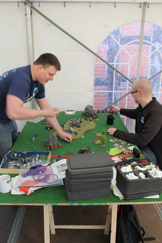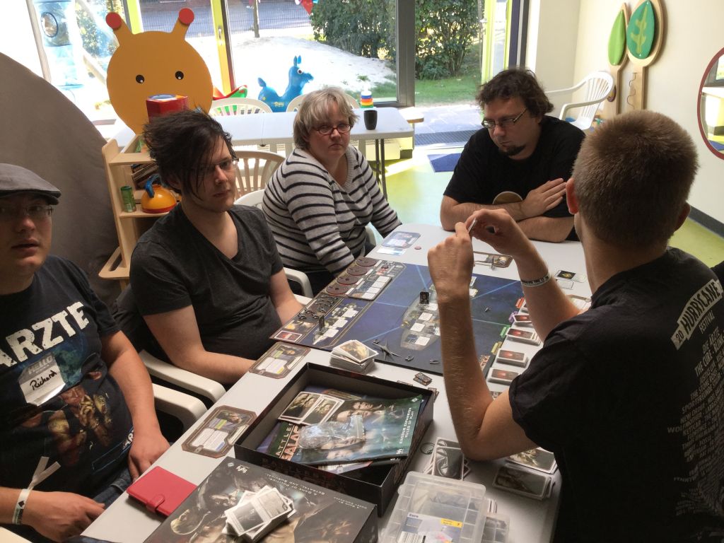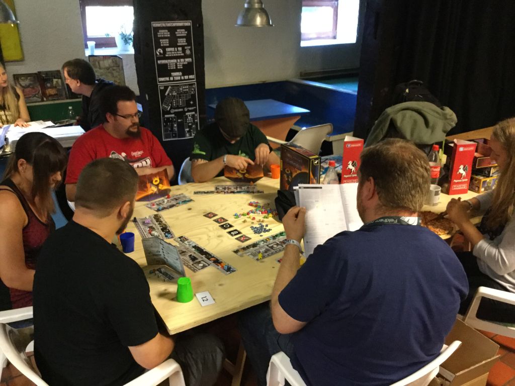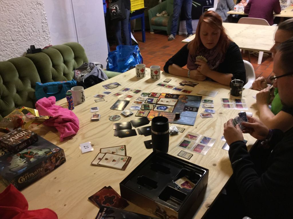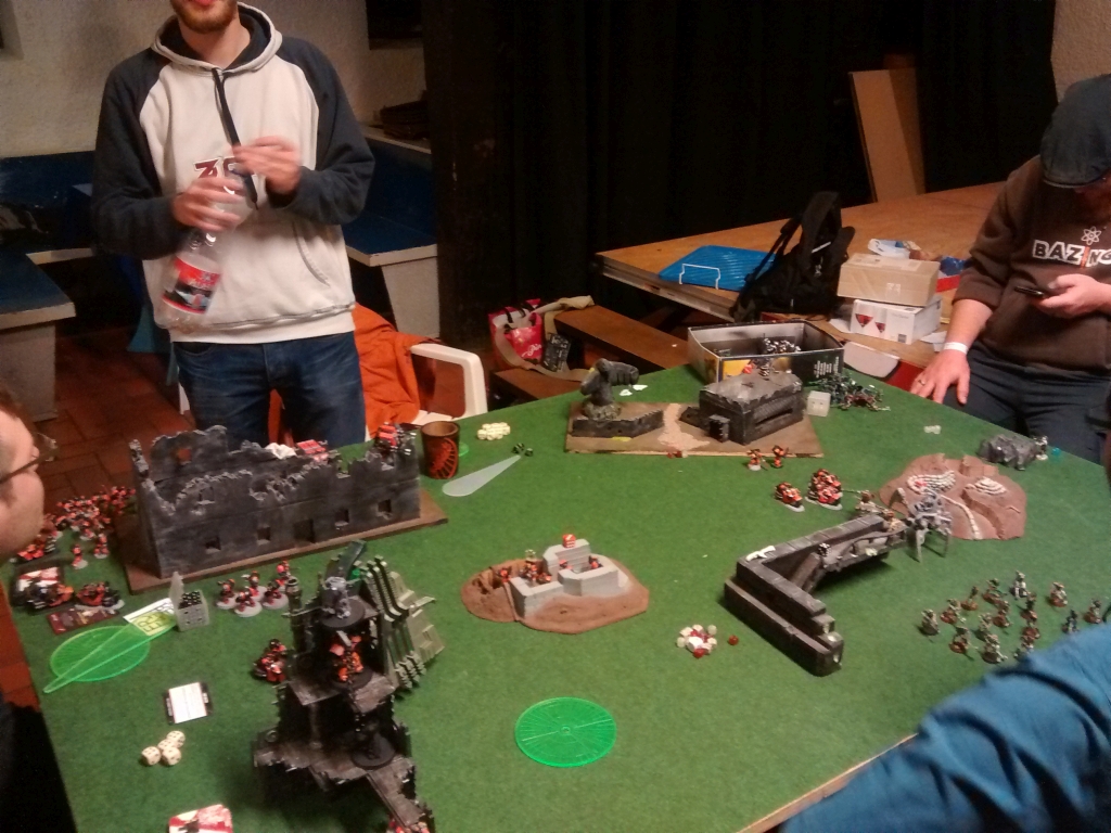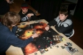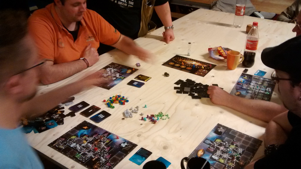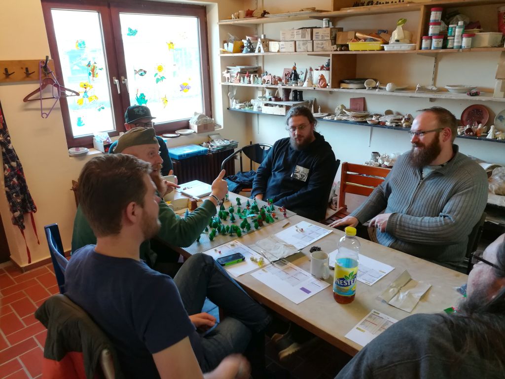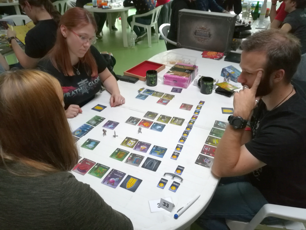 NT24: Bei frischem, wenn doch trockenem Wetter, öffneten sich die Pforten gegen 17:30 Uhr und der Run auf die Tassen im JD Style konnte beginnen. Mit Flatrate und Proviant gewappnet ging es auch schon an die Spieltische. Wer hingegen etwas Kultur genießen wollte, war in der Lesung mit Bernhard Hennen genau richtig. Als der Chilimeister zum Mitternachtsimbiss rief und auch der letzte eine Spielrunde oder bereits einen Platz im Schlafraum der neuen Kita gefunden hatte, ging der Freitag mit einem neuen Besucherrekord von 212 Gästen zu Ende. Am Samstag sollte es spannend werden, ob der Wegfall des Obergeschosses im Jugendhaus auf die Tischreserven auswirken sollte, doch dem war nicht so. Auch einem erneuten Wurststau konnte entgegengewirkt werden, trotz dessen es zu kurzen Wartezeiten beim Grillmeister kam. Mit der Wunschlesung von Bernhard Hennen und Tom Daut wurde auch der Samstag Nachmittag literarisch aufgewertet. Bei der Tombola am Abend konnte man gleich zu Beginn, oder doch am Ende, den verwirrten Gästen eine Besucherzahl von 310 präsentieren. Am Sonntag sollte, ausser beim Grillmeister nichts mehr anbrennen. Die Besucher die es bis dahin geschafft hatten gegen die Müdigkeit anzukämpfen nutzten nochmal ihre Flatrate und spielten bis zur letzten Minute. Mit 321 Gästen, ging die an der Besucherzahl gemessene zweit stärkste Märzveranstaltung zu Ende.