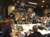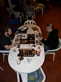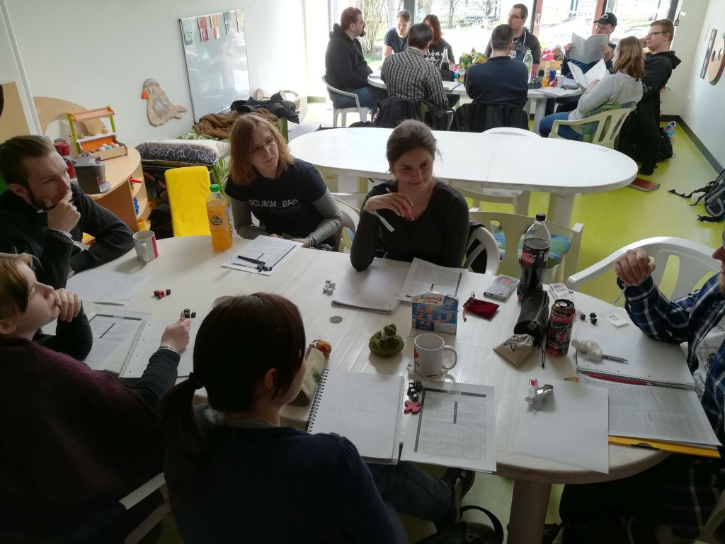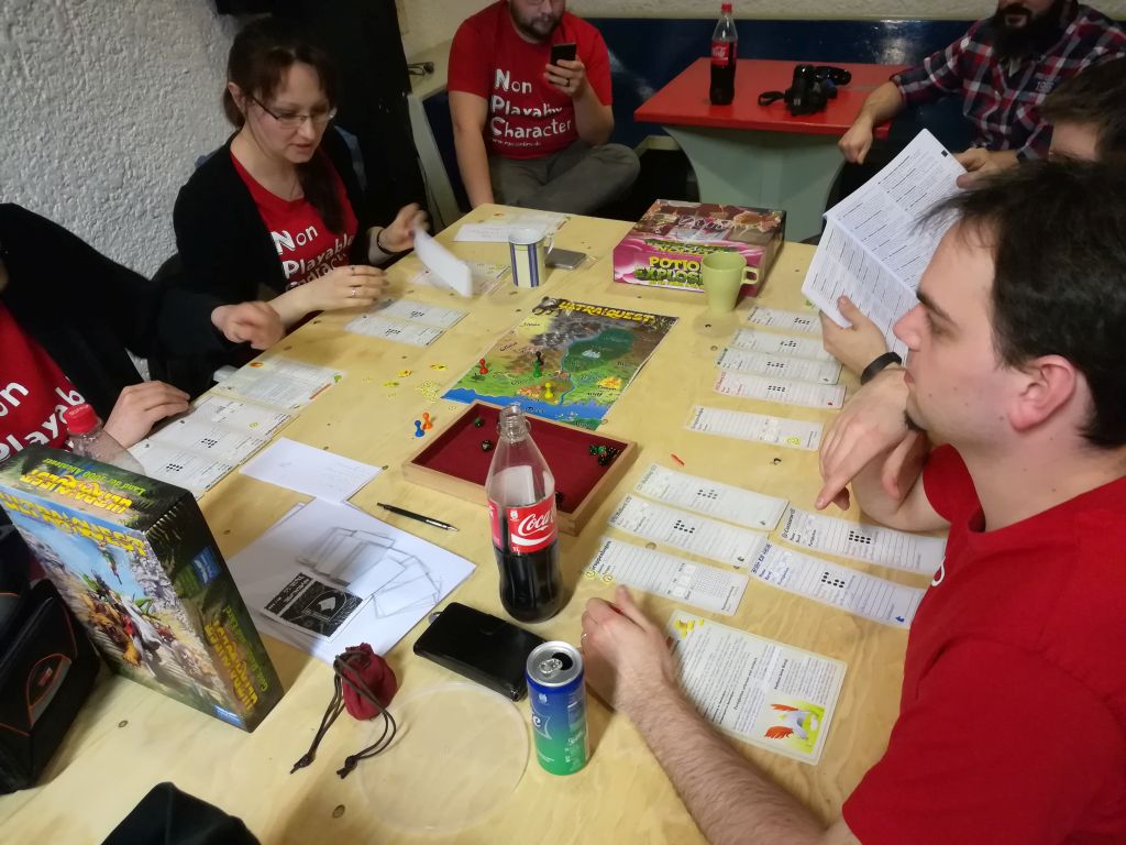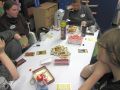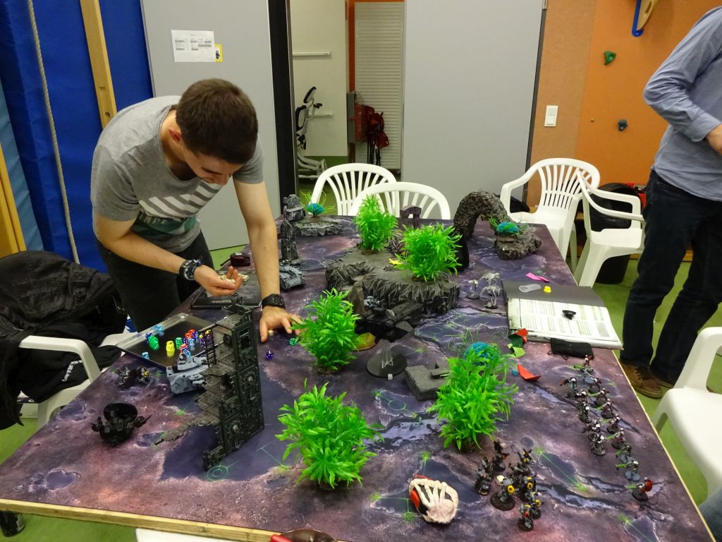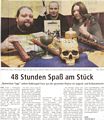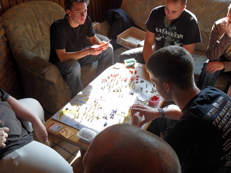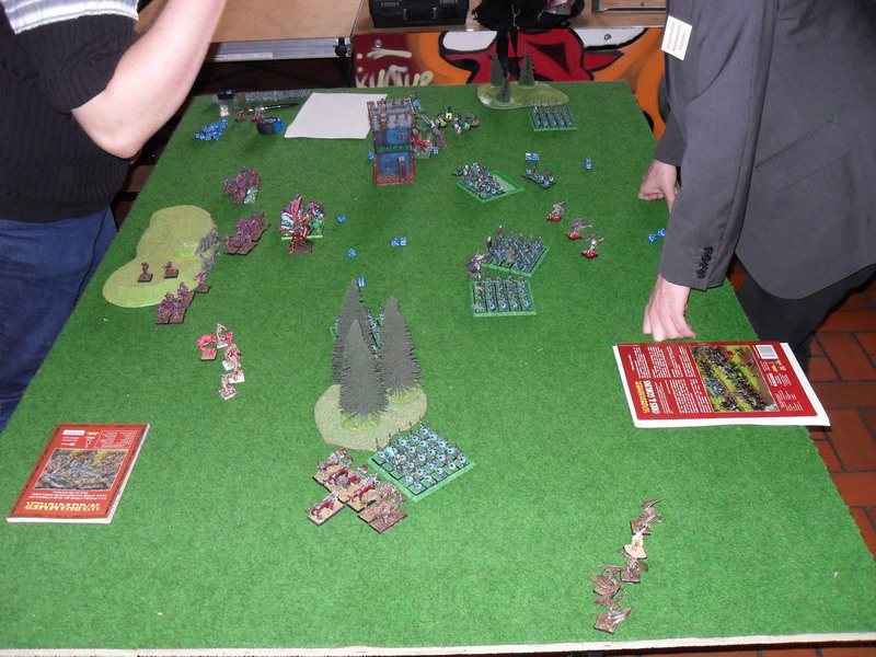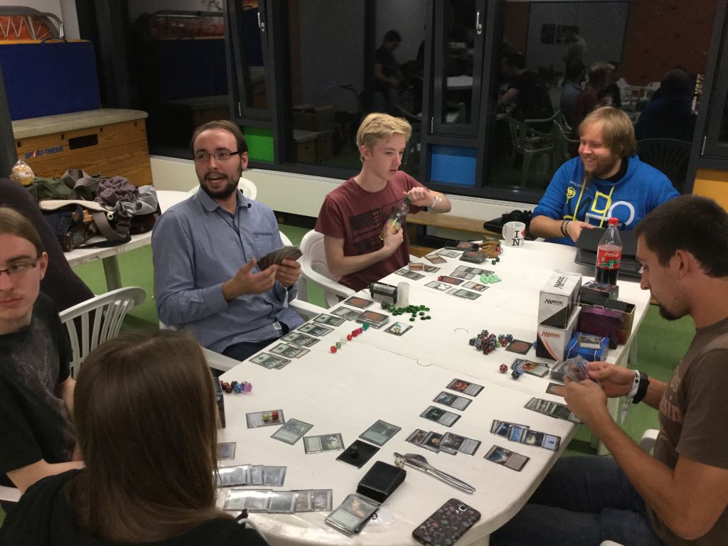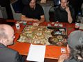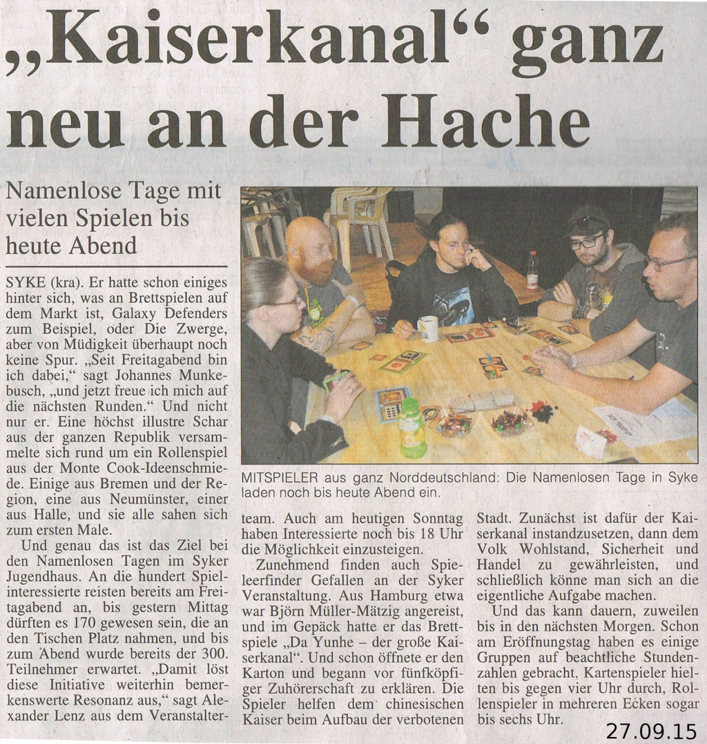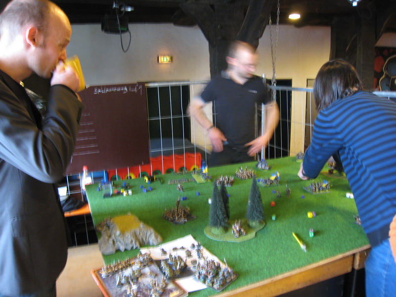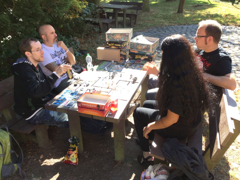 NT24: Bei frischem, wenn doch trockenem Wetter, öffneten sich die Pforten gegen 17:30 Uhr und der Run auf die Tassen im JD Style konnte beginnen. Mit Flatrate und Proviant gewappnet ging es auch schon an die Spieltische. Wer hingegen etwas Kultur genießen wollte, war in der Lesung mit Bernhard Hennen genau richtig. Als der Chilimeister zum Mitternachtsimbiss rief und auch der letzte eine Spielrunde oder bereits einen Platz im Schlafraum der neuen Kita gefunden hatte, ging der Freitag mit einem neuen Besucherrekord von 212 Gästen zu Ende. Am Samstag sollte es spannend werden, ob der Wegfall des Obergeschosses im Jugendhaus auf die Tischreserven auswirken sollte, doch dem war nicht so. Auch einem erneuten Wurststau konnte entgegengewirkt werden, trotz dessen es zu kurzen Wartezeiten beim Grillmeister kam. Mit der Wunschlesung von Bernhard Hennen und Tom Daut wurde auch der Samstag Nachmittag literarisch aufgewertet. Bei der Tombola am Abend konnte man gleich zu Beginn, oder doch am Ende, den verwirrten Gästen eine Besucherzahl von 310 präsentieren. Am Sonntag sollte, ausser beim Grillmeister nichts mehr anbrennen. Die Besucher die es bis dahin geschafft hatten gegen die Müdigkeit anzukämpfen nutzten nochmal ihre Flatrate und spielten bis zur letzten Minute. Mit 321 Gästen, ging die an der Besucherzahl gemessene zweit stärkste Märzveranstaltung zu Ende.
