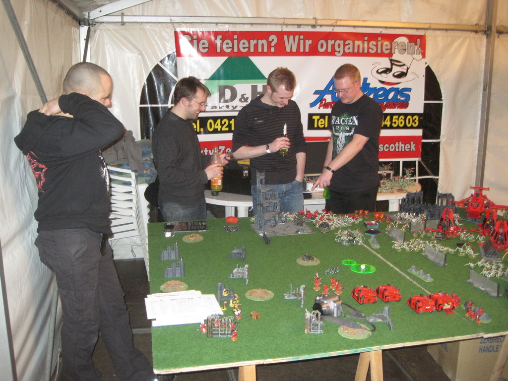 Im Vorfeld: Nach einer fantastischen NT10 und durchweg positiven Gästeresümees, gönnte sich die Orga erst einmal eine kreative Pause. Frisch und erholt begann man dann eigene und Verbesserungsvorschläge der Gäste umzusetzen. Doch schon bald kam der erste kleinere Rückschlag, als man erfuhr, dass auf der NT11 kein Warhammer 40k Turnier stattfinden wird. Darüber hinaus musste man auch das Nichtzustandekommen des Multiparallelen Abenteuers verkraften. Eifrig wurde in der Orga diskutiert und man schaffte es, in Zusammenarbeit mit dem Highlander Bremen, ein Hordes Turnier auf die Beine zu stellen. Des Weiteren mussten neue Standards, welche bei der NT10 erreicht wurden, erneut umgesetzt werden. So musste ein Zelt für den Außenbereich organisiert werden, doch einen wesentlich schwierigeren Standard galt es noch zu bewerkstelligen. Die Namenlose Tasse, welche als einmalige Aktion geplant war, stieß auf so großes Interesse, das wir unseren Kaffeeflatratetrinkern und unseren Sammlern erneut eine Tasse anbieten wollten.