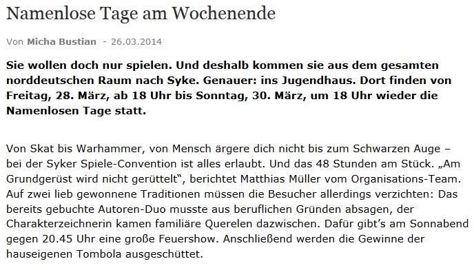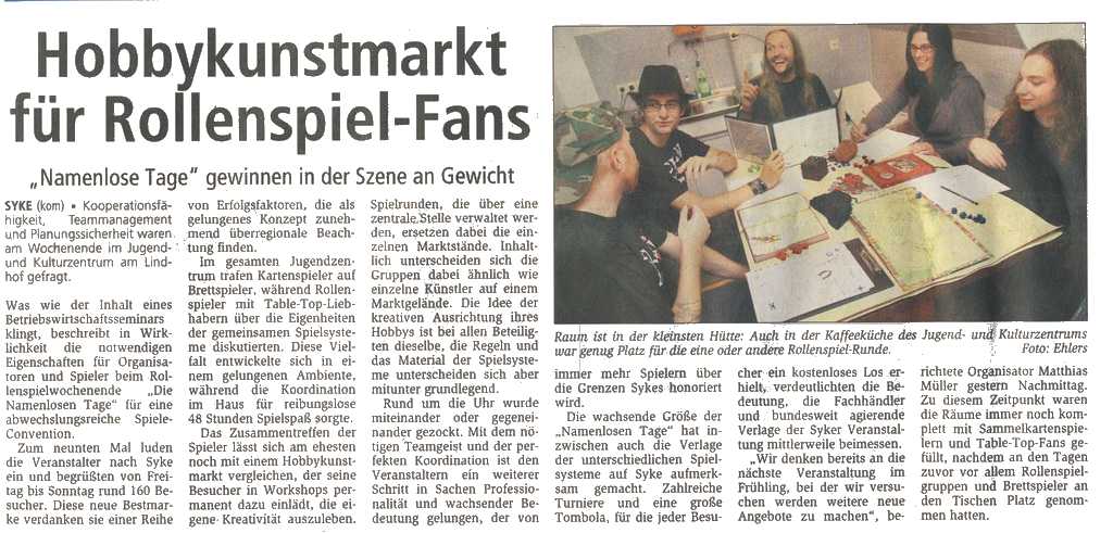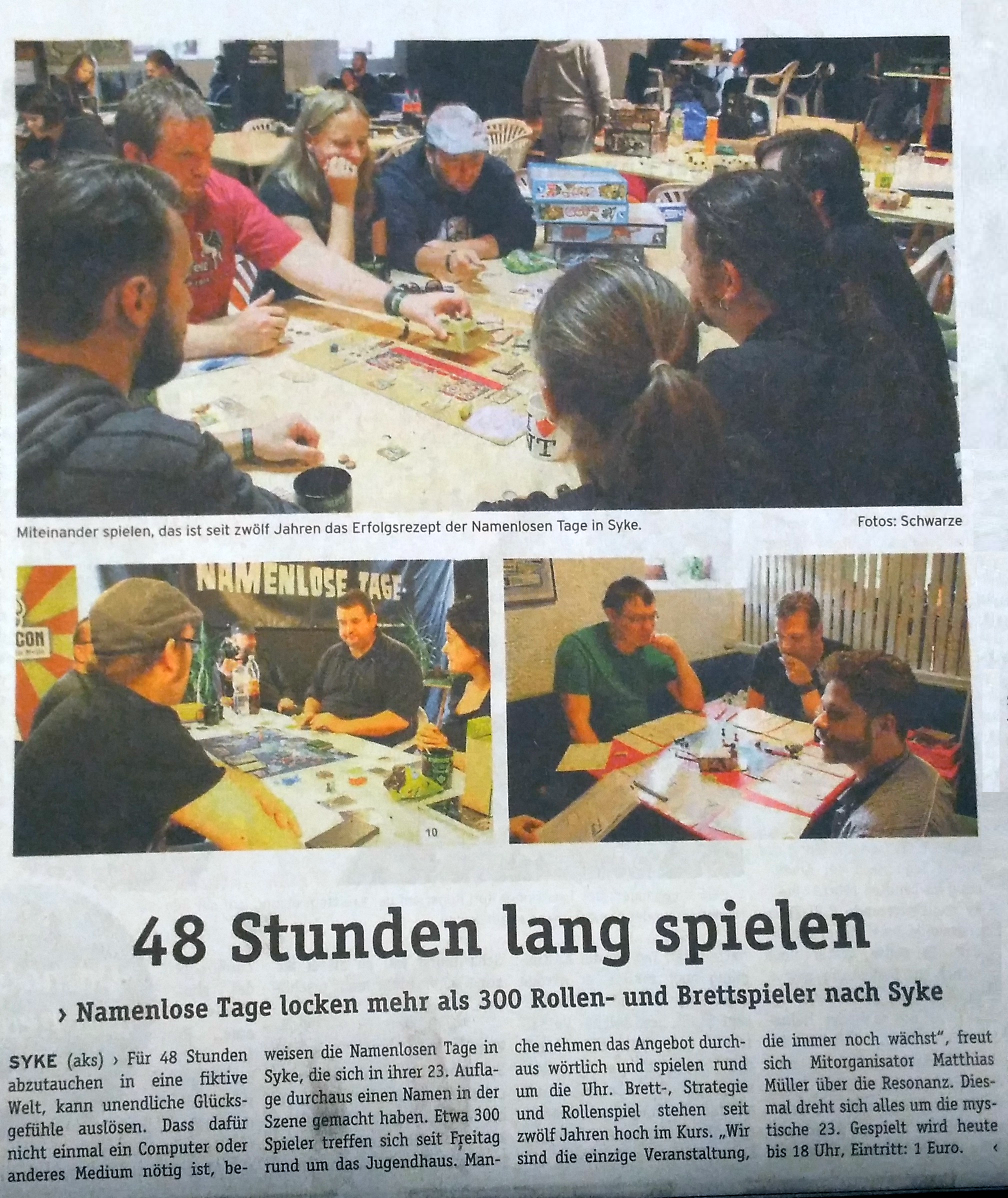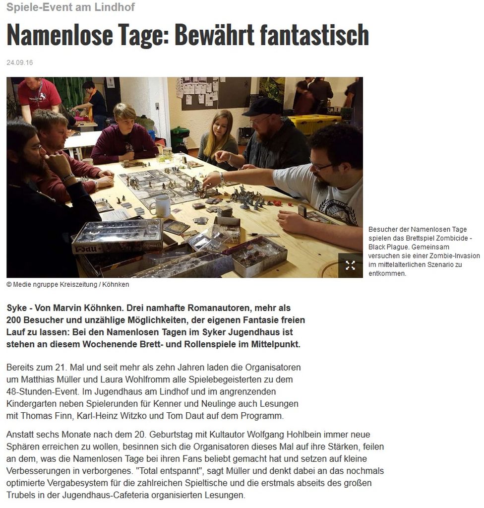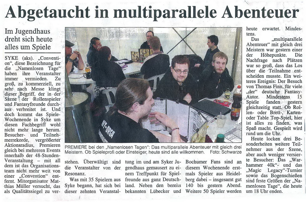 Die Namenlosen Tage sind eine Spiel & Fantasy Event auf dem verschiedenste Spielsysteme